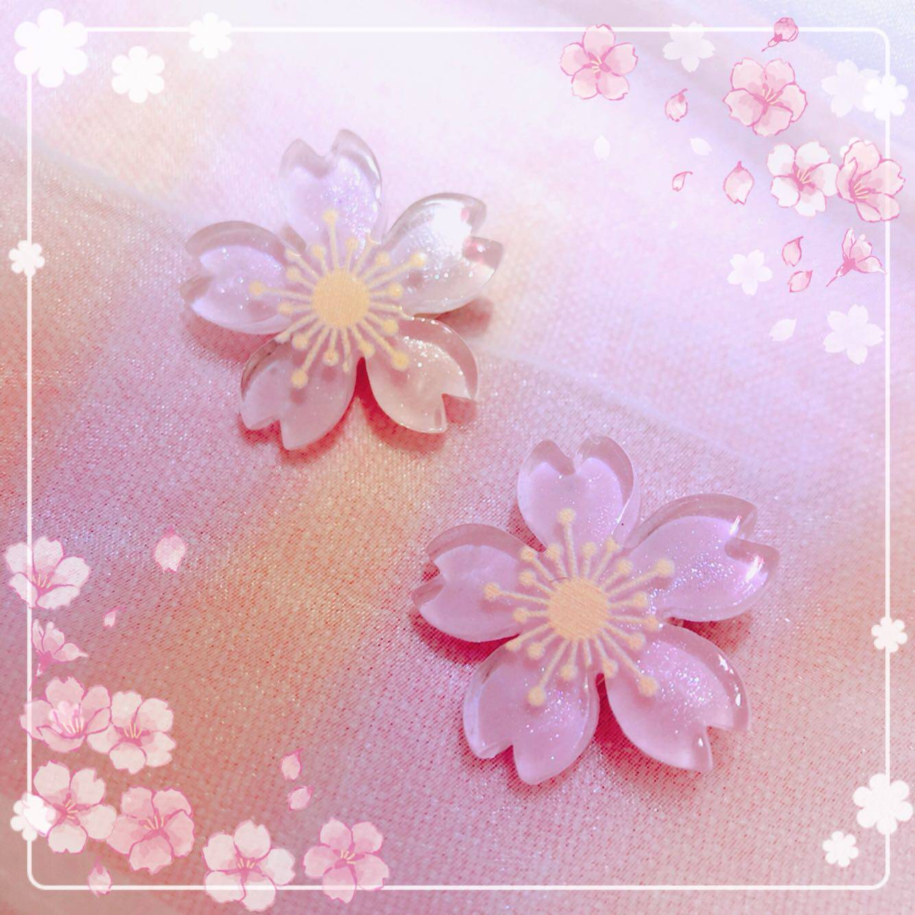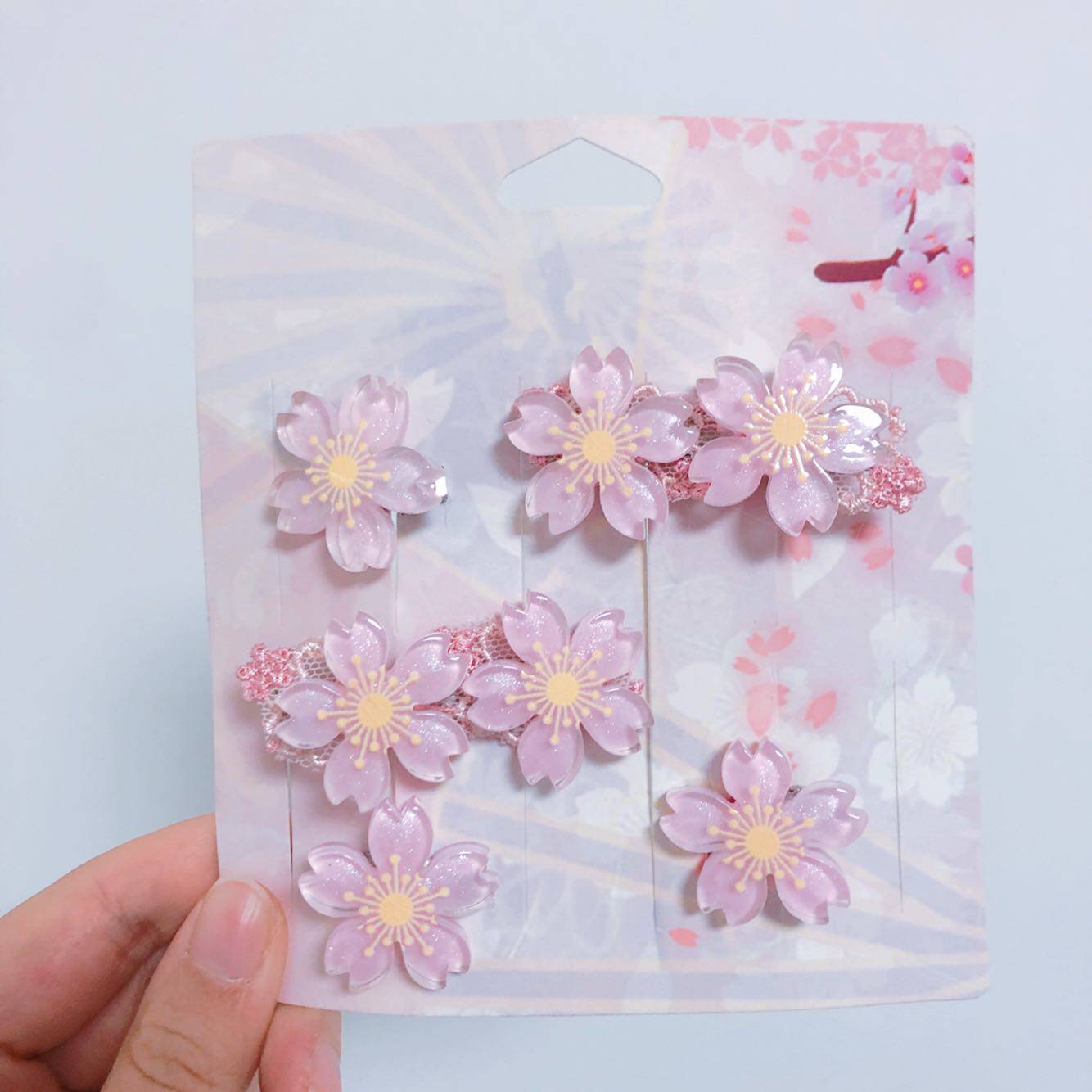 实物是一半透明的,闪闪的,非常好看。 作为樱茶之类樱花主题的裙子的点缀头饰非常适合,喜欢华丽一点的话可以多夹几套 还可以搭配jk制服哟 不接急单 如果快递或天气过冷过热导致脱胶的话,请用附赠的胶棒粘一下哟~