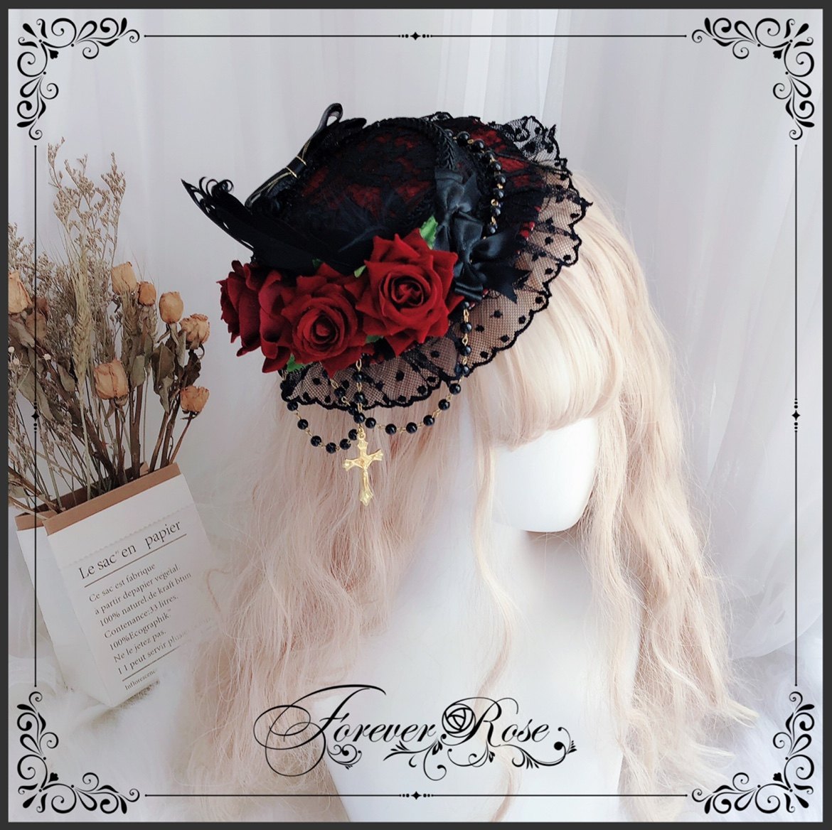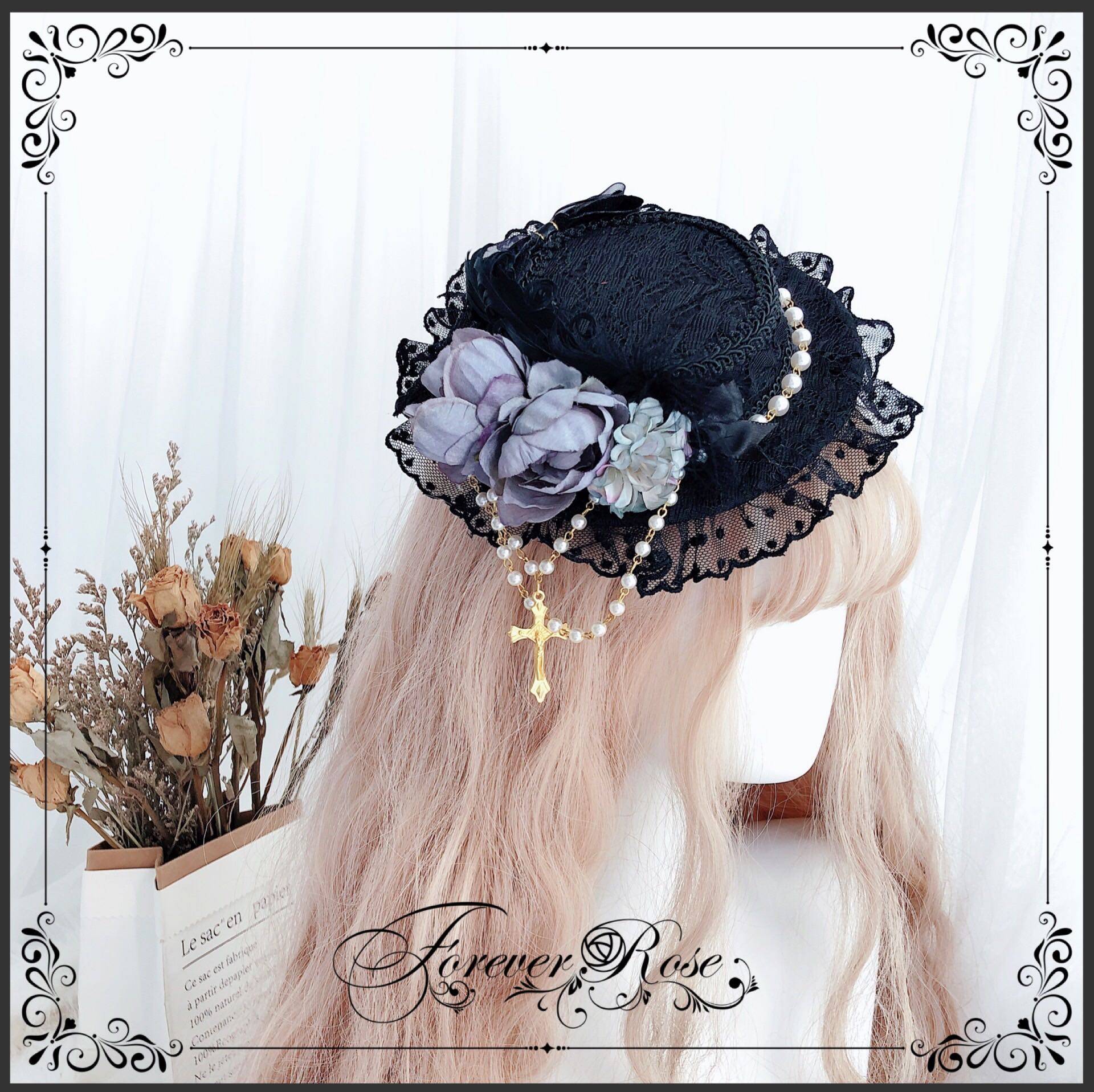 永恒蔷薇 原创手作 黑色CLA小礼帽 优雅扁帽 Lolita 黑灰优雅 [Original Page Link]