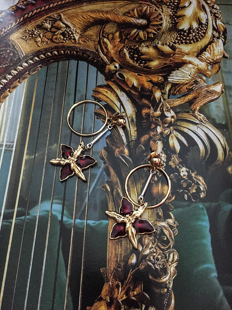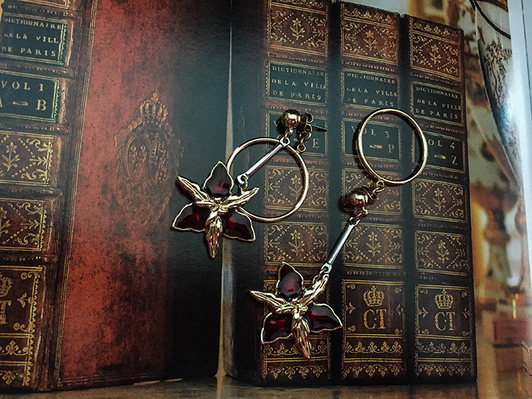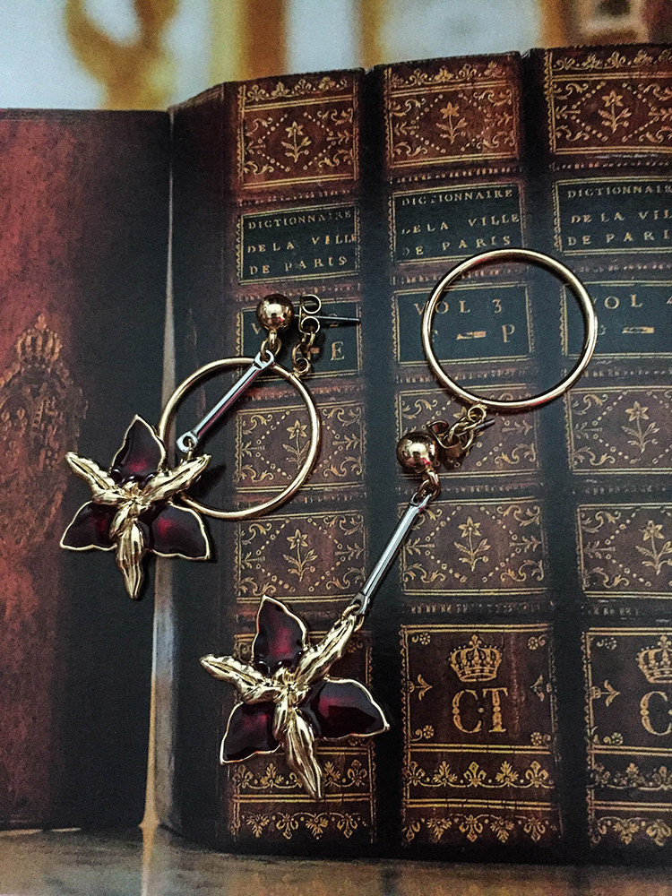 哥特红色珐瑯花朵耳坠 复古洛丽塔风格女性专用耳饰 欧美合金耳环 [Original Page Link]