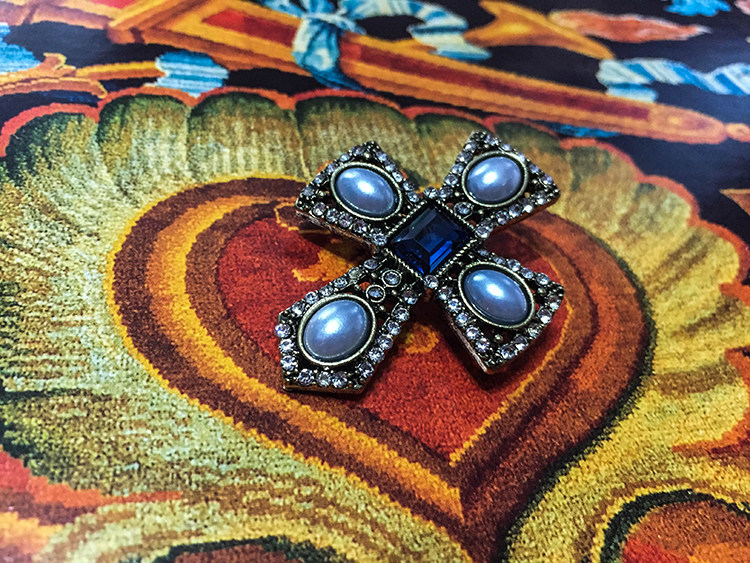 Gloria|荣誉赞美诗 欧美复古 水钻珍珠 LOLITA 十字勋章胸针领饰 [Original Page Link]