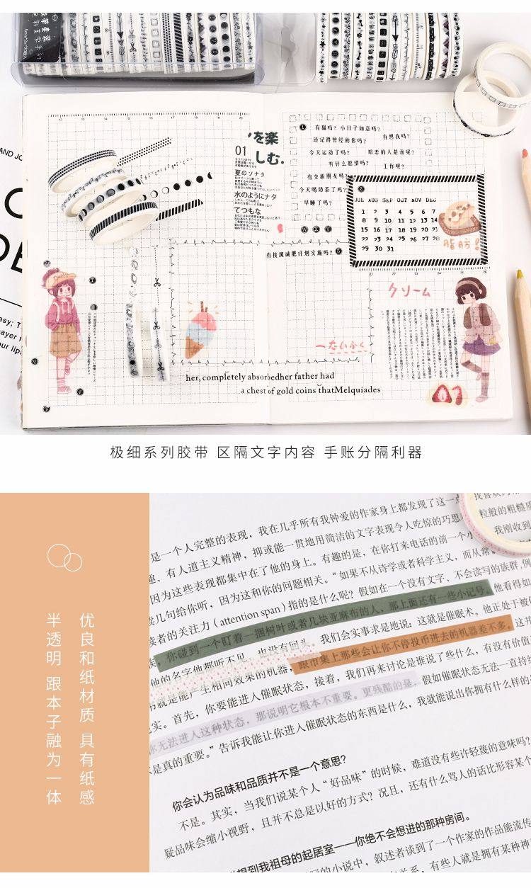 手账和纸细胶带套装小清新盐系莫兰迪基础款手帐分割线极细边框 [Original Page Link]