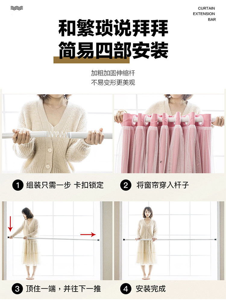 网红款大窗帘专用窗帘伸缩杆免打孔安装阳台卧室罗马杆升缩撑杆子 [Original Page Link]