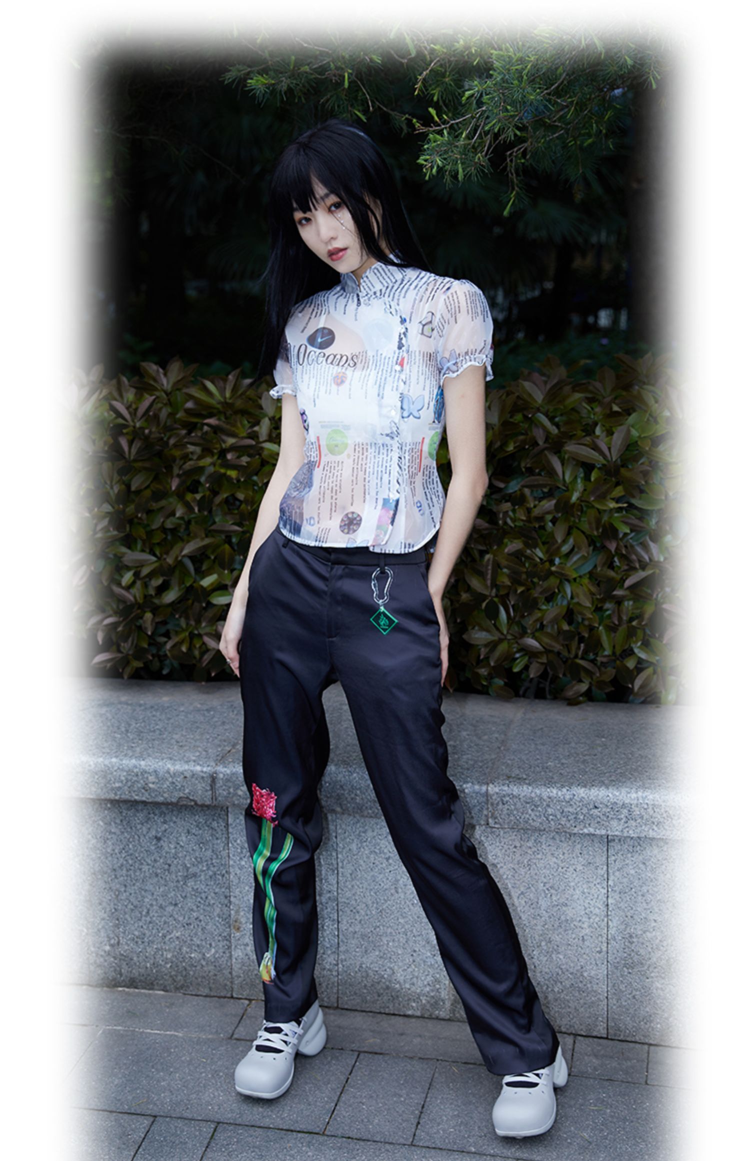 LivingRoom原创设计春夏欧根纱印花泡泡袖衬衫夏季短袖衬衣女潮牌 [Original Page Link]