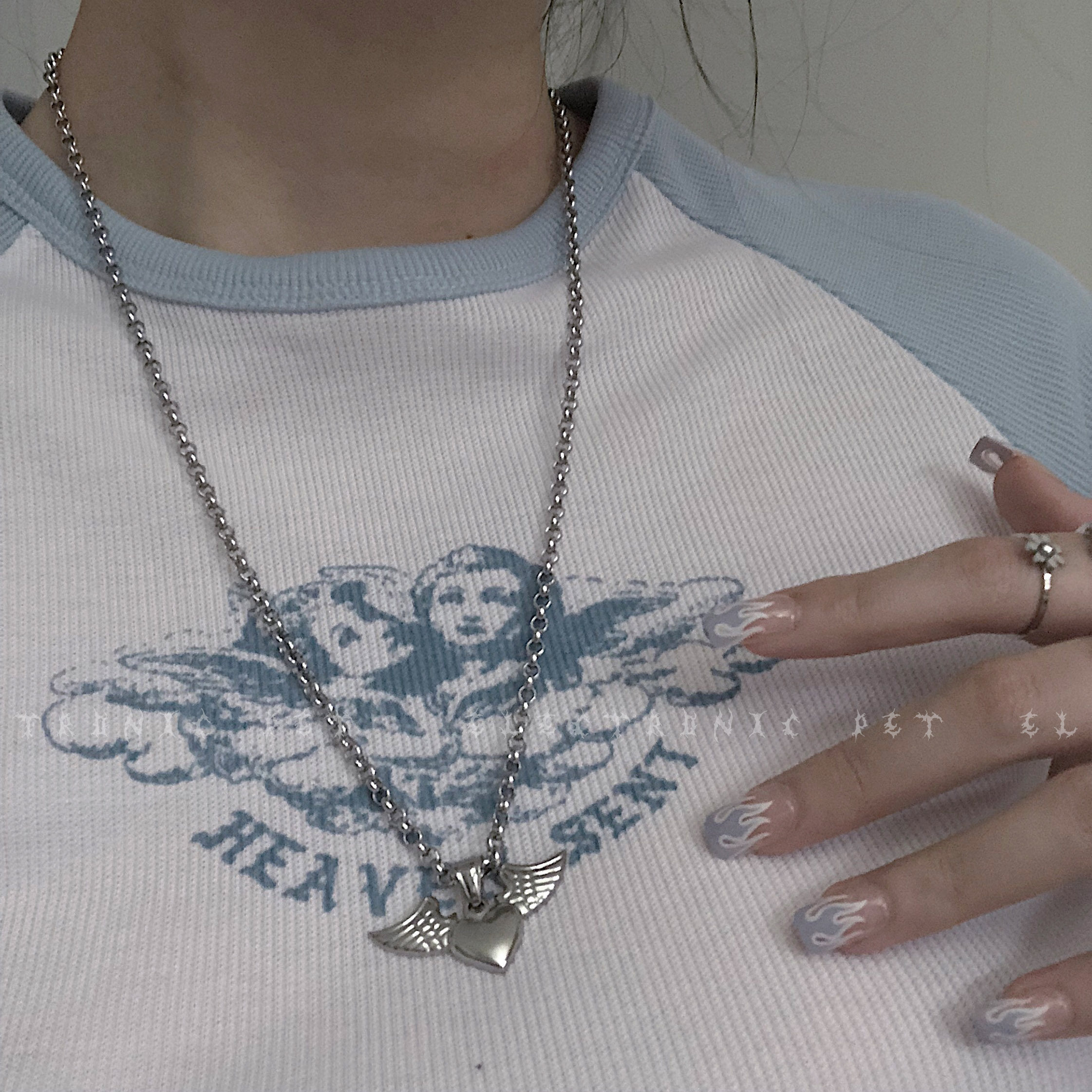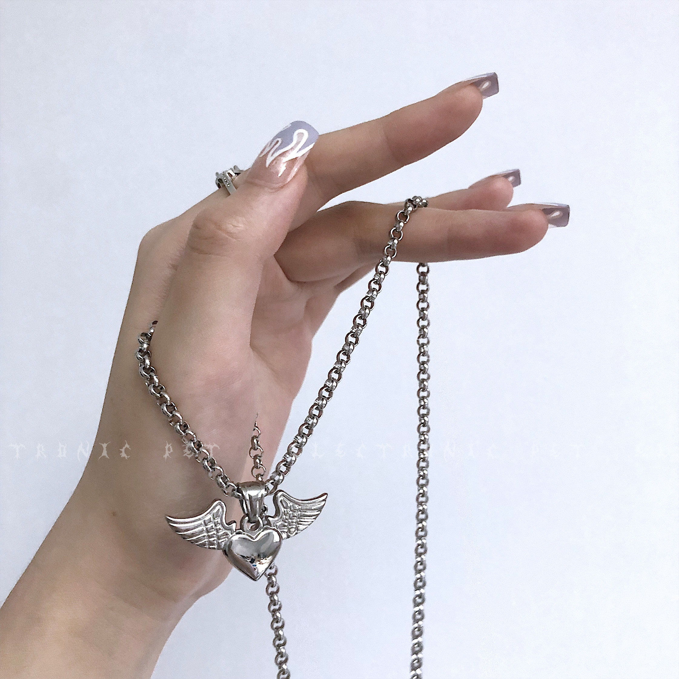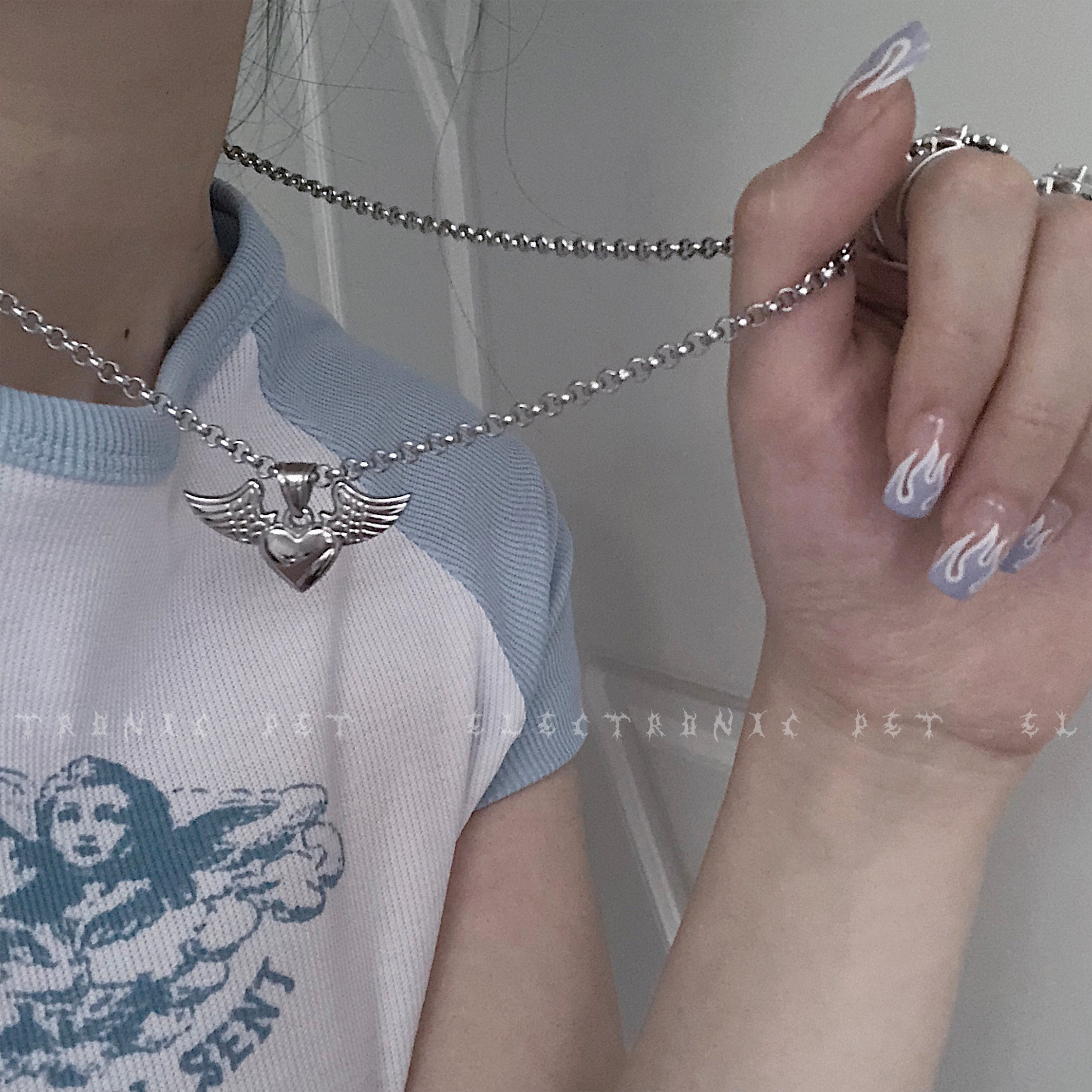 Electronic Pet @钛钢天使爱心翅膀甜酷日韩原宿情侣不锈钢长项炼 [Original Page Link]