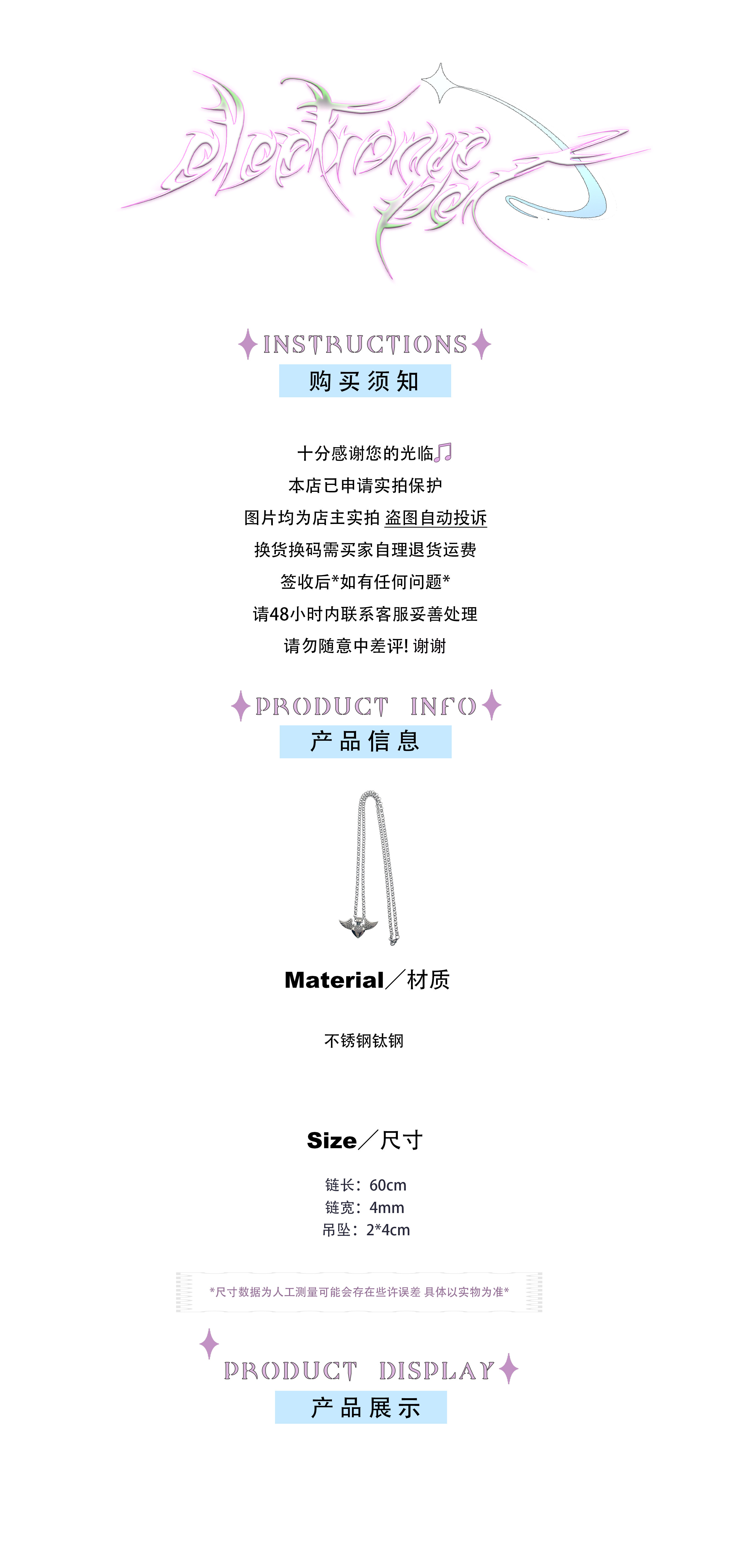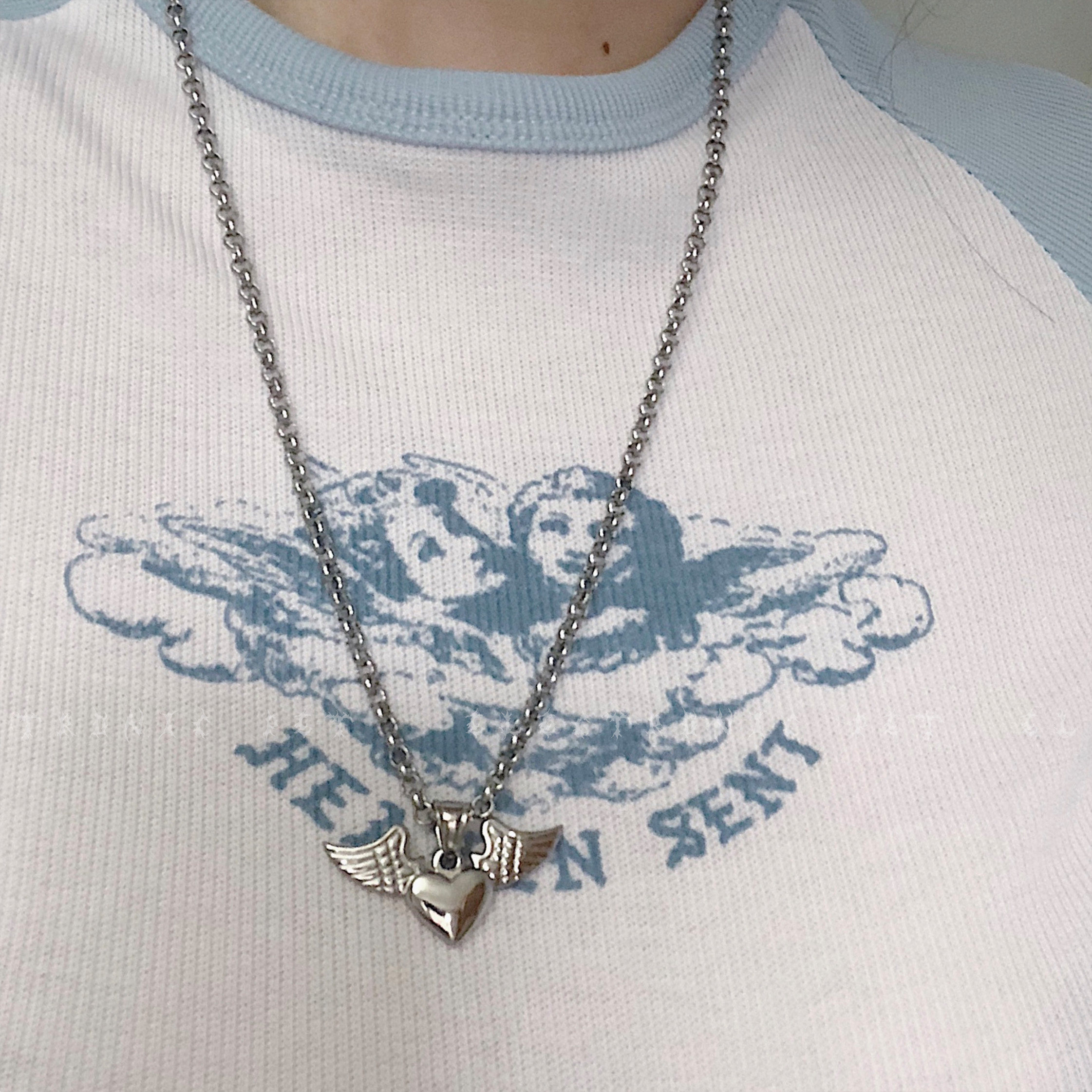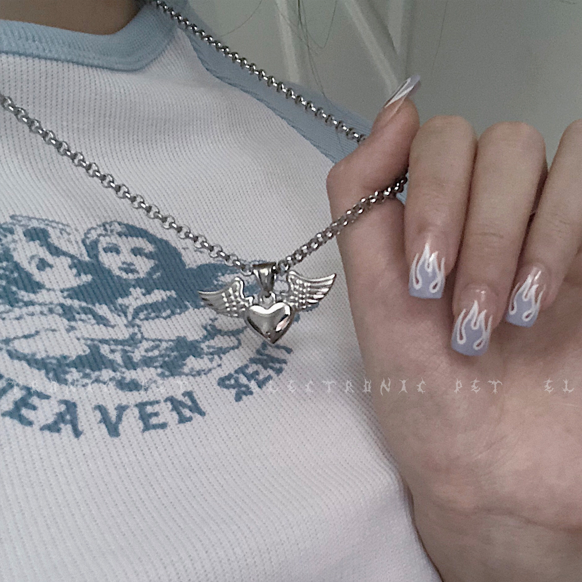 Electronic Pet @钛钢天使爱心翅膀甜酷日韩原宿情侣不锈钢长项炼 [Original Page Link]
