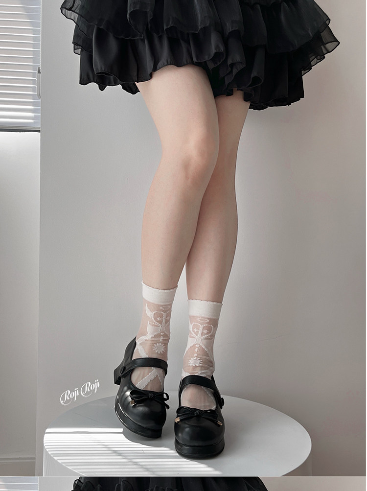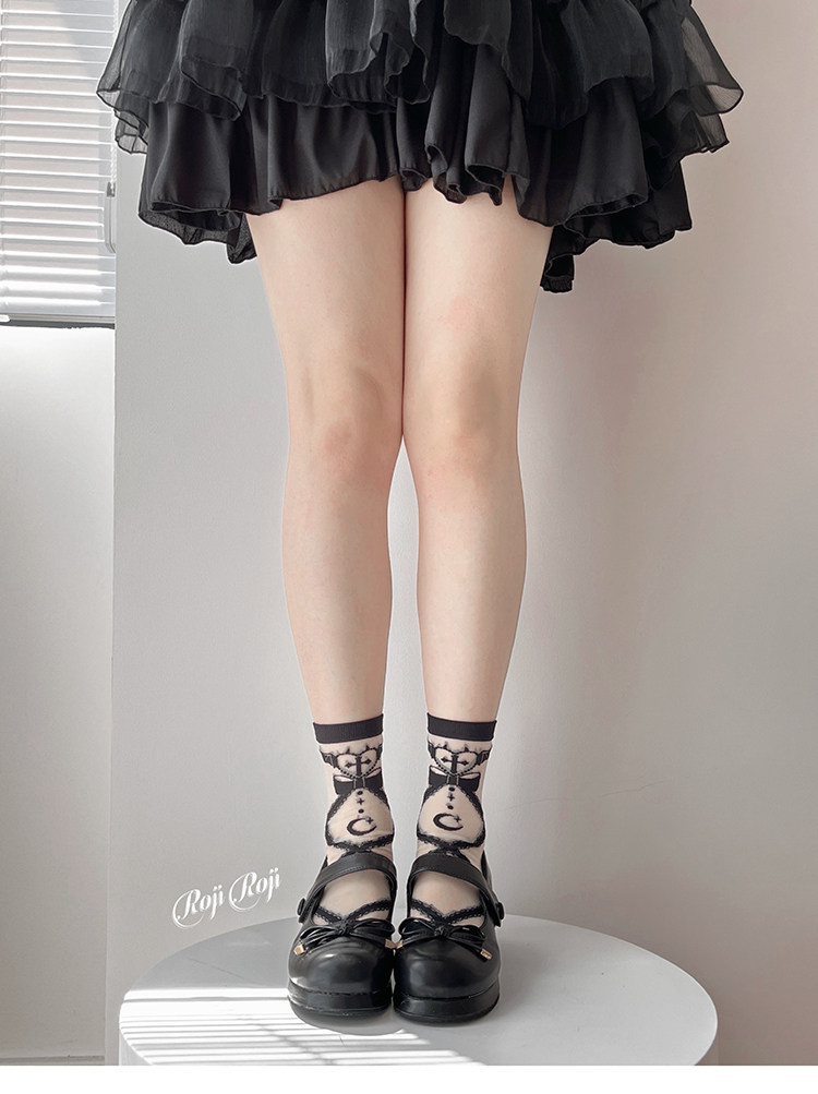 天使恶魔心Lolita袜子女夏长筒玻璃丝短袜小腿袜过膝洛丽塔日系袜 [Original Page Link]