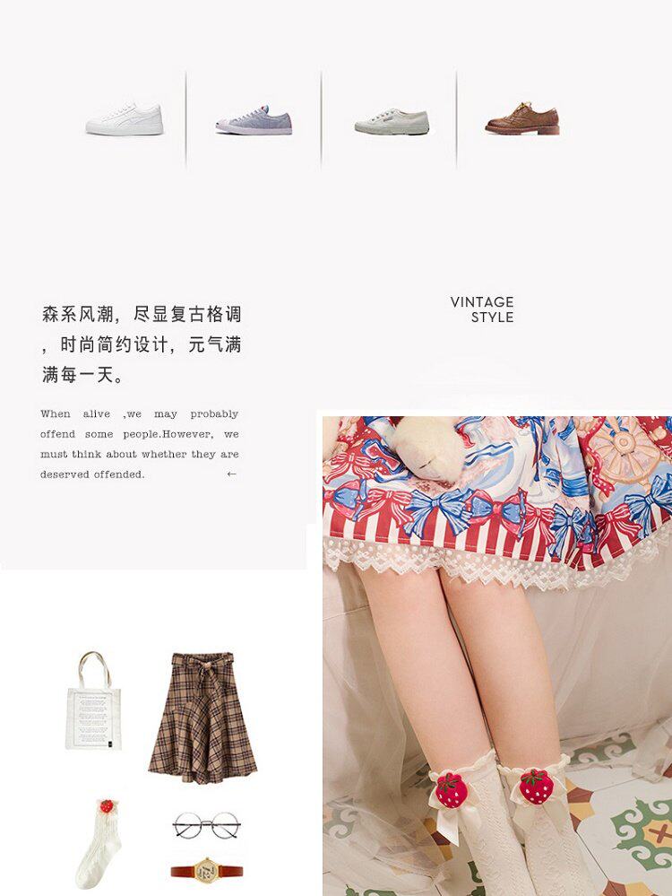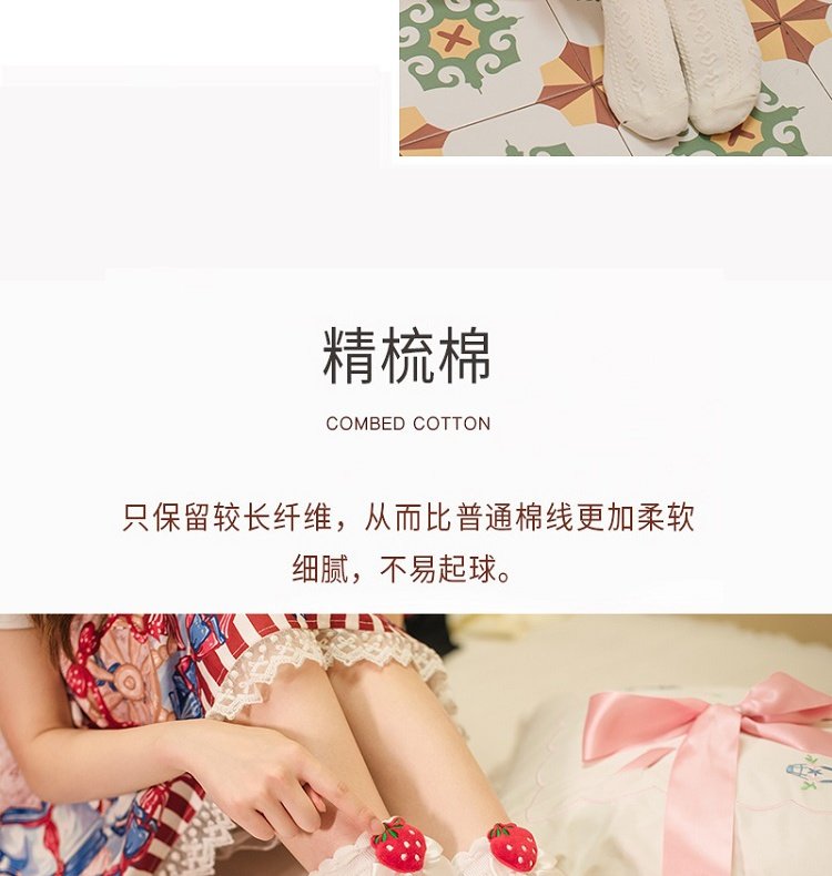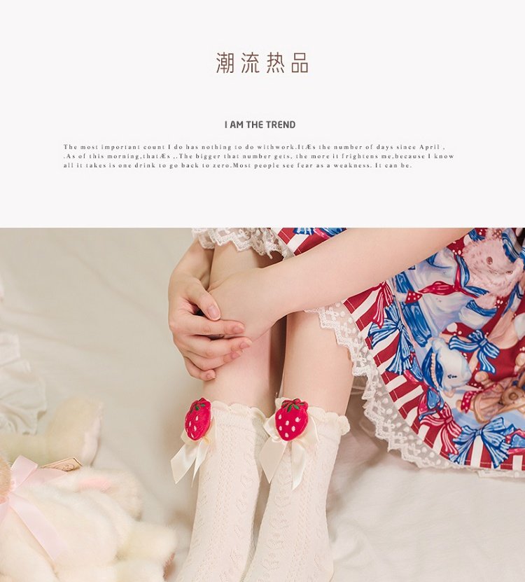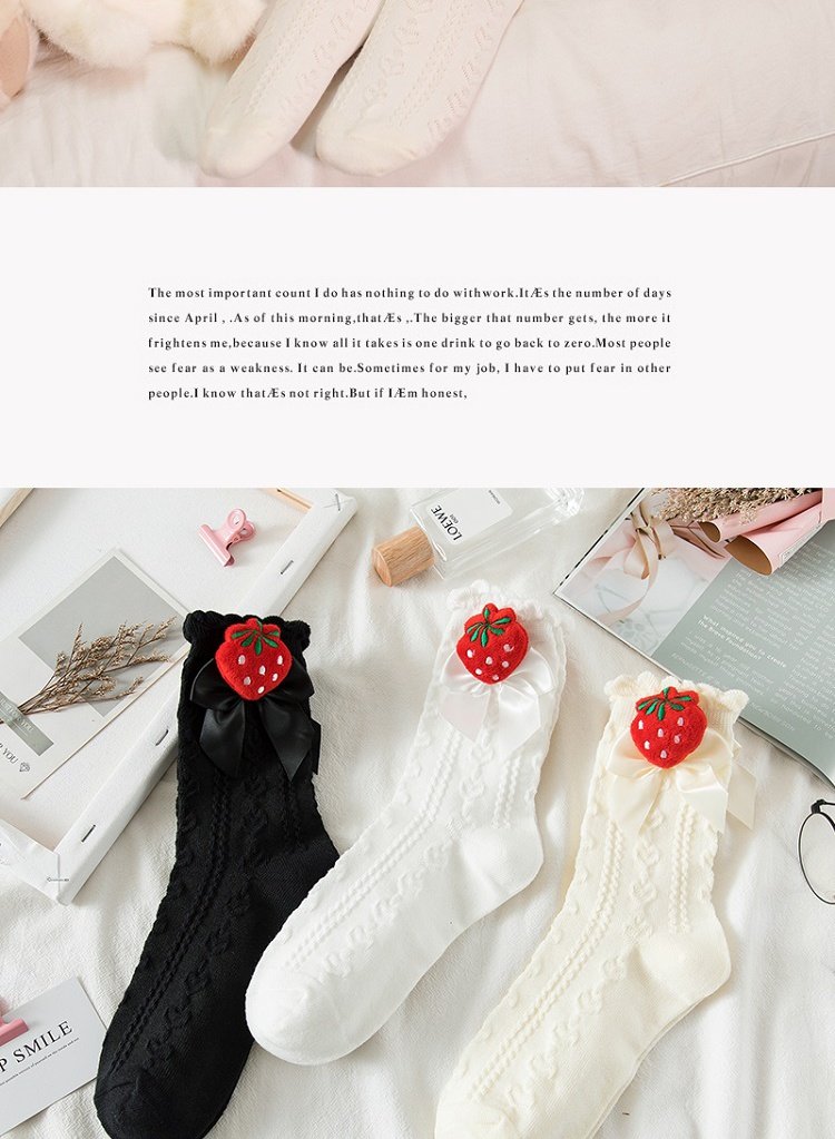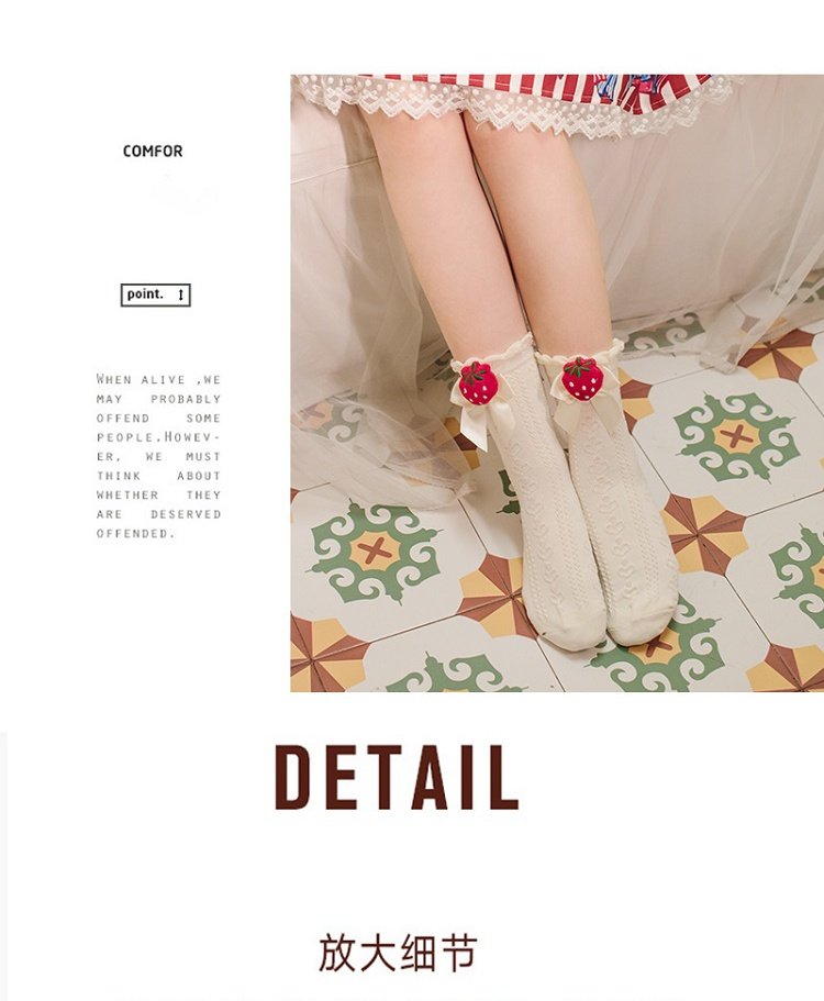 草莓蝴蝶结jk中筒袜纯棉制服高筒袜洛丽塔日系花边覆古袜子女甜美 [Original Page Link]