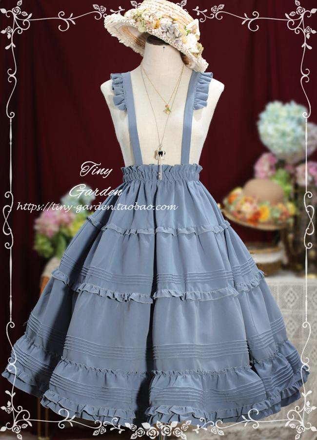 SK的背带可以拆卸,喜欢可爱风格的不要拆卸飞袖的背带,如果喜欢日常的穿法,拆卸背带就可以啦。搭配衬衫或者一些高领毛衣都非常好看哦,SK塔克折和荷叶边都非常多,细节精致,不加背带的时候风格古典优雅。