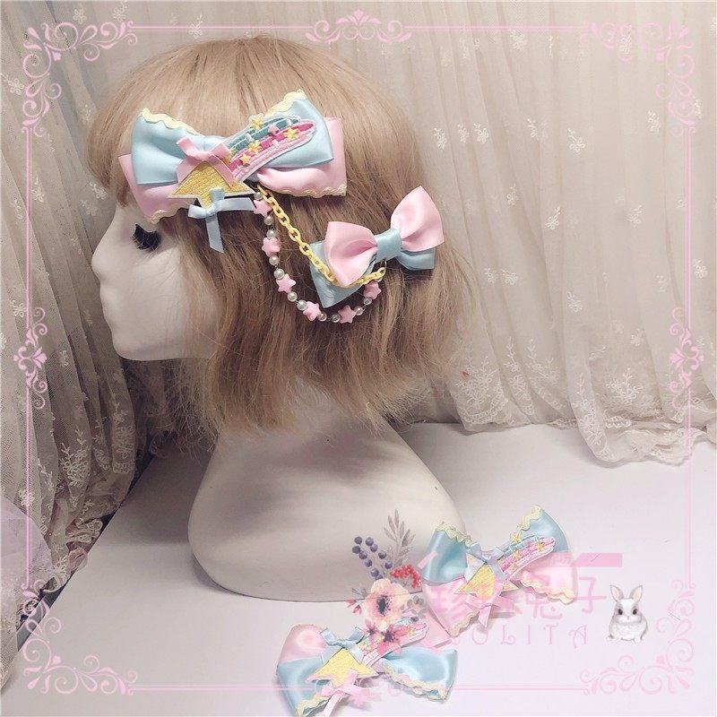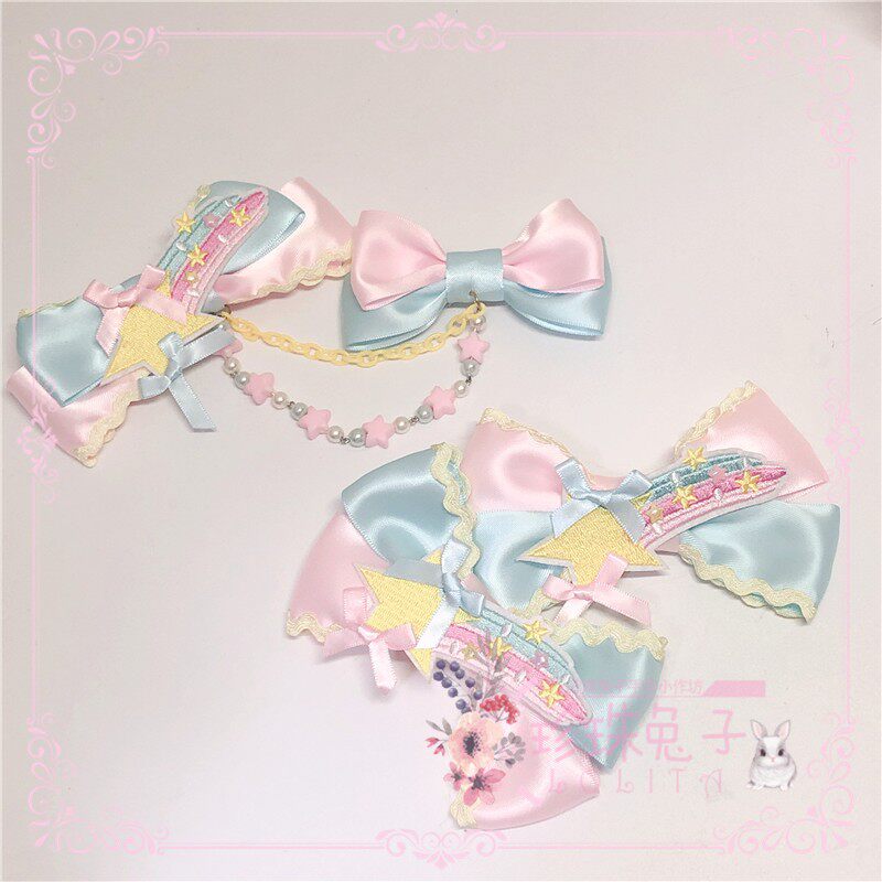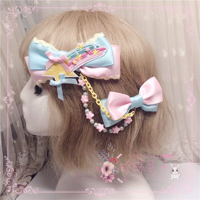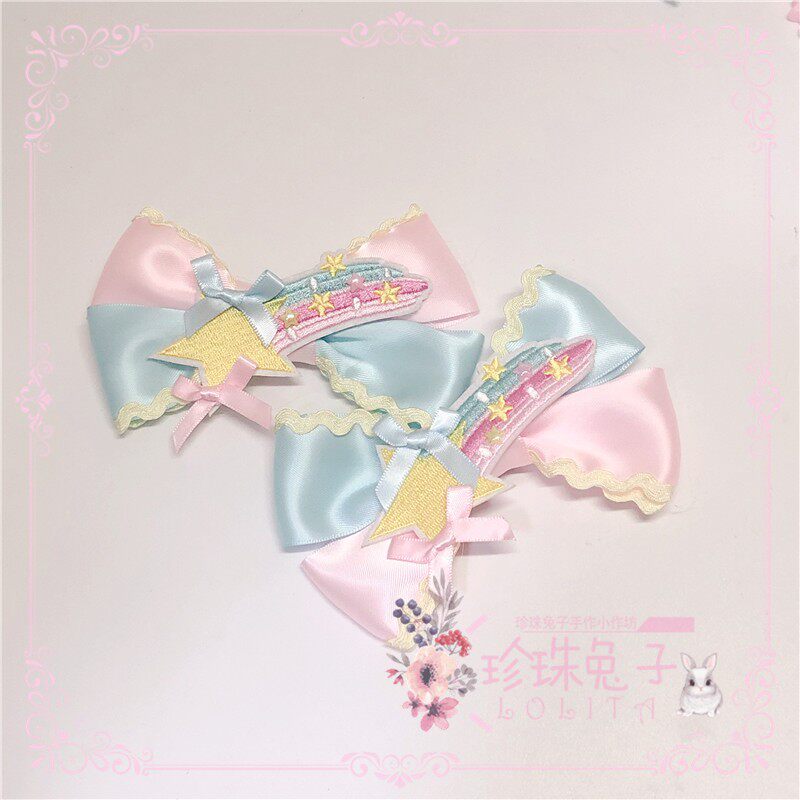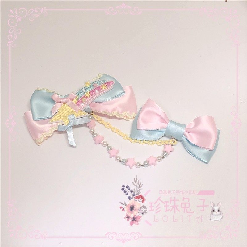 「珍珠兔」原创lolita手作星星彩虹甜系甜眦蝴蝶结边夹胸针多巴胺 [Original Page Link]