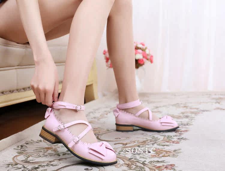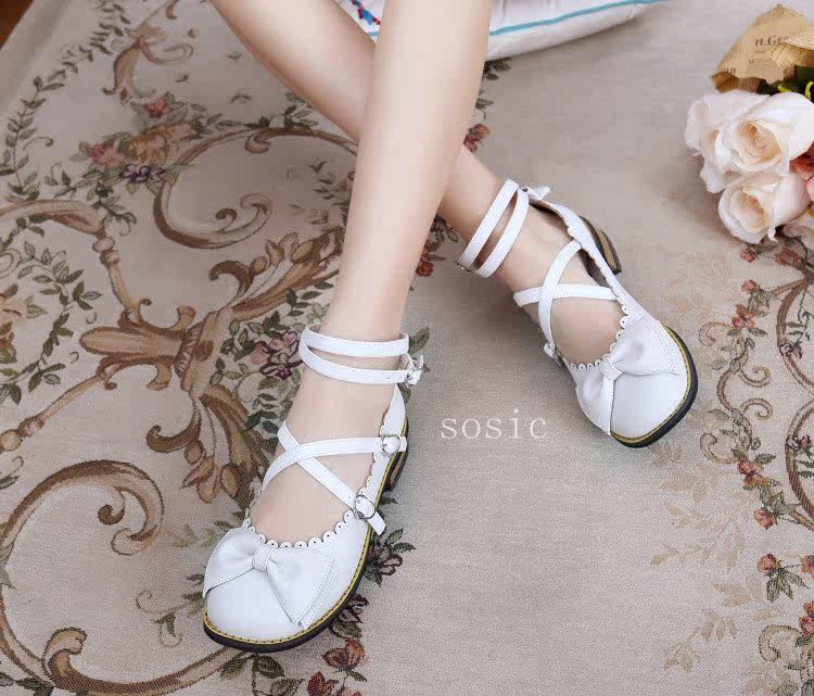 lolita日系升级甜美蝴蝶结玛丽珍低跟圆头交叉绑带纯手工小皮鞋 [Original Page Link]