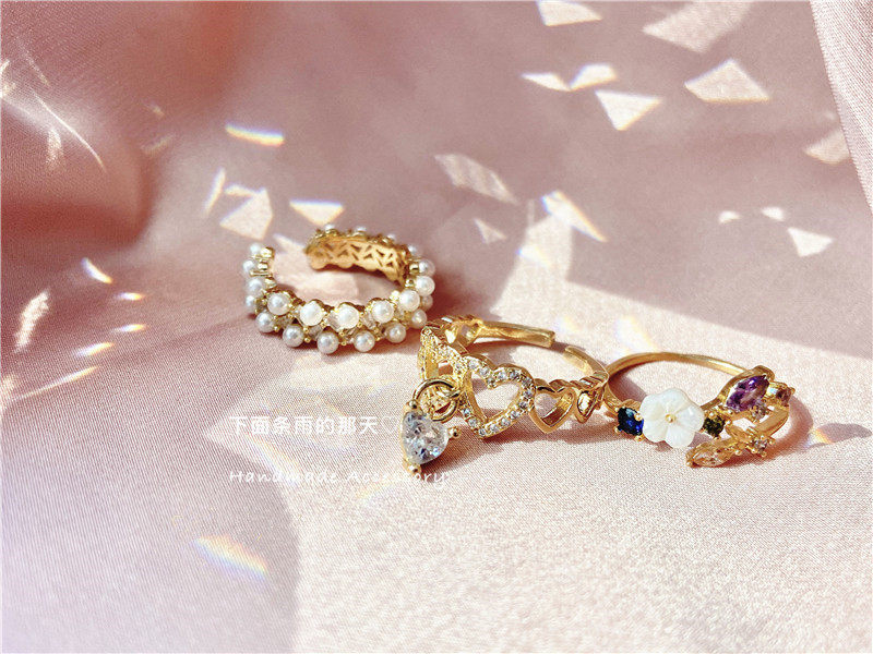 日系爱心镂空吊坠戒指女戒开口可调节金色桃心锆石指环水滴镶钻女 [Original Page Link]