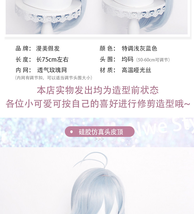 玛美86破坏性面粉Lavina Mirezawa Cos假发灰色蓝色模拟头皮 [Original Page Link]