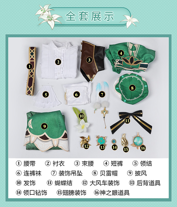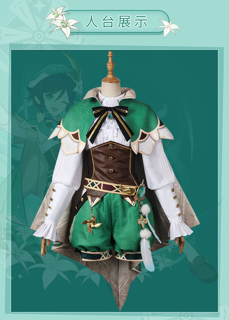 原神温迪Cos服全套 漫天际Cosplay女装 蒙德风神Cos服装 Cosplay游戏服装 含假发送发网Cos套装 [Original Page Link]