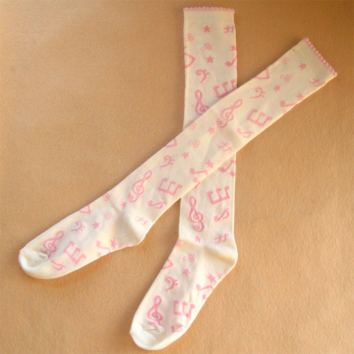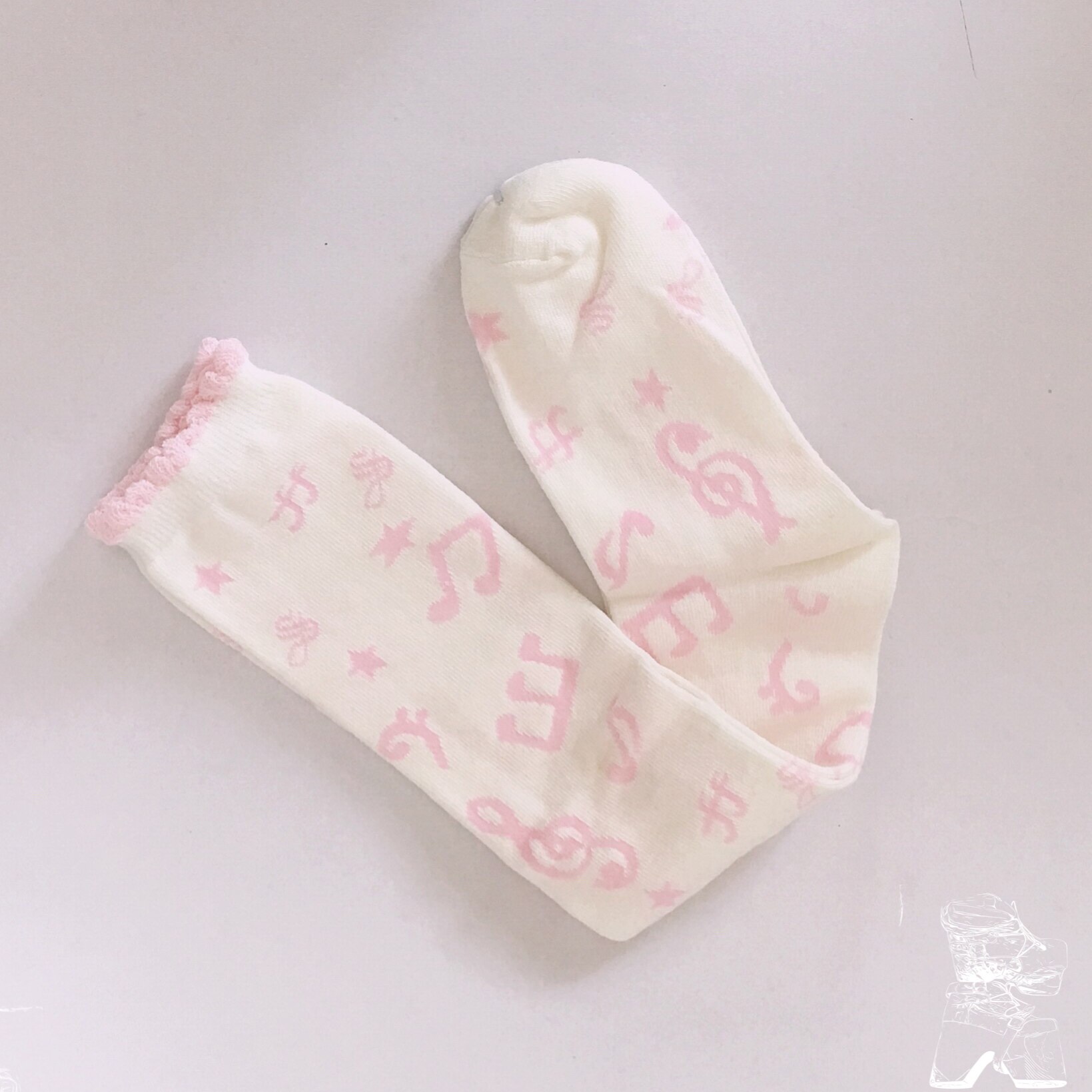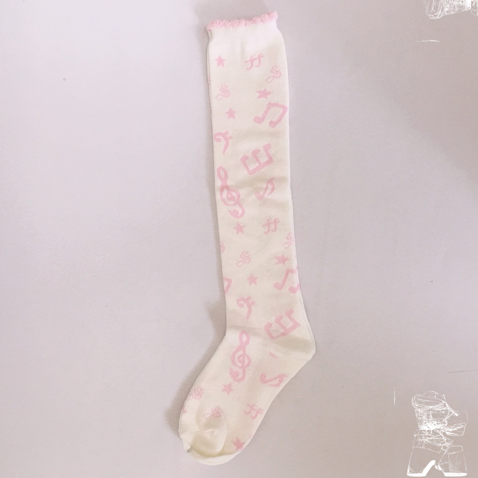 lolita 中筒袜子美好绕带音符袜子粉 [Original Page Link]