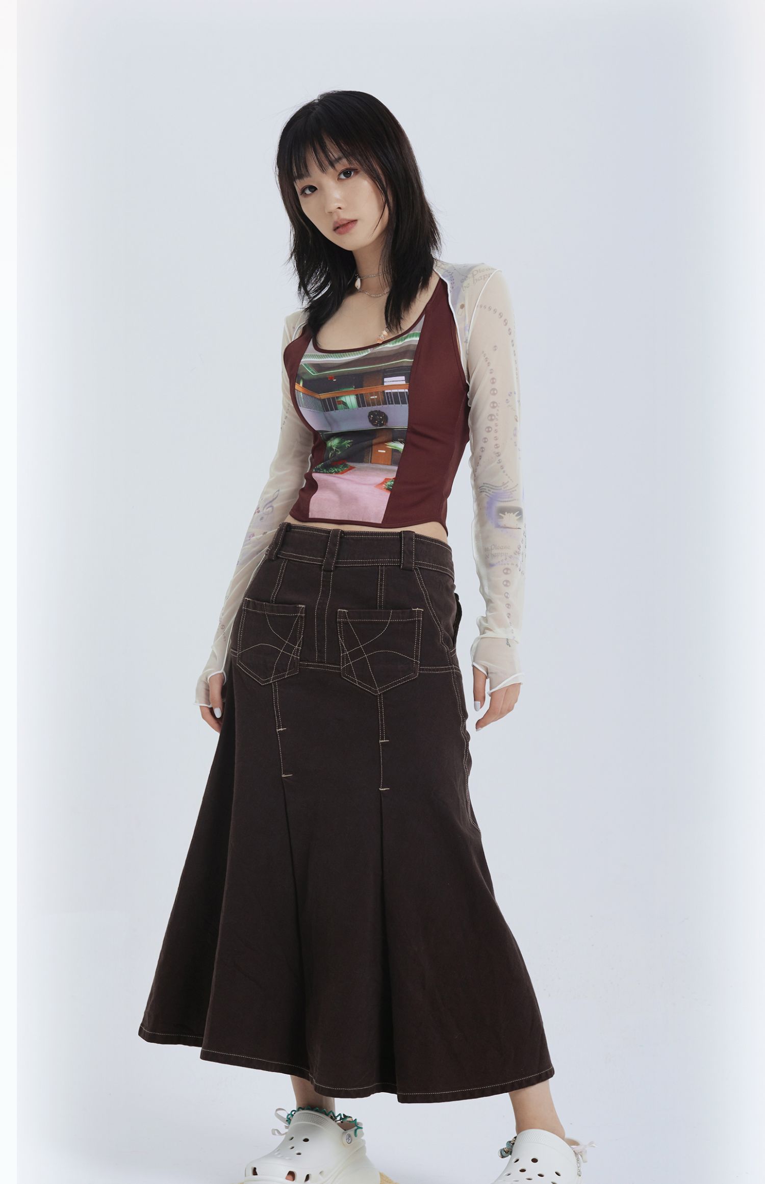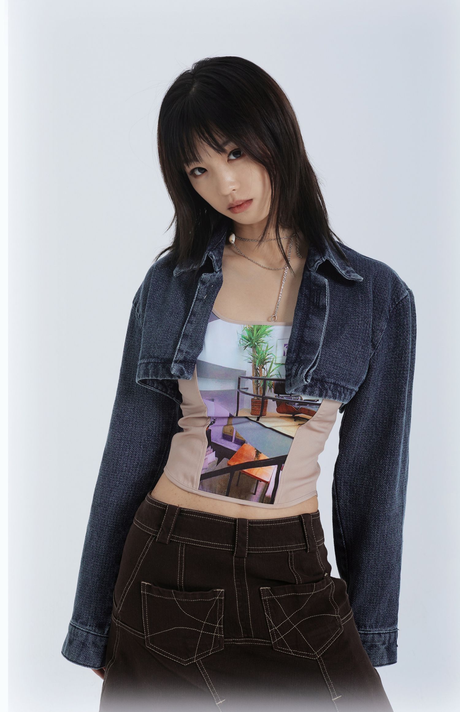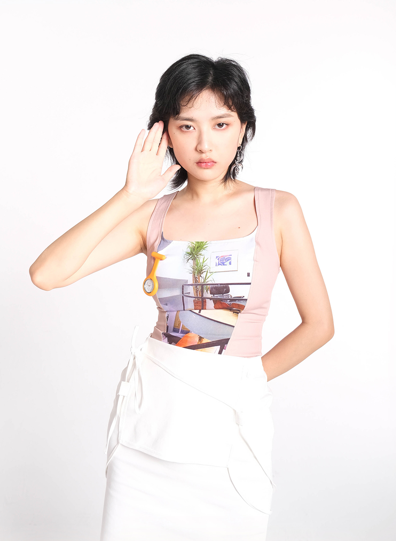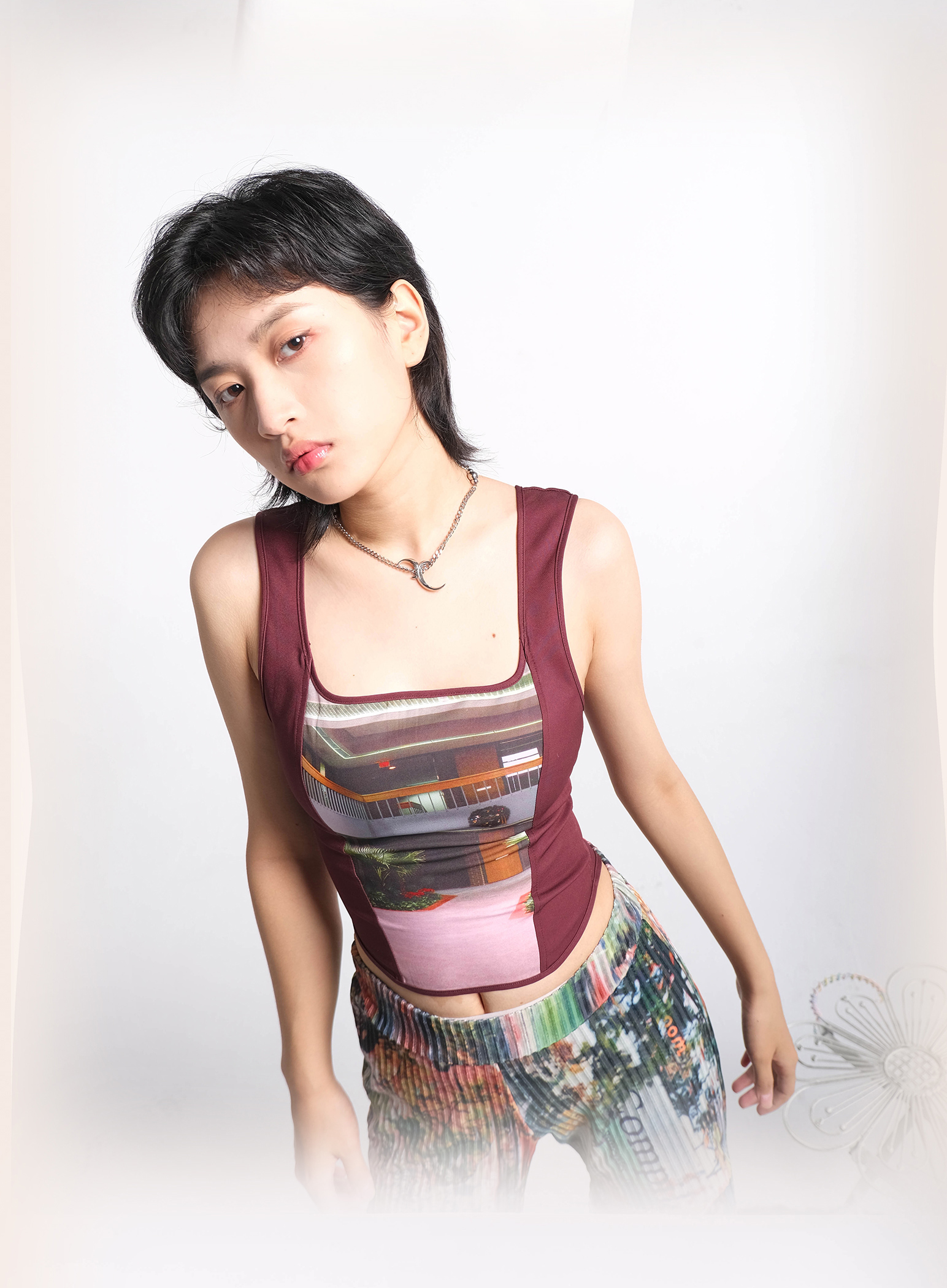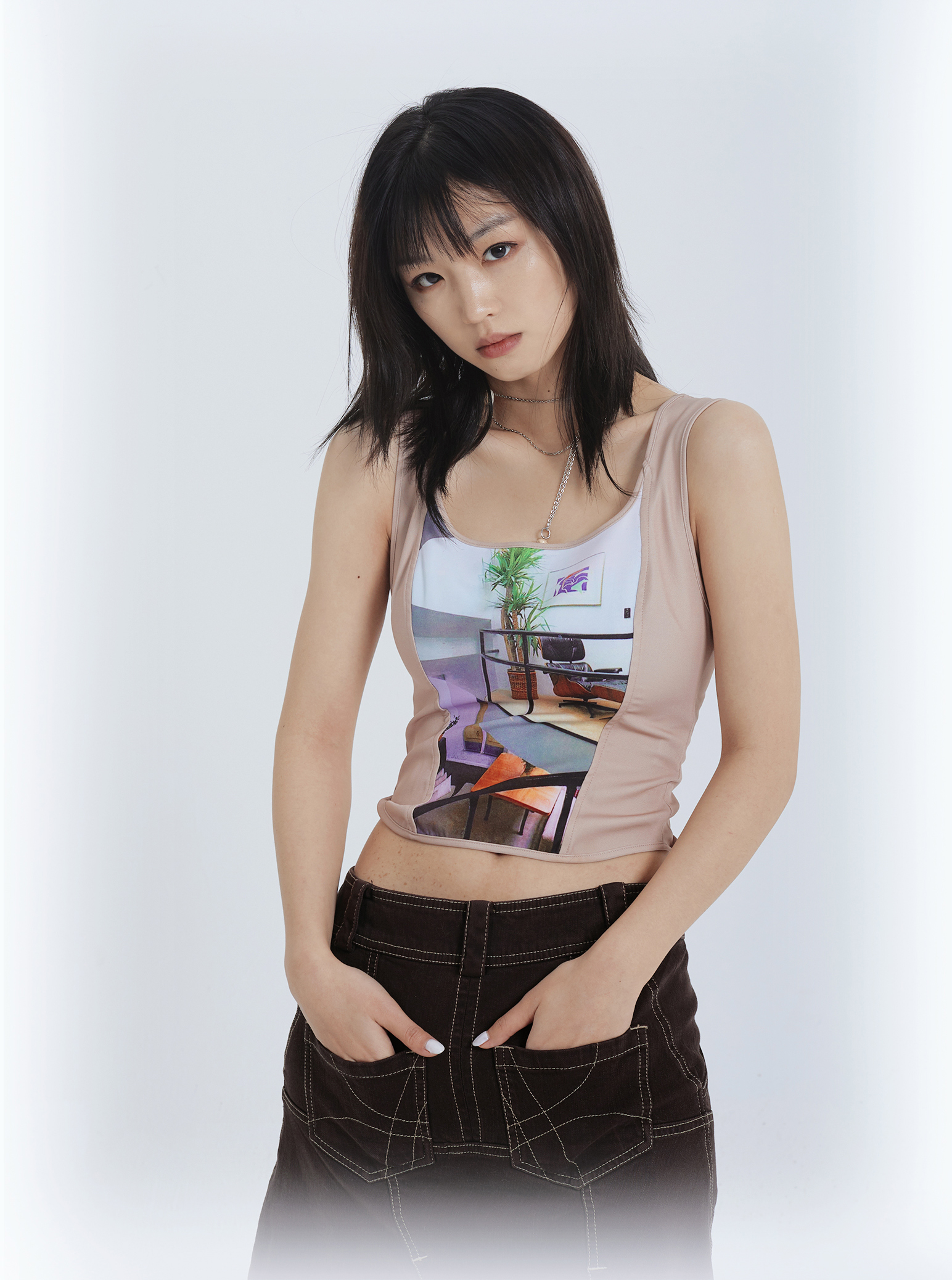 LivingRoom来我家坐坐~客厅印花双色收腰后拉炼小背心 售完不补 [Original Page Link]