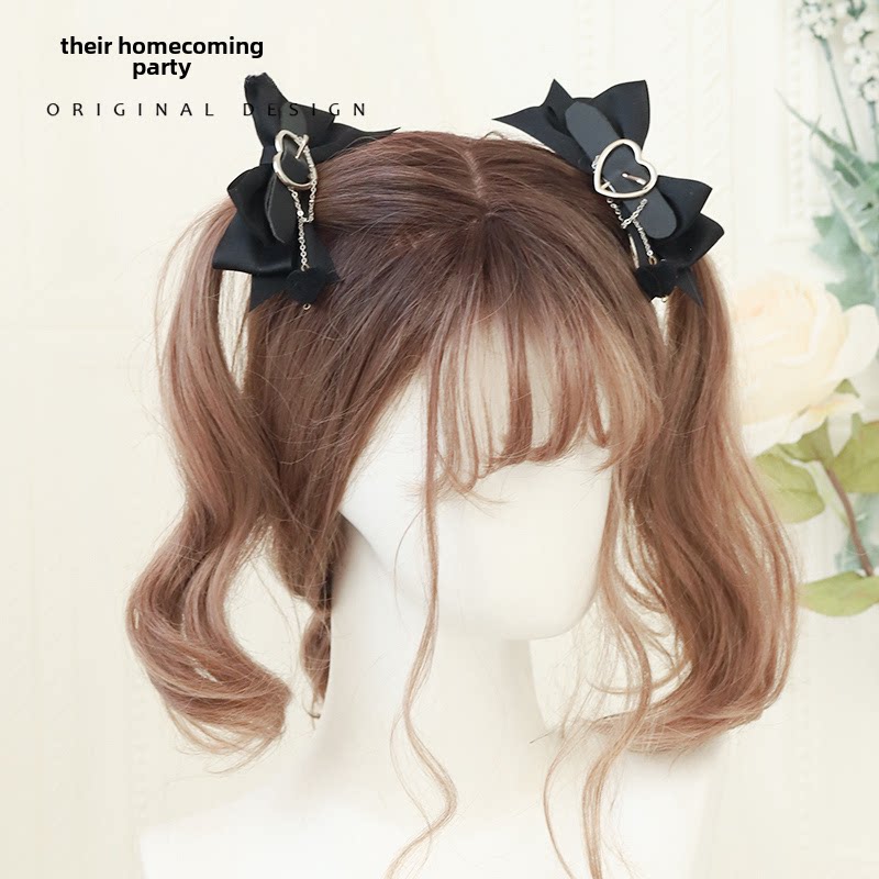 洛丽塔头饰硬女孩酷朋克风格心脏手工蝴蝶结发夹Jk黑色甜蜜的心脏洛丽塔发饰 [Original Page Link]