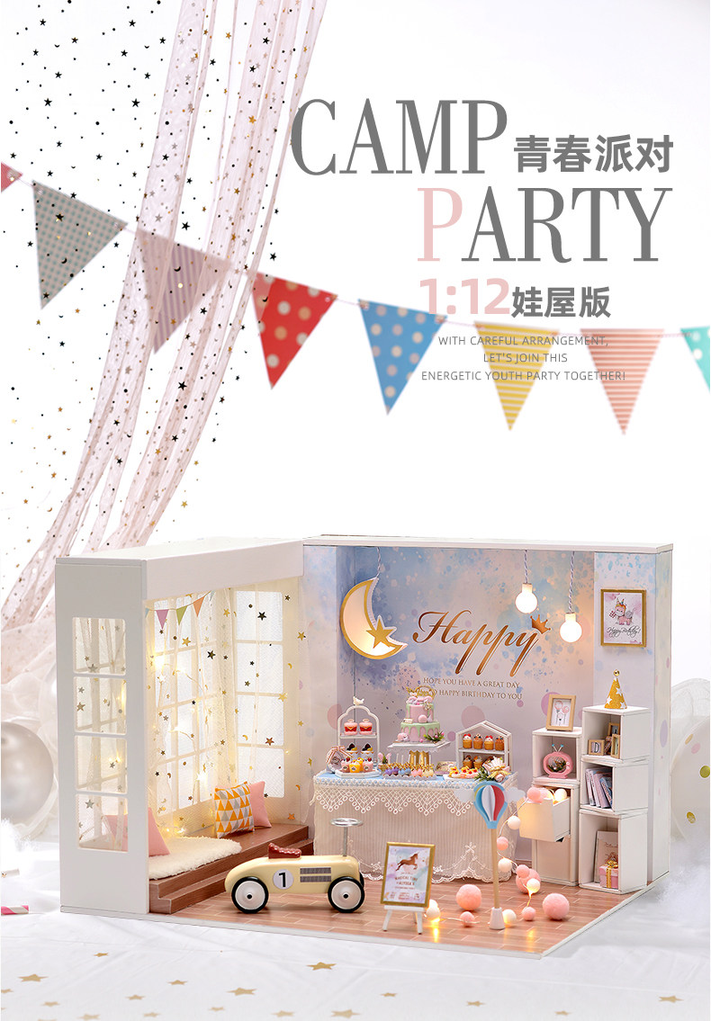 DIY Fun House 1:12 scale handmade OB11 dollhouse toy model assembly birthday gift