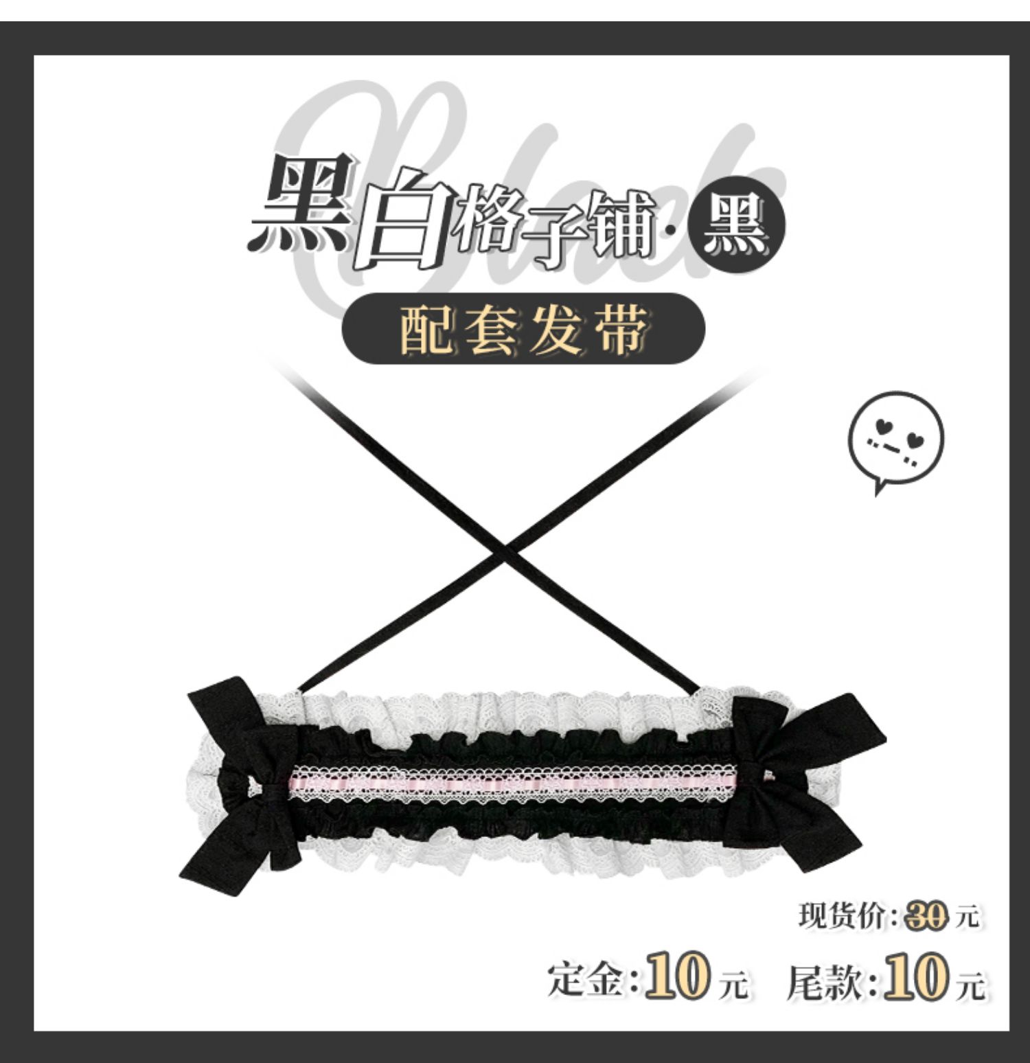 现货原创Lolita裙官配发饰黑白格子铺黑色发带头饰 [Original Page Link]