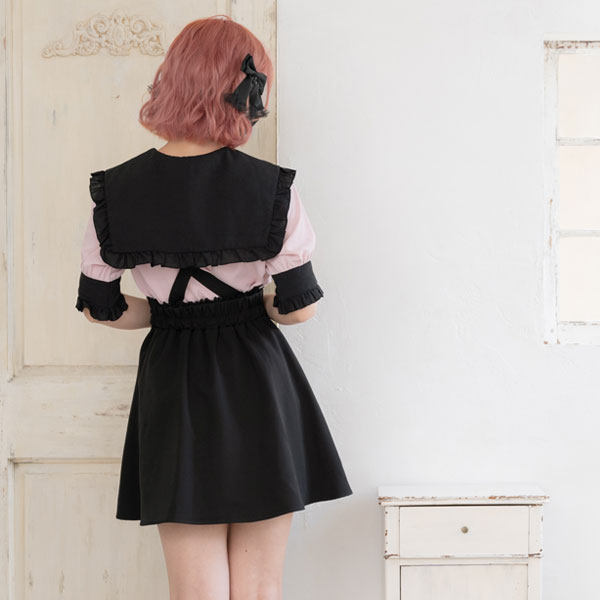 Free shipping full Japanese purchasing dream prospect Harajuku summer cross sailor collar short-sleeved shirt top 531509