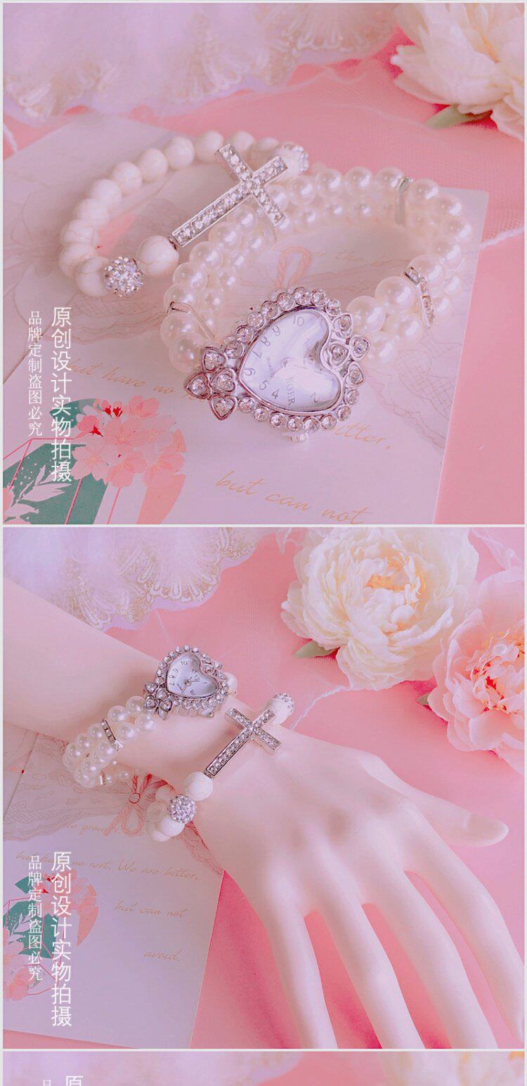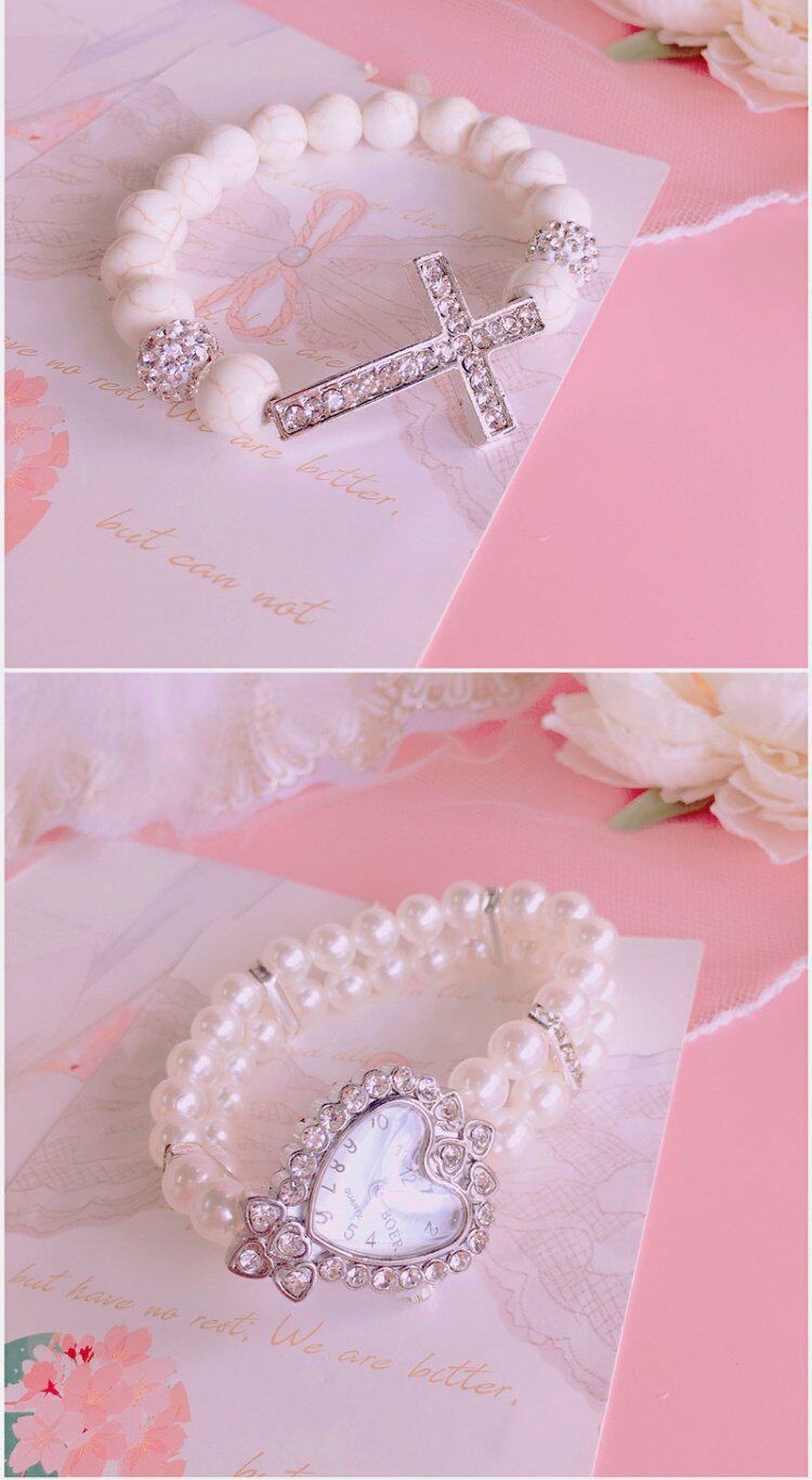 scandium十字架松石弹性手炼和爱心镶钻彷珍珠手表手炼 [Original Page Link]