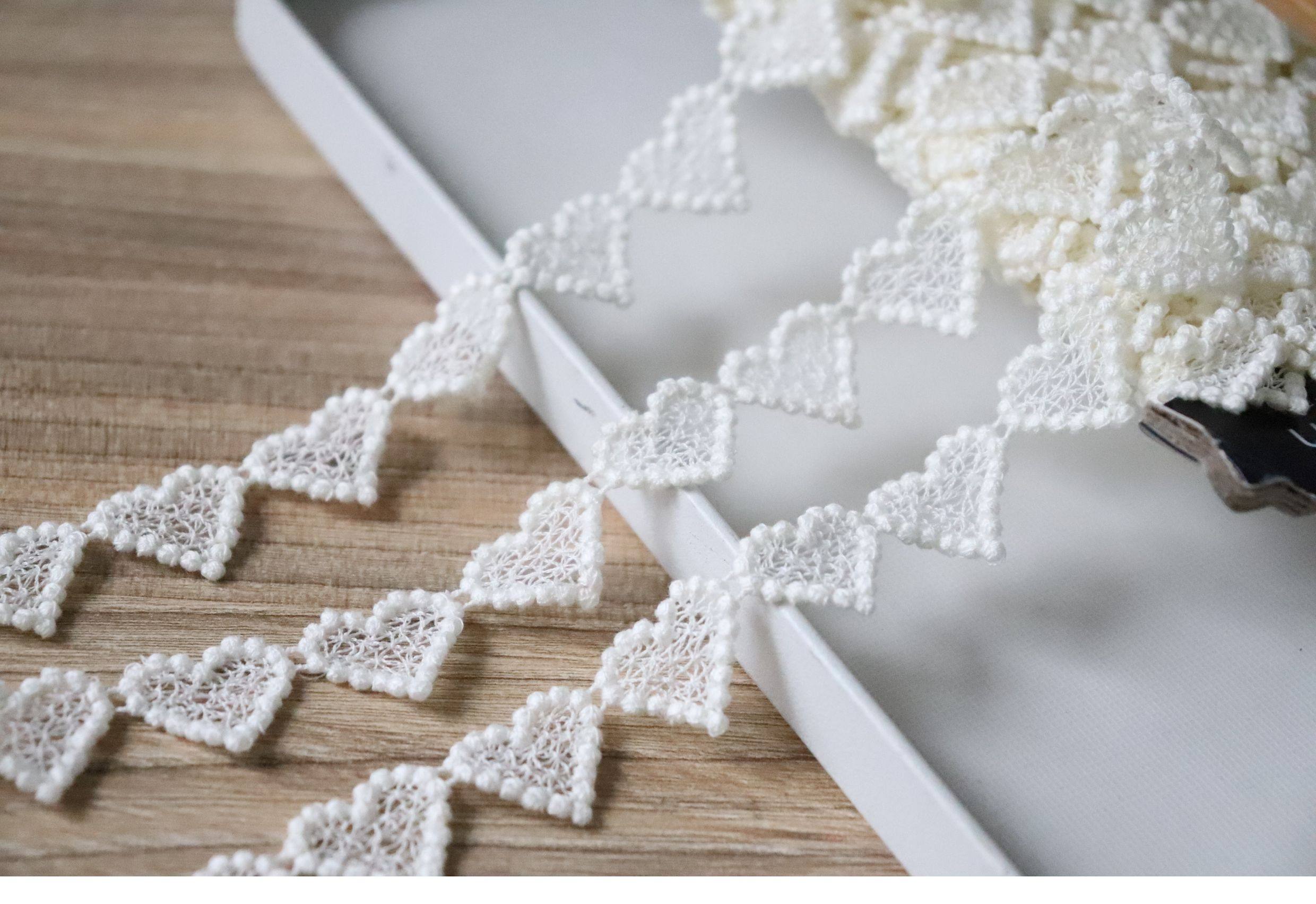 日本制。奶黄/米黄。细棉线刺绣。爱心形状水溶蕾丝花边宽1.5cm [Original Page Link]