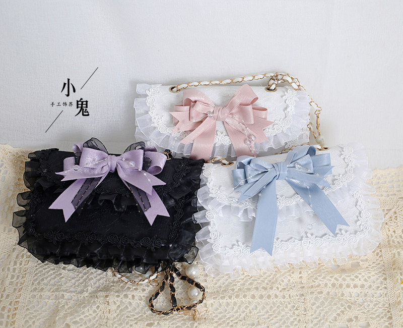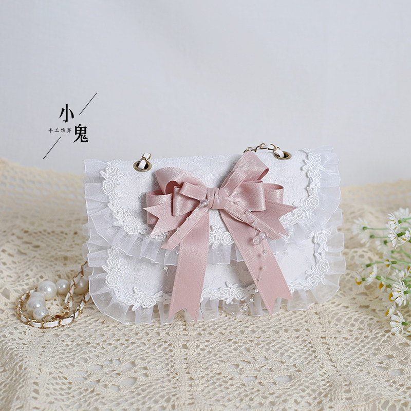 日系JK甜美蕾丝lolita珍珠蝴蝶结包包原创手作少女单肩手提包百搭 [Original Page Link]