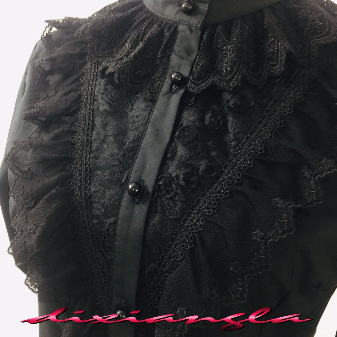 原创棉黑白高领2021lolita内搭衬衫前胸立体倒三角蕾丝荷叶边内搭 [Original Page Link]
