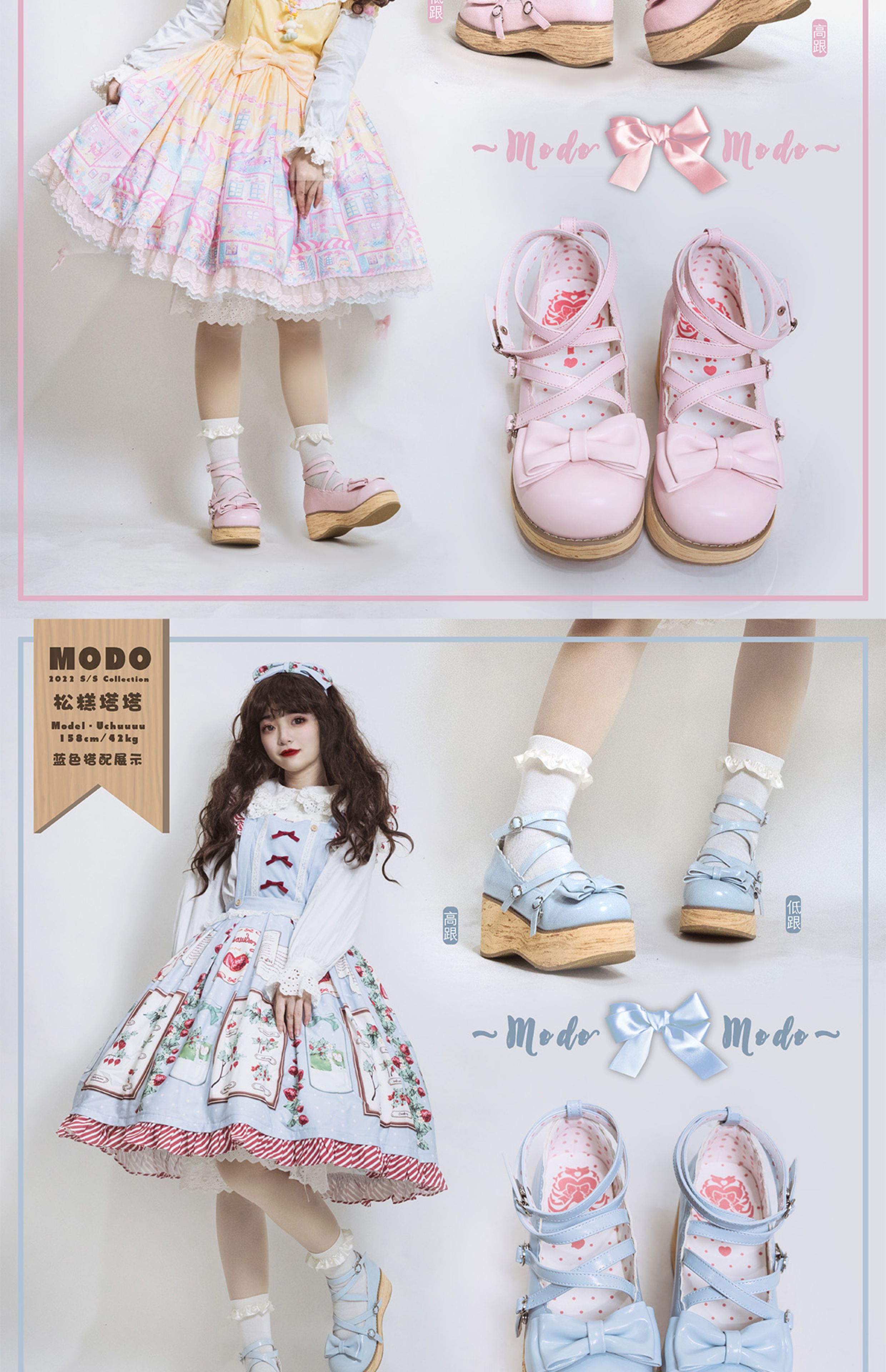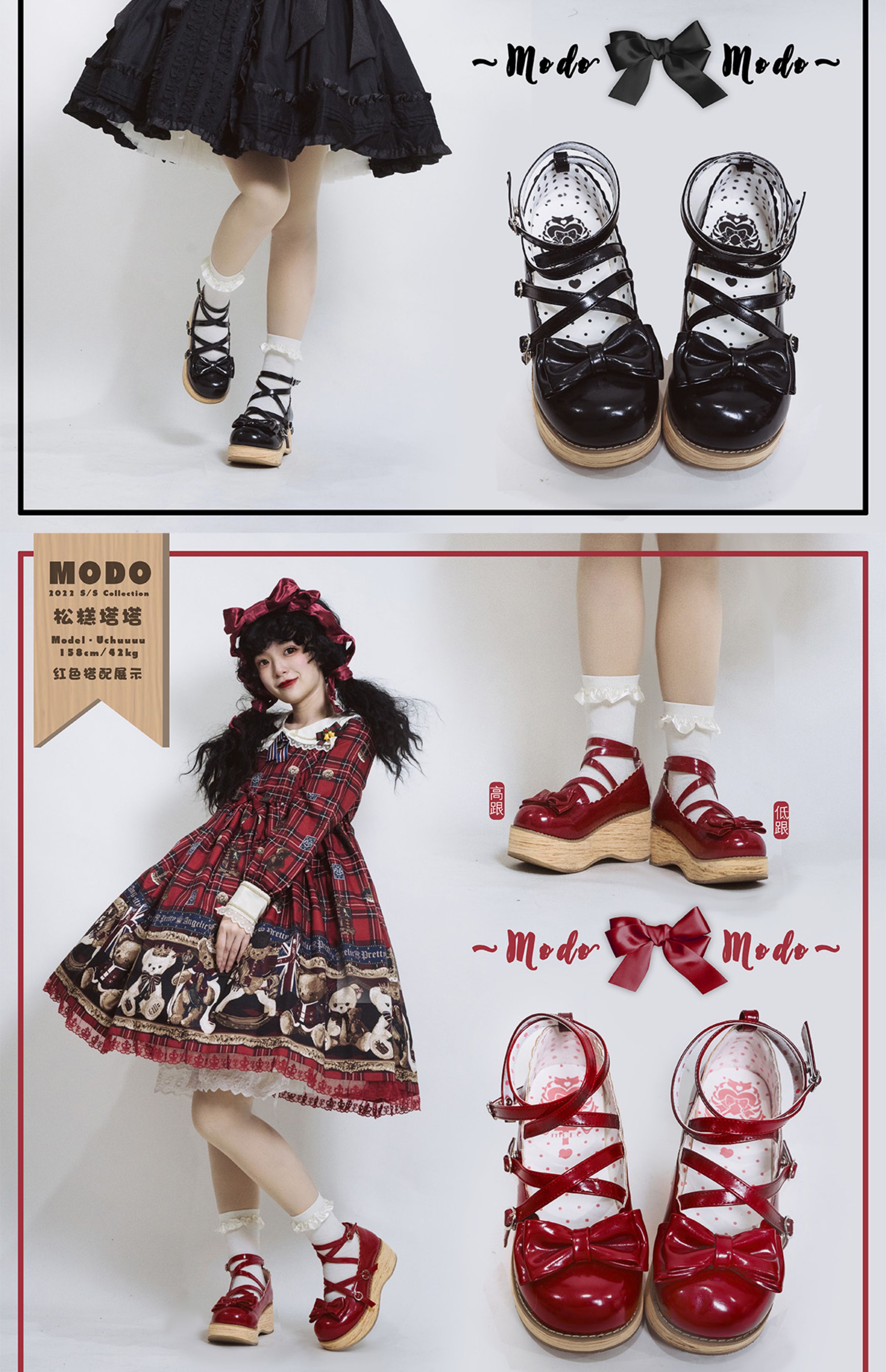 现货丨松糕塔塔摩多modo原创厚底鞋lolita鞋日系蝴蝶结圆头单鞋 [Original Page Link]