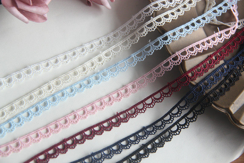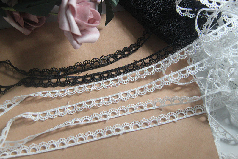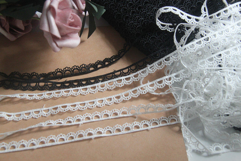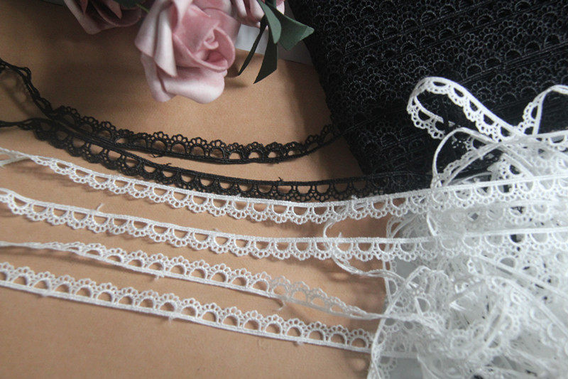 D17K2 Japanese version handmade clothing accessories, black and white water-soluble silk thread embroidery lace with perforated lace, 1cm width.