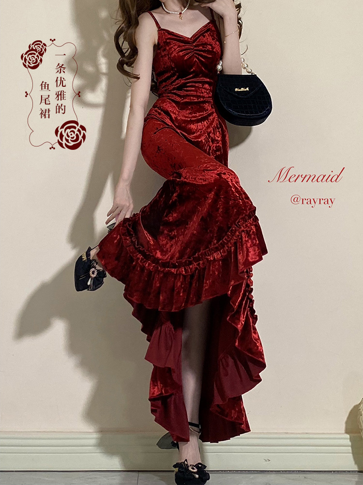 [An elegant fishtail deposit] Santuan original Lolita slim retro French dress LOLITA
