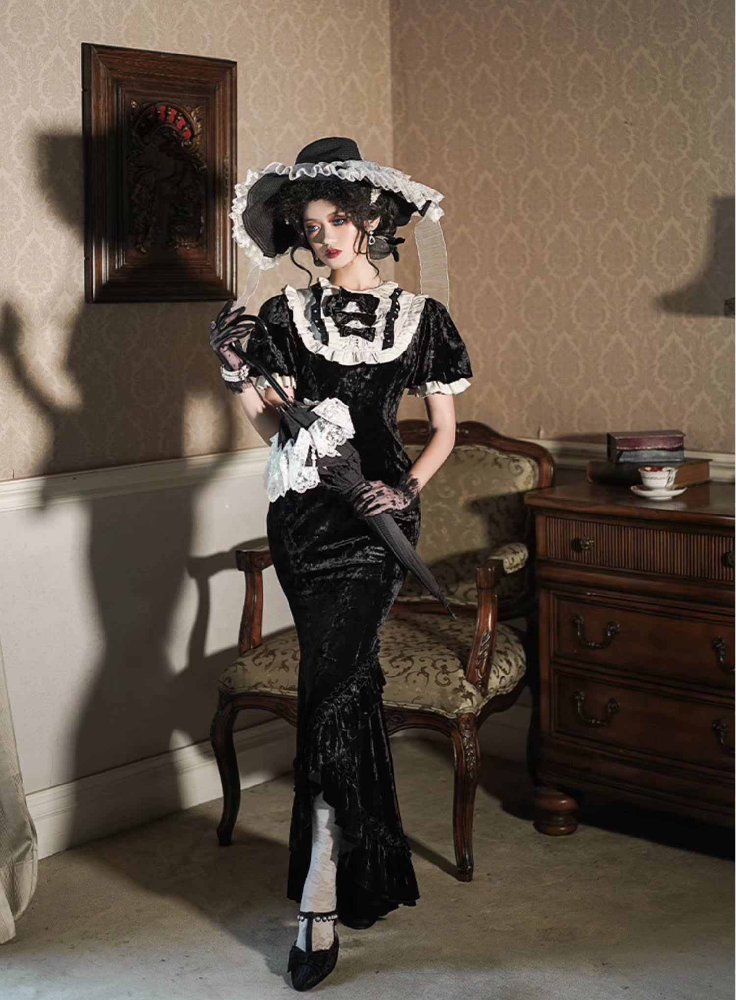 【一条优雅的鱼尾定金】三团原创洛丽塔修身复古法式连衣裙LOLITA [Original Page Link]
