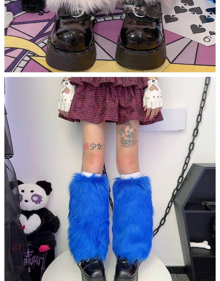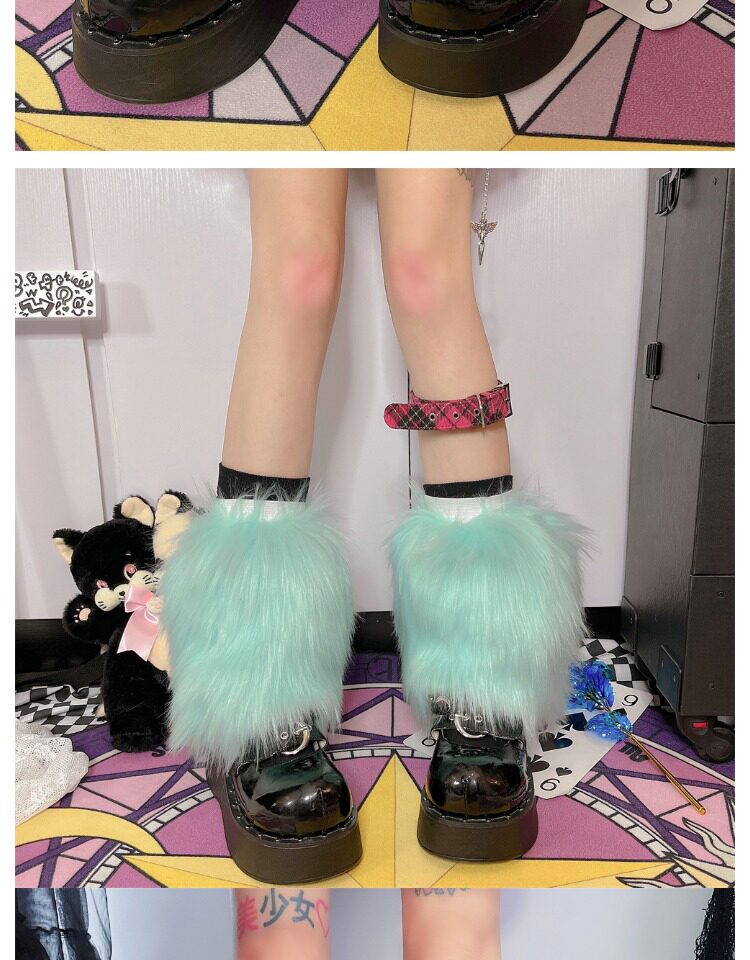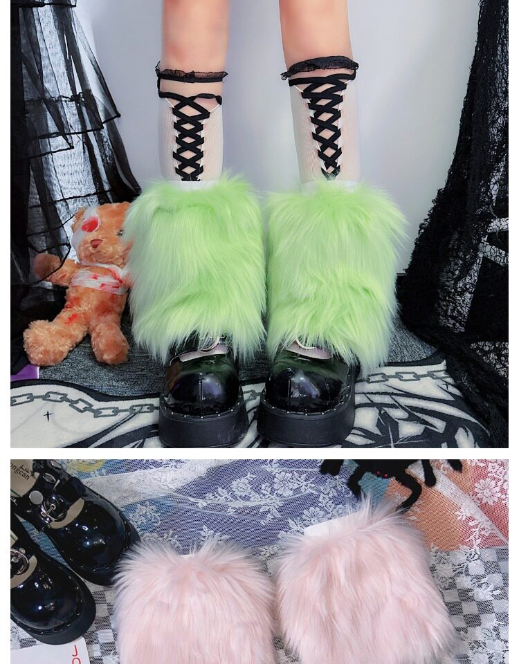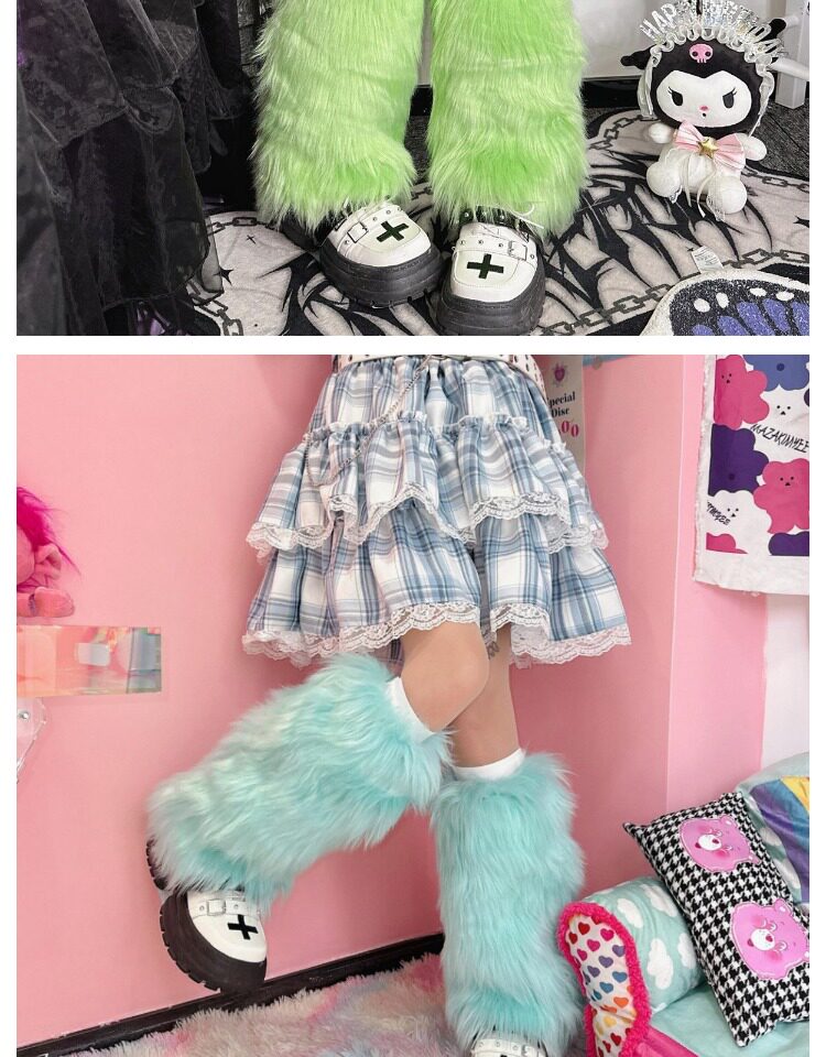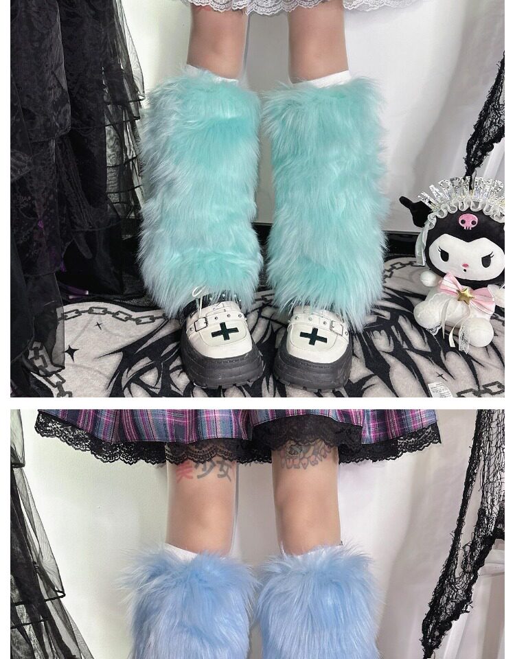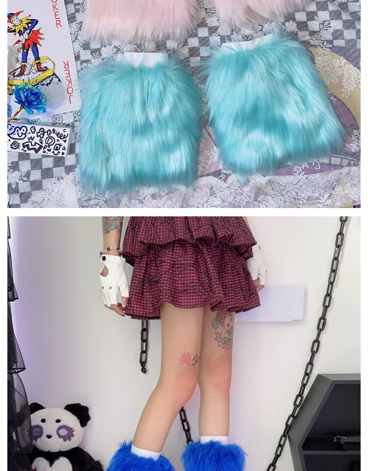 日系原宿风INS古早Y2K千禧辣妹亚比秋冬彷皮草扎染糖果色毛毛袜套 [Original Page Link]