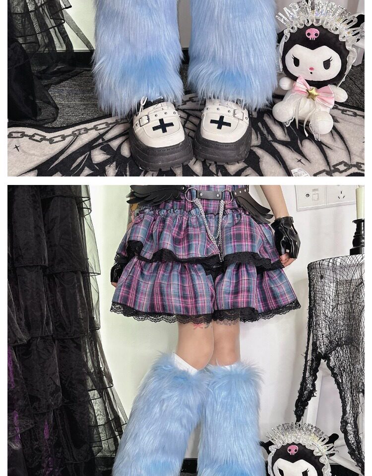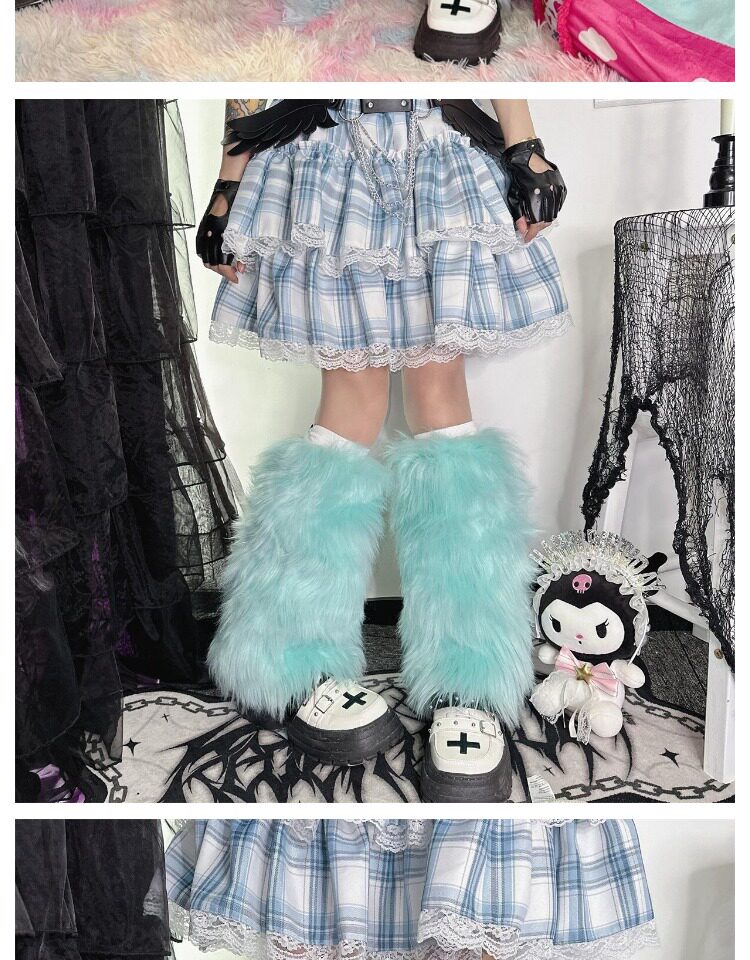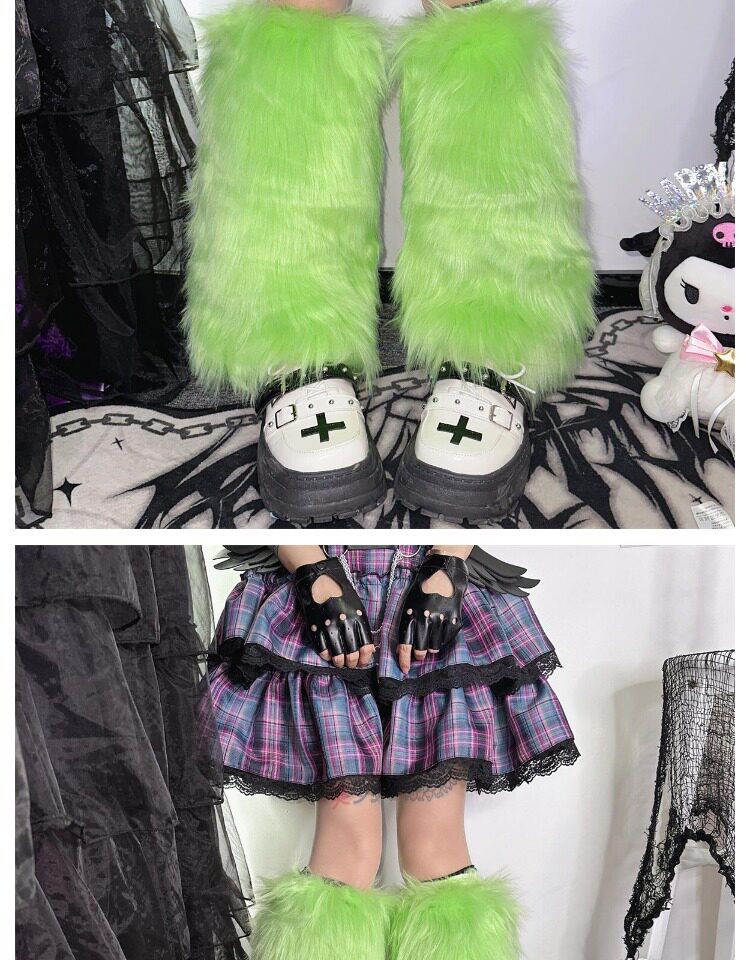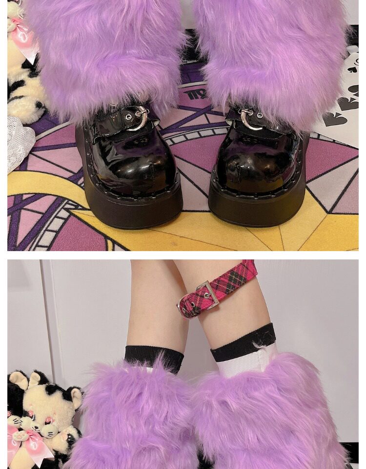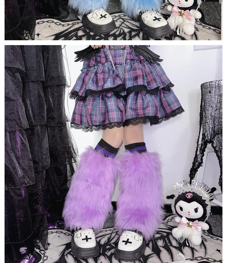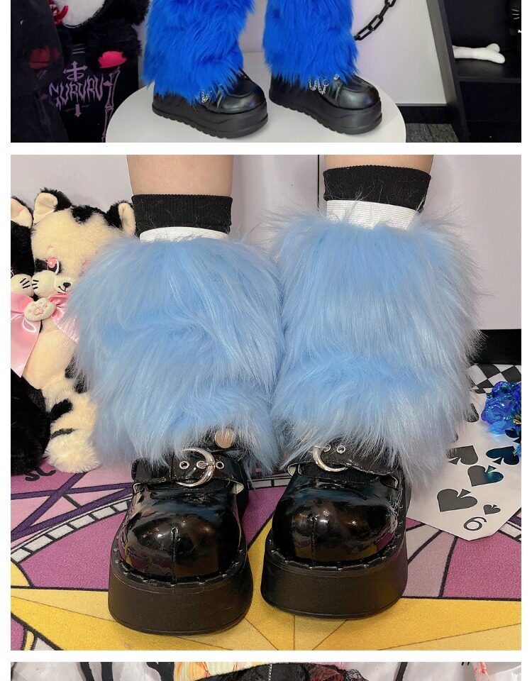 日系原宿风INS古早Y2K千禧辣妹亚比秋冬彷皮草扎染糖果色毛毛袜套 [Original Page Link]