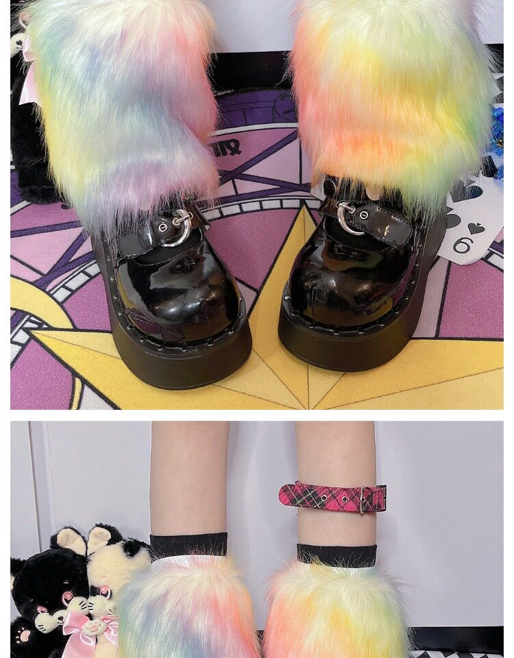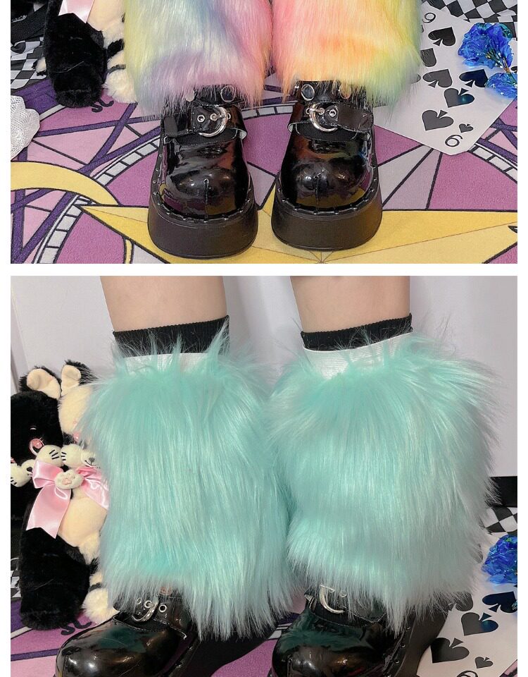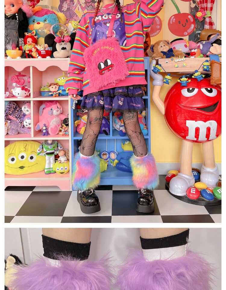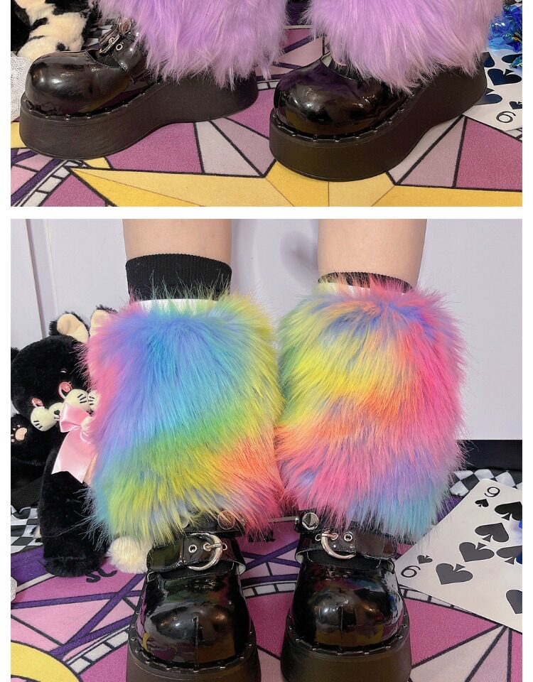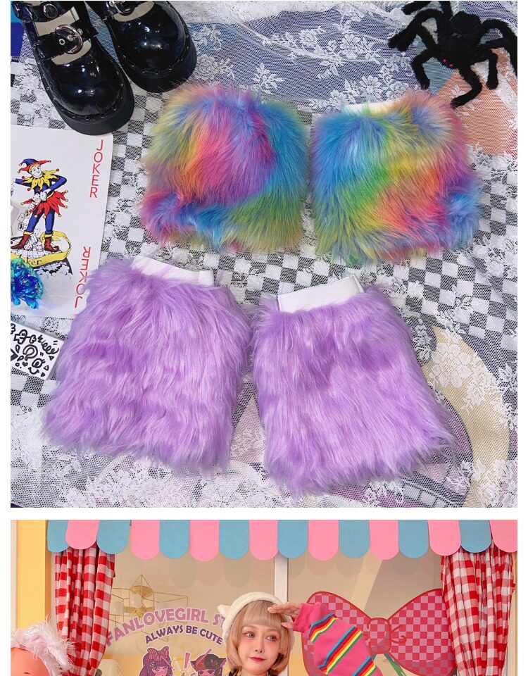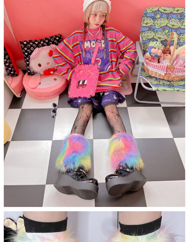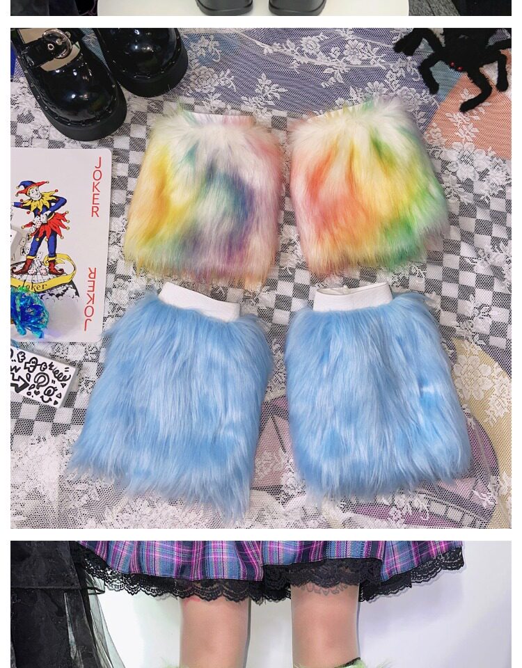Japanese Harajuku style, vintage Y2K, millennial hot girl, autumn/winter faux fur tie-dye candy-colored furry socks.