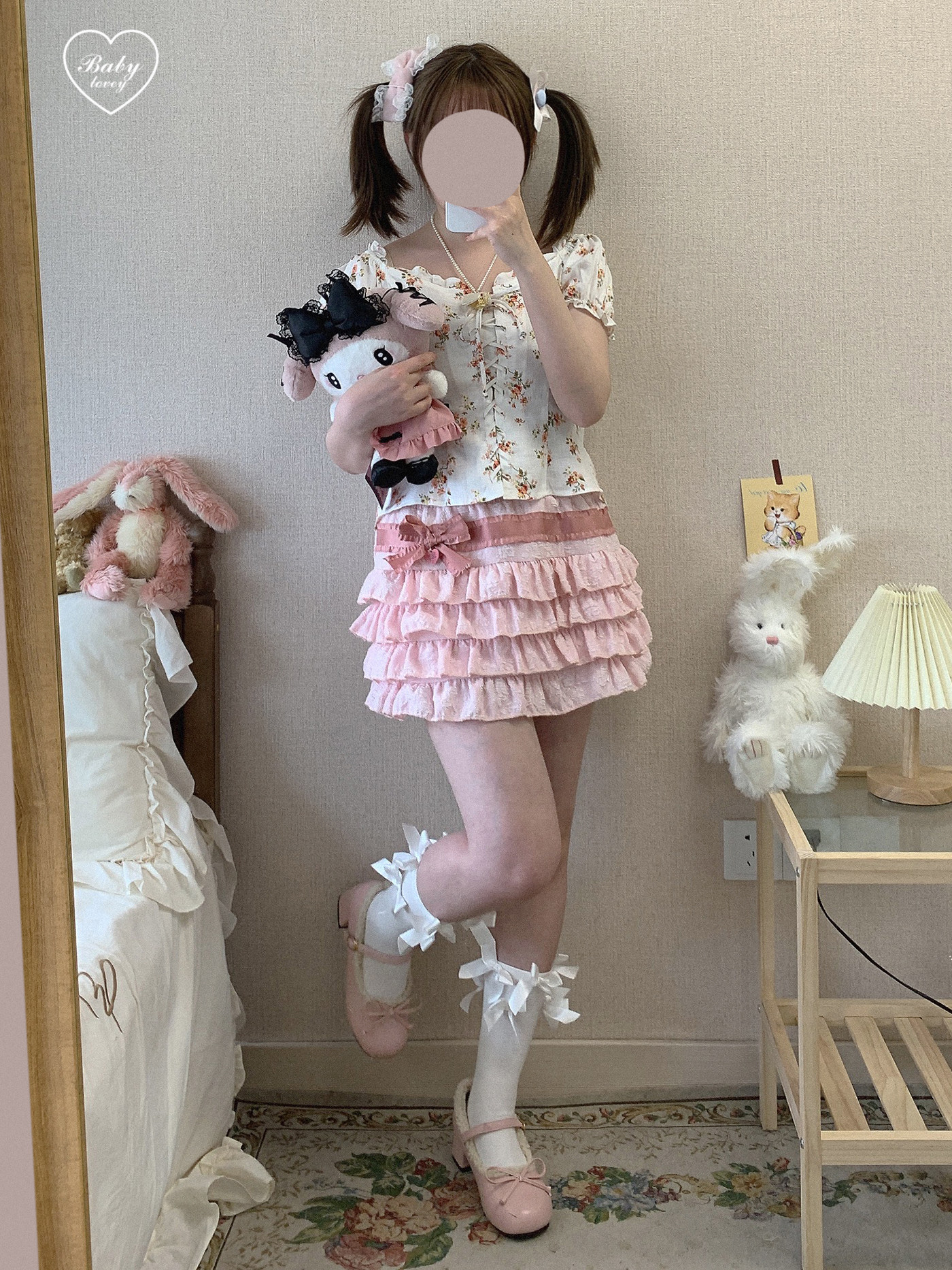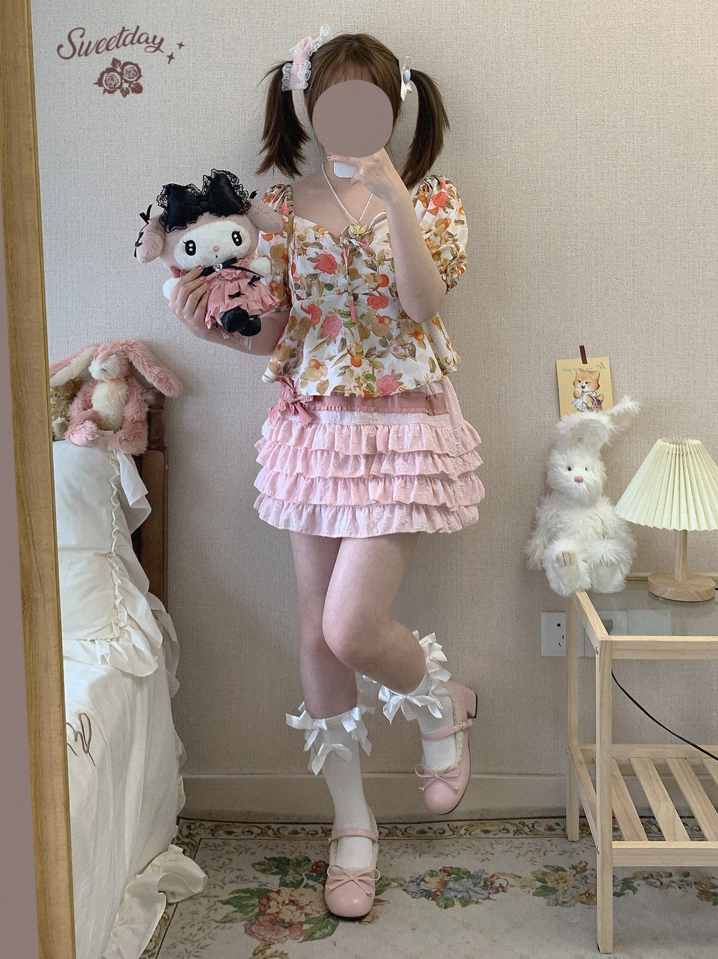Homemade Gift Box Love Pendant Layered Cake Bottom Thin Skirt Short Skirt (Five Colors)