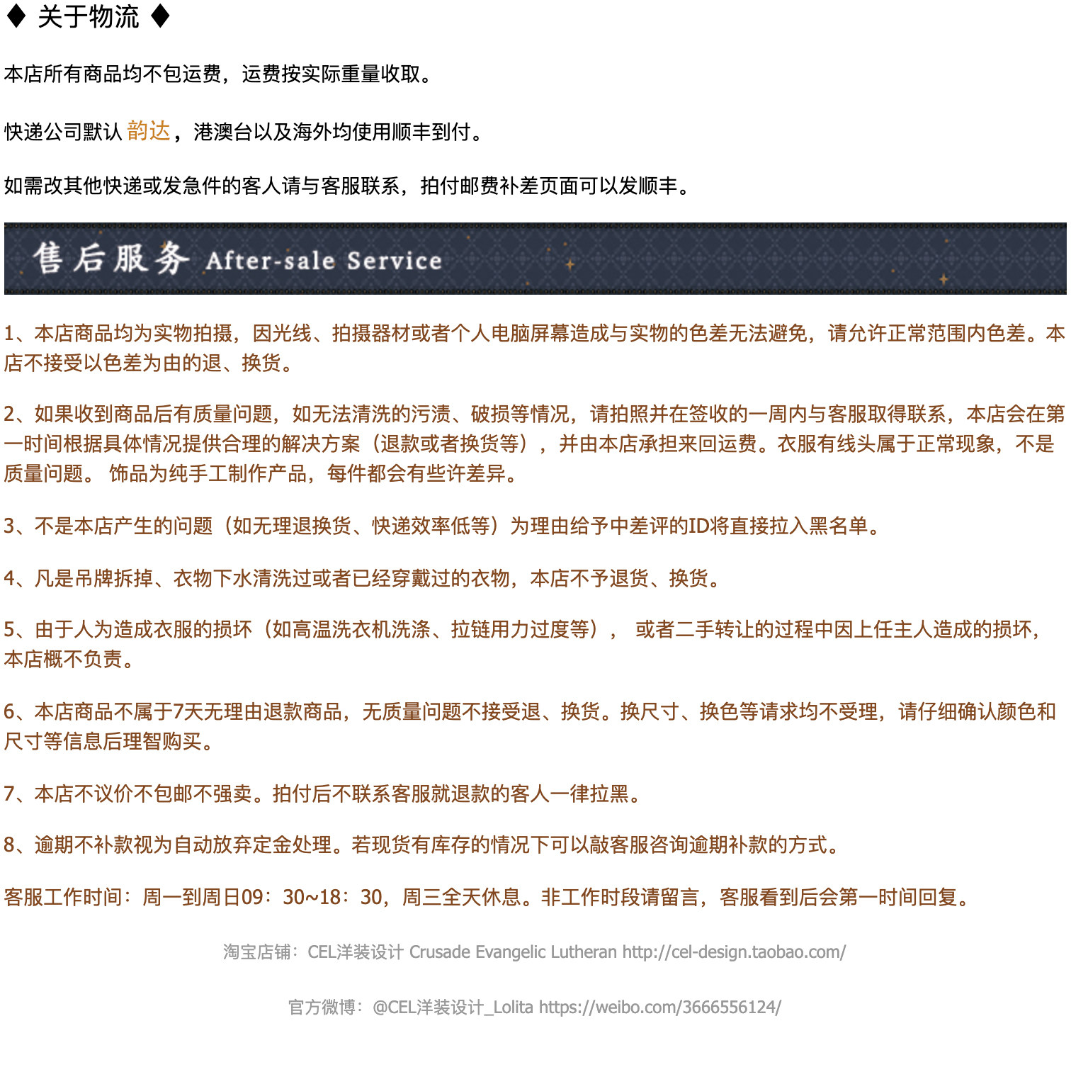 文字提及#CEL洋装设计、#cel彩窗、#Lolita,保留一周及以上并集赞18个以上,尾款减5元(同一ID