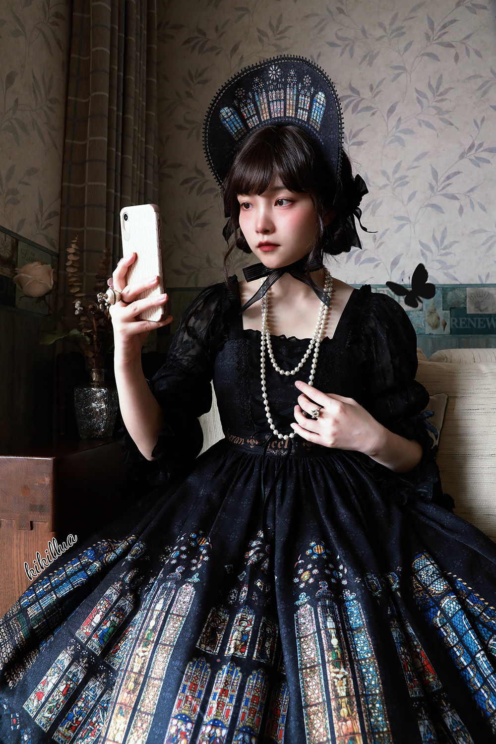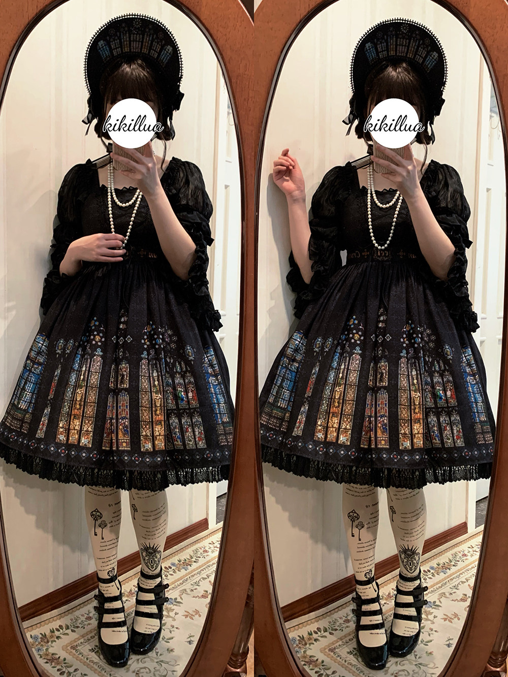 模特:KIKILLUA 身高:164,胸腰:88/67 穿着:定番JSK-S码短款 搭配:印花Bonnet