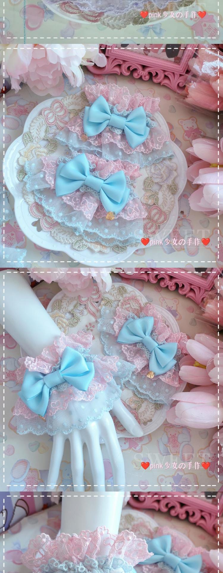Original lolita hand-made love bow double-layer color matching lace sleeves can be used with ap sweet series