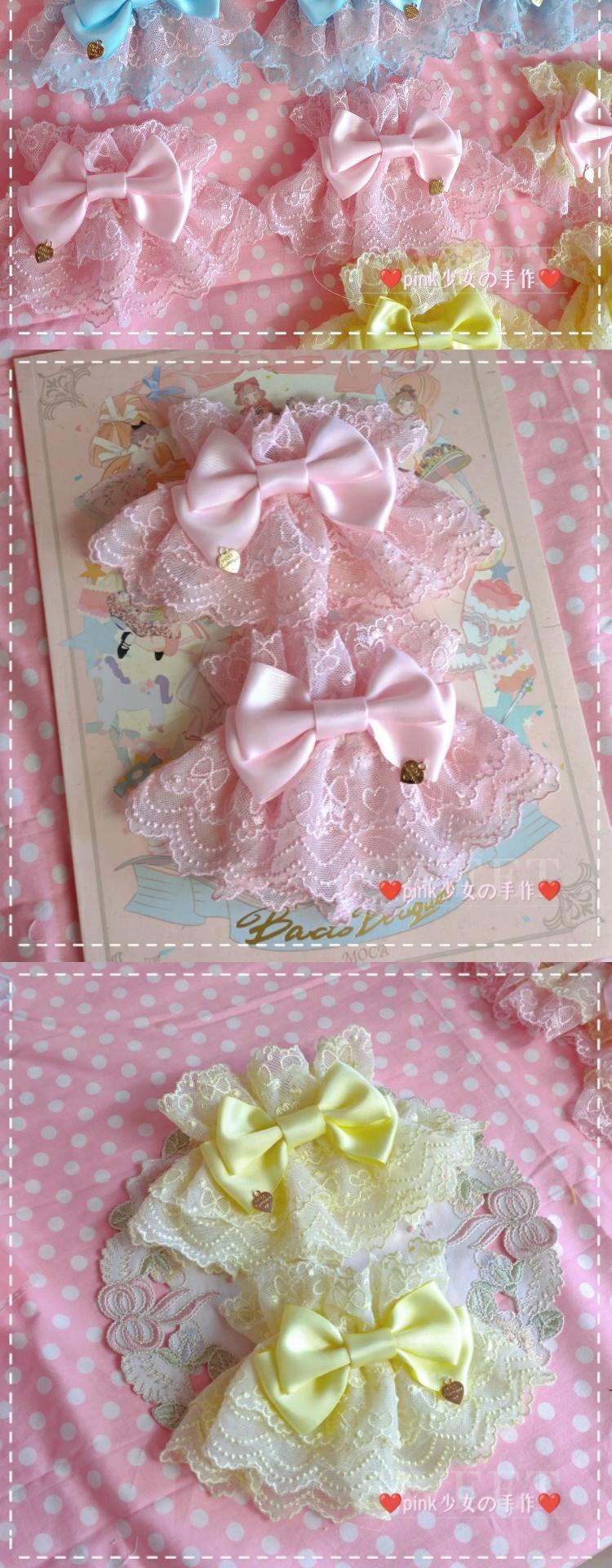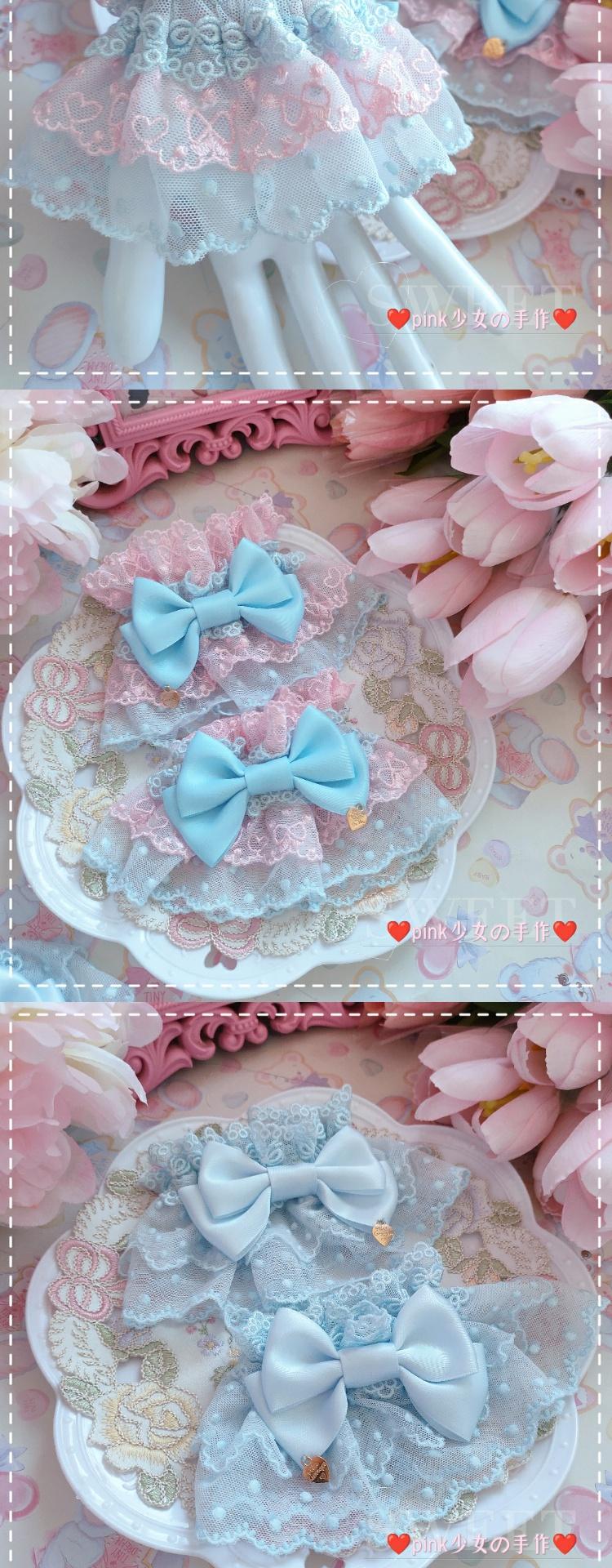 原创lolita手作 爱心蝴蝶结双层拼色蕾丝手袖 可搭ap甜系 [Original Page Link]