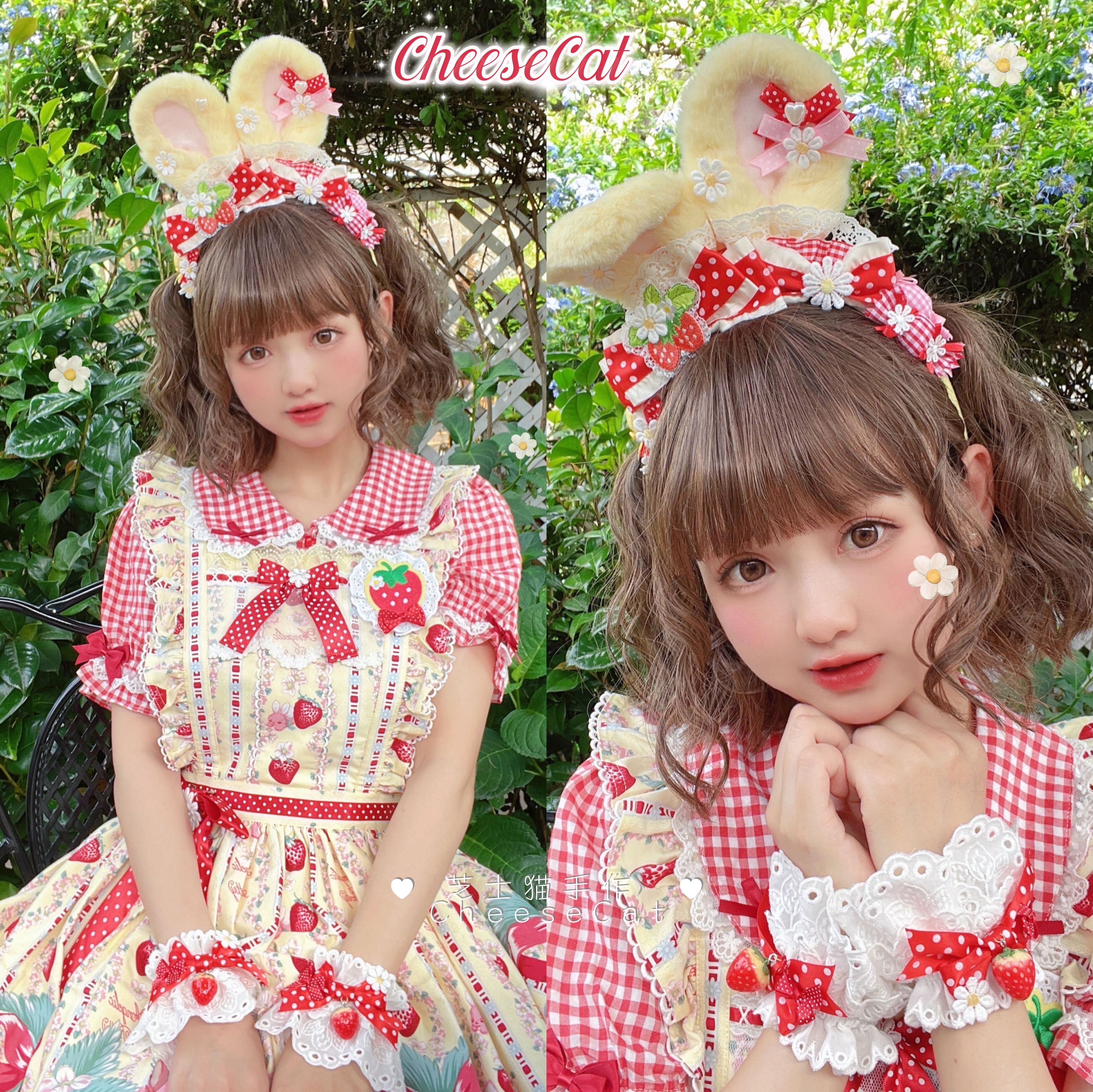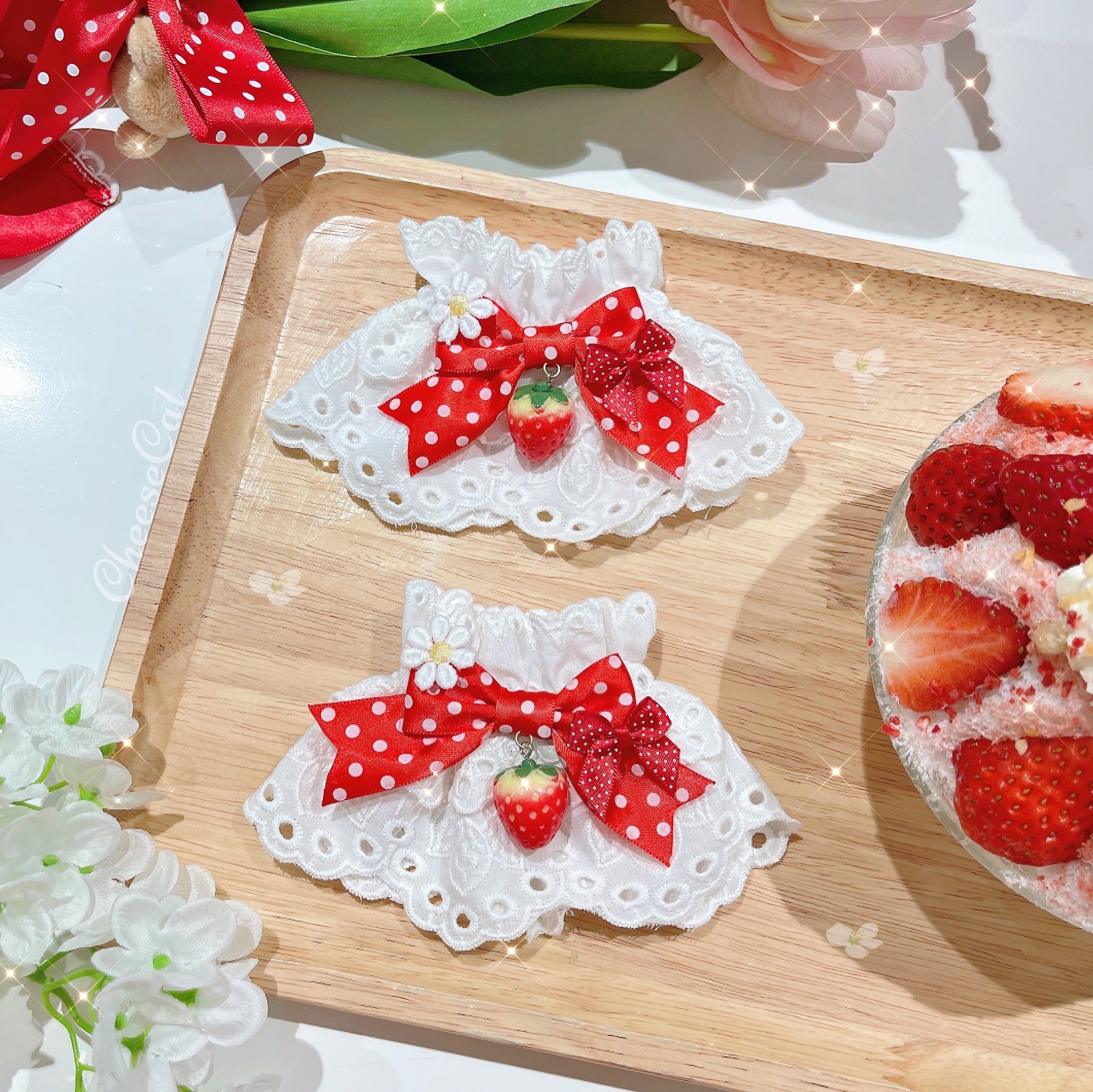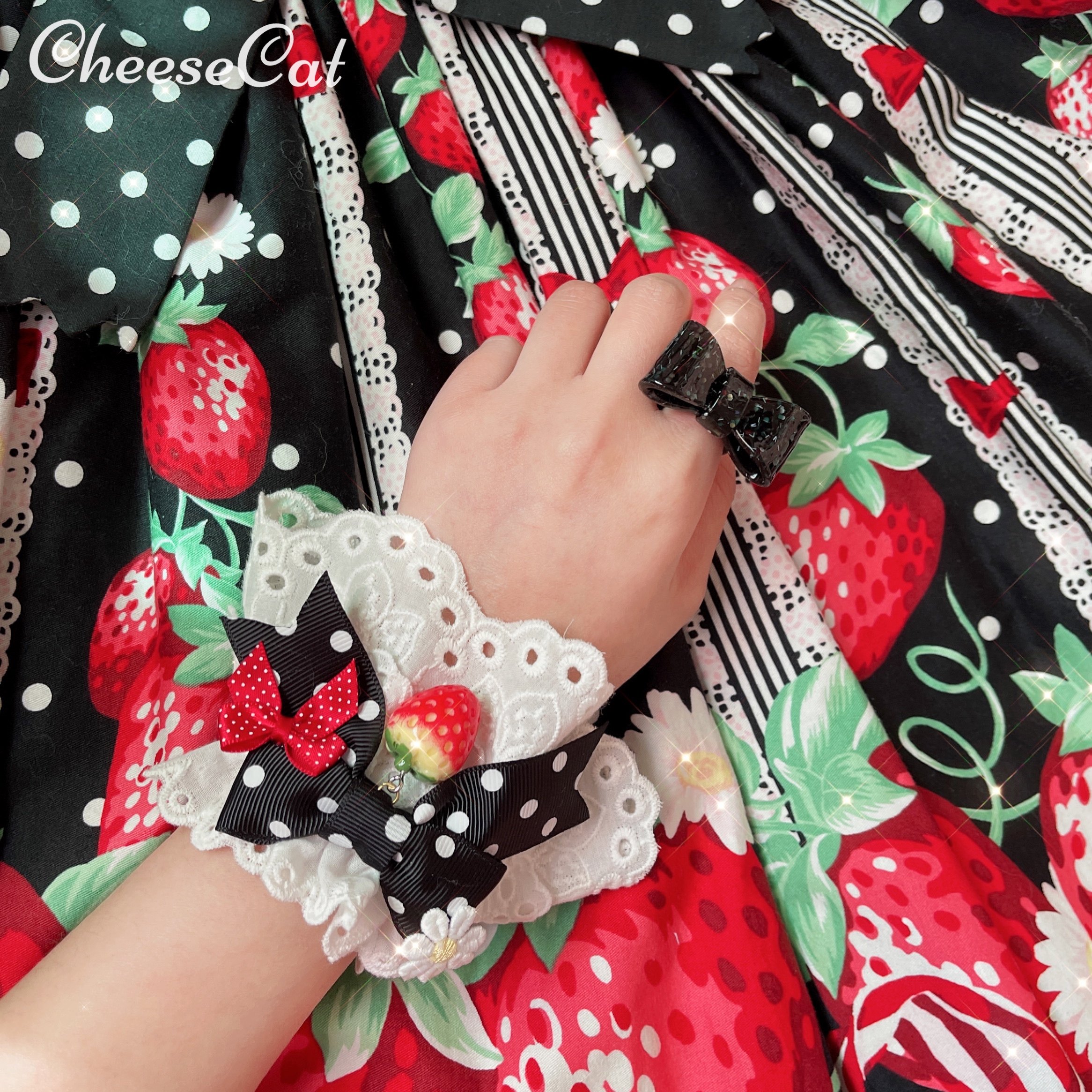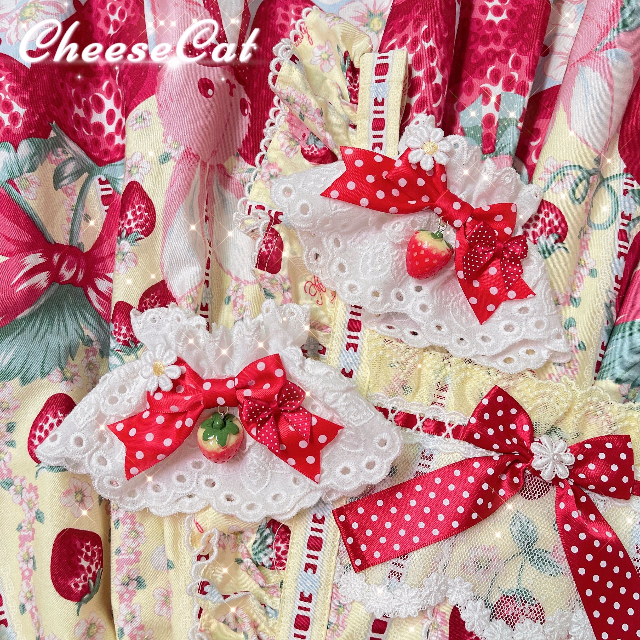 【芝士猫手作】原创ap15草莓日制丝带波点呲甜lolita小物配饰手袖 [Original Page Link]