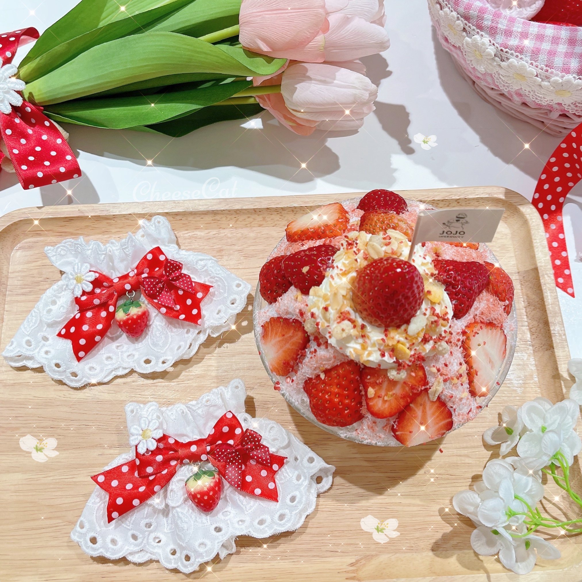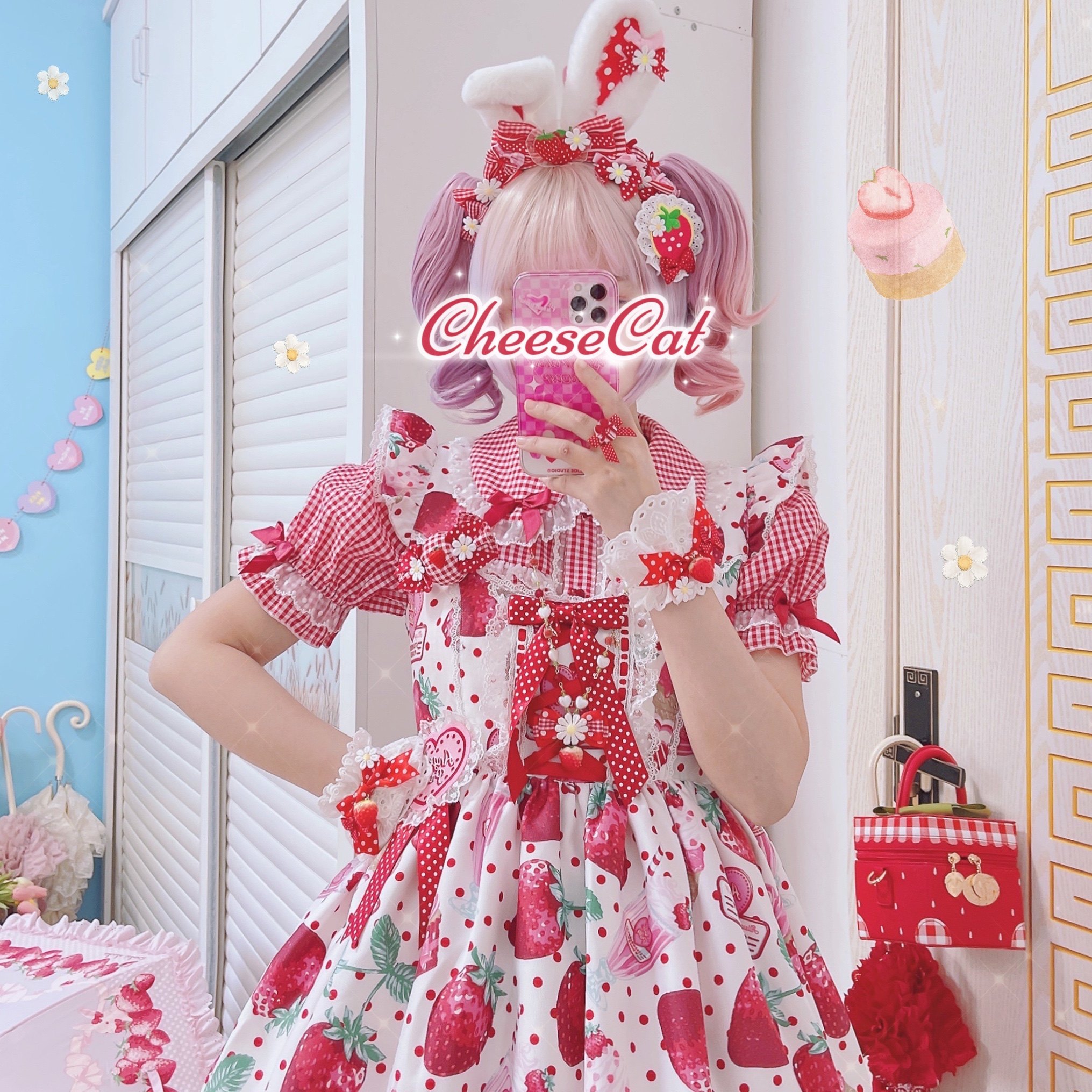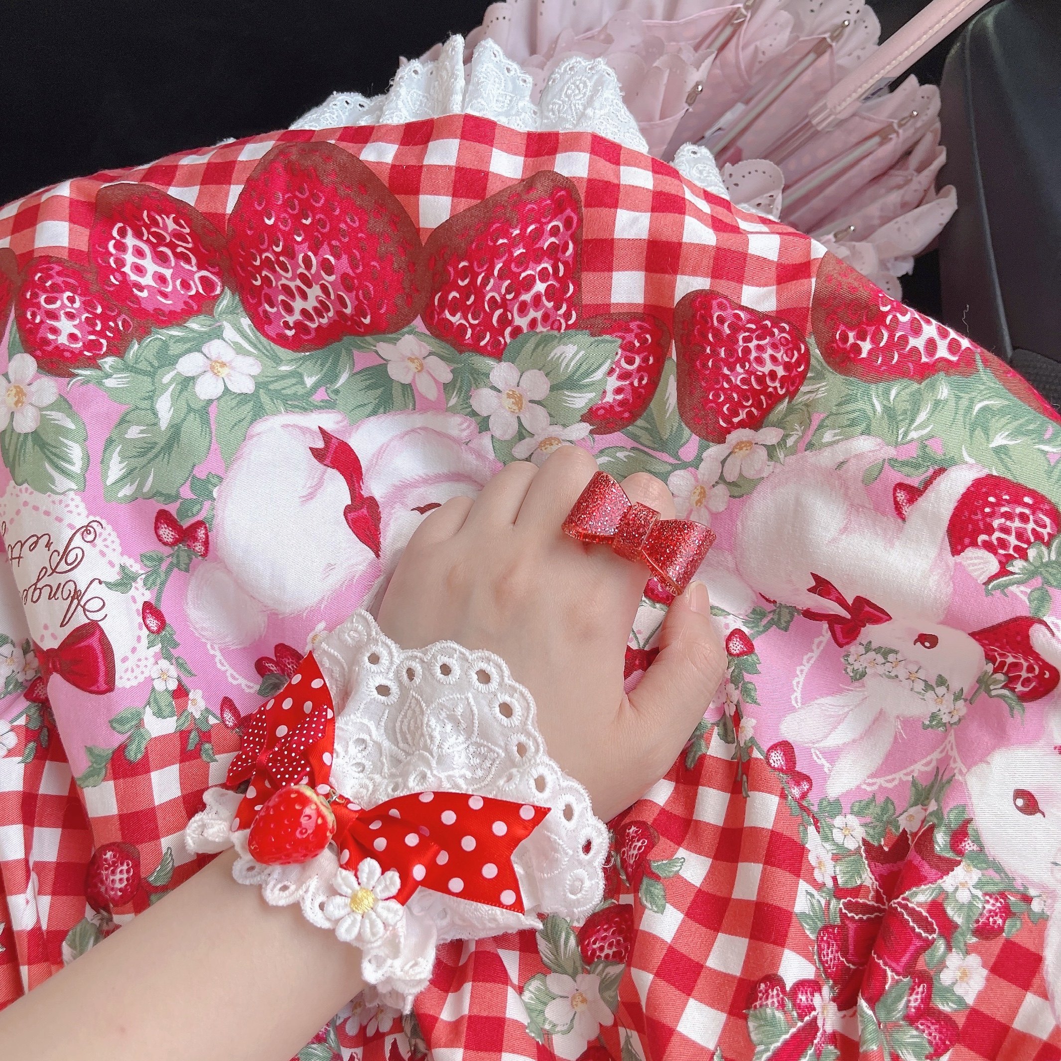 【芝士猫手作】原创ap15草莓日制丝带波点呲甜lolita小物配饰手袖 [Original Page Link]