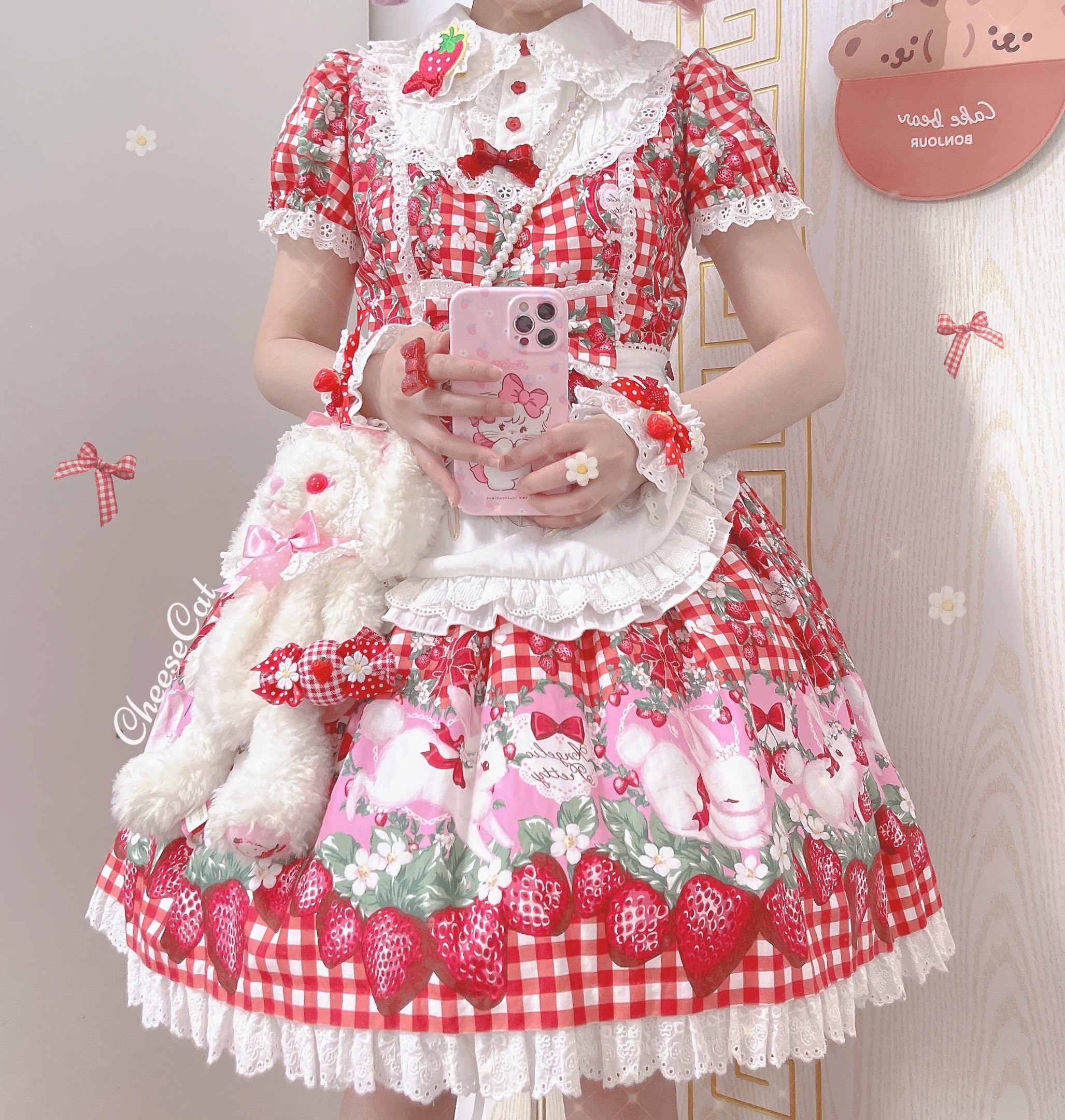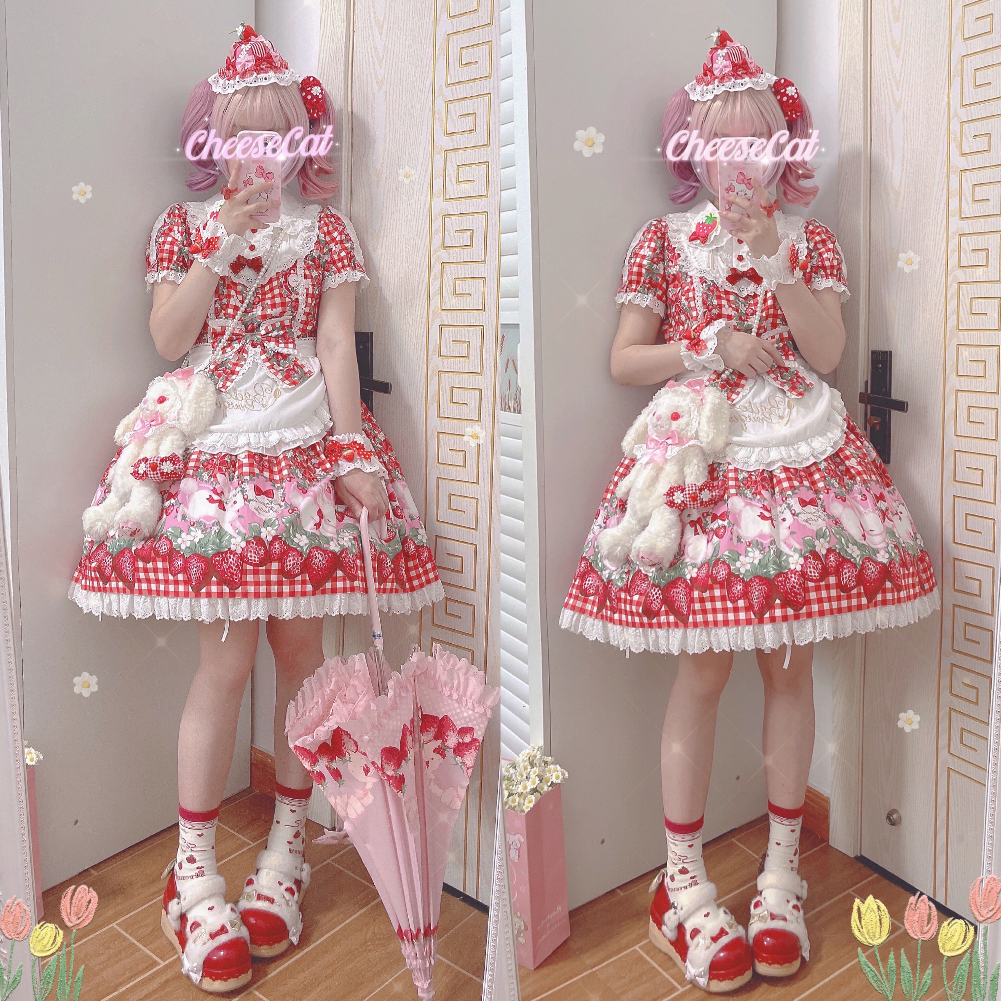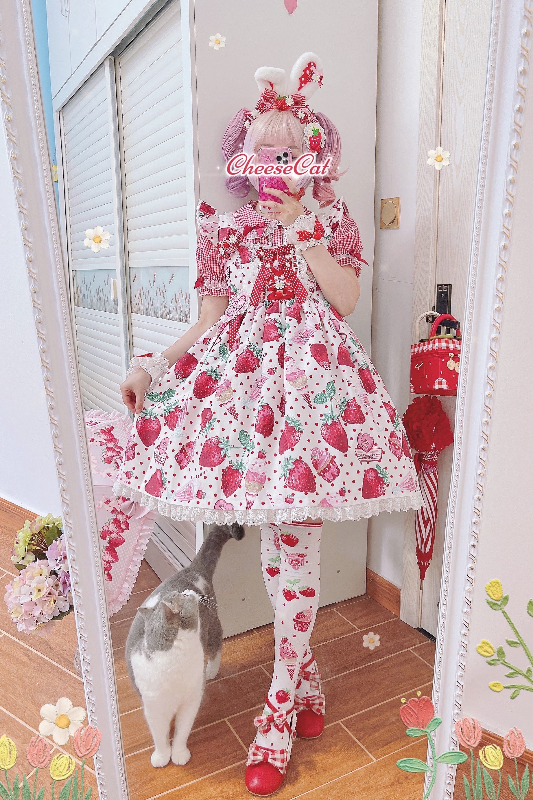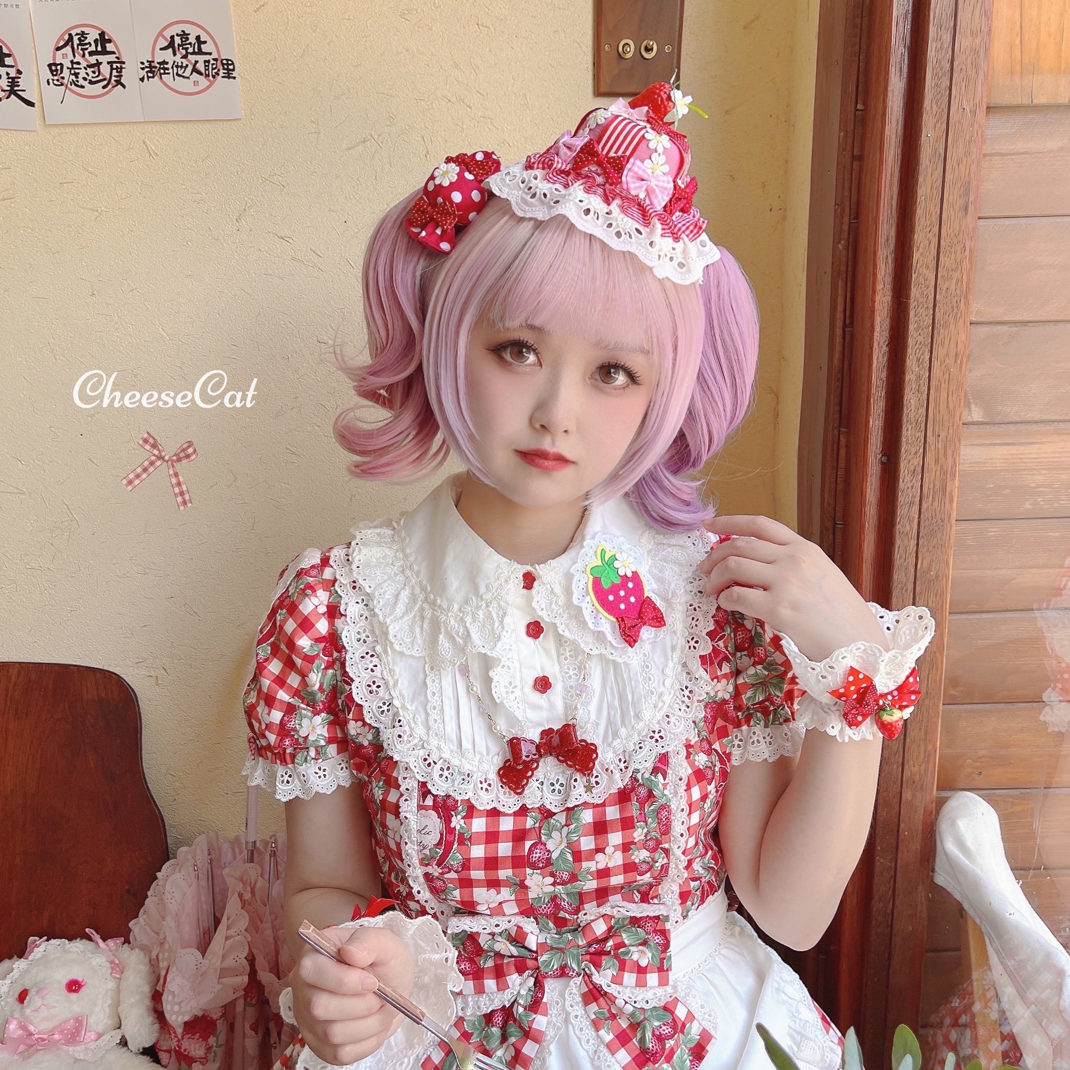 【芝士猫手作】原创ap15草莓日制丝带波点呲甜lolita小物配饰手袖 [Original Page Link]