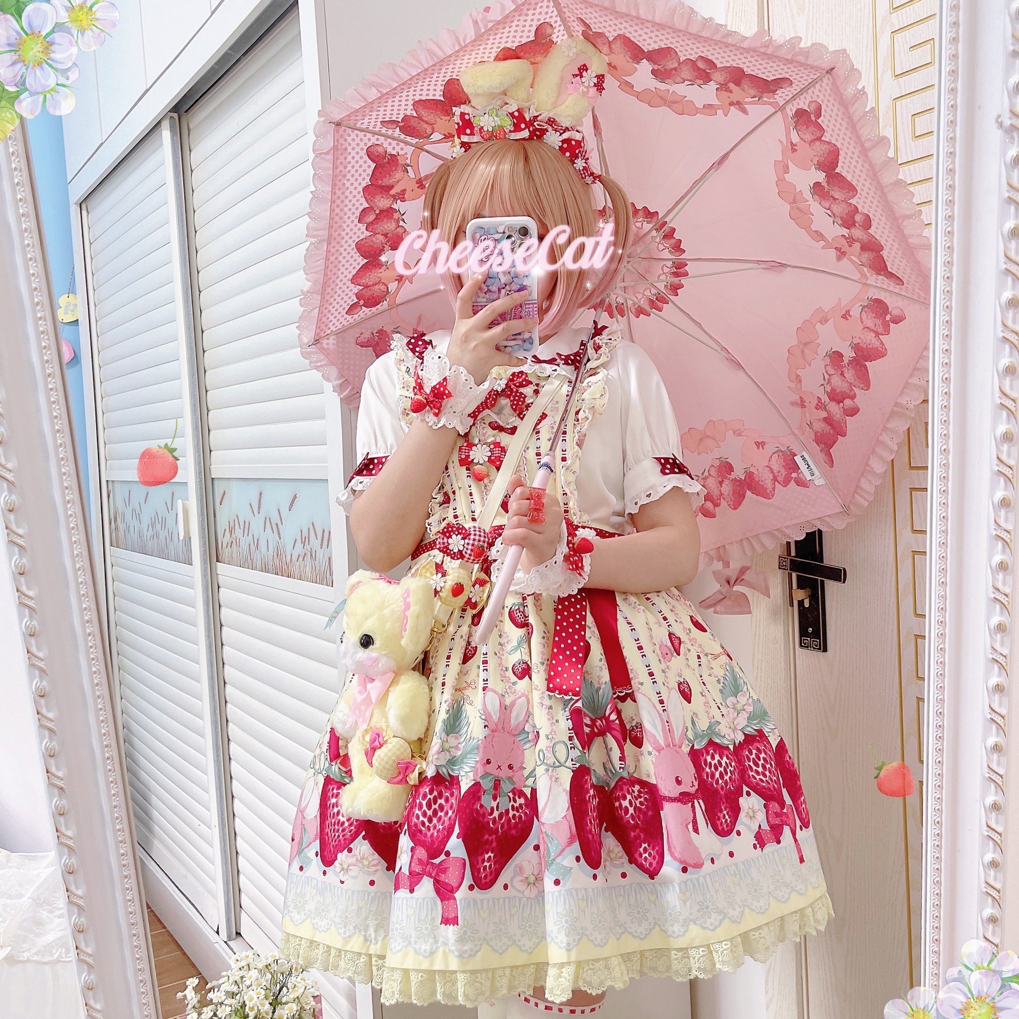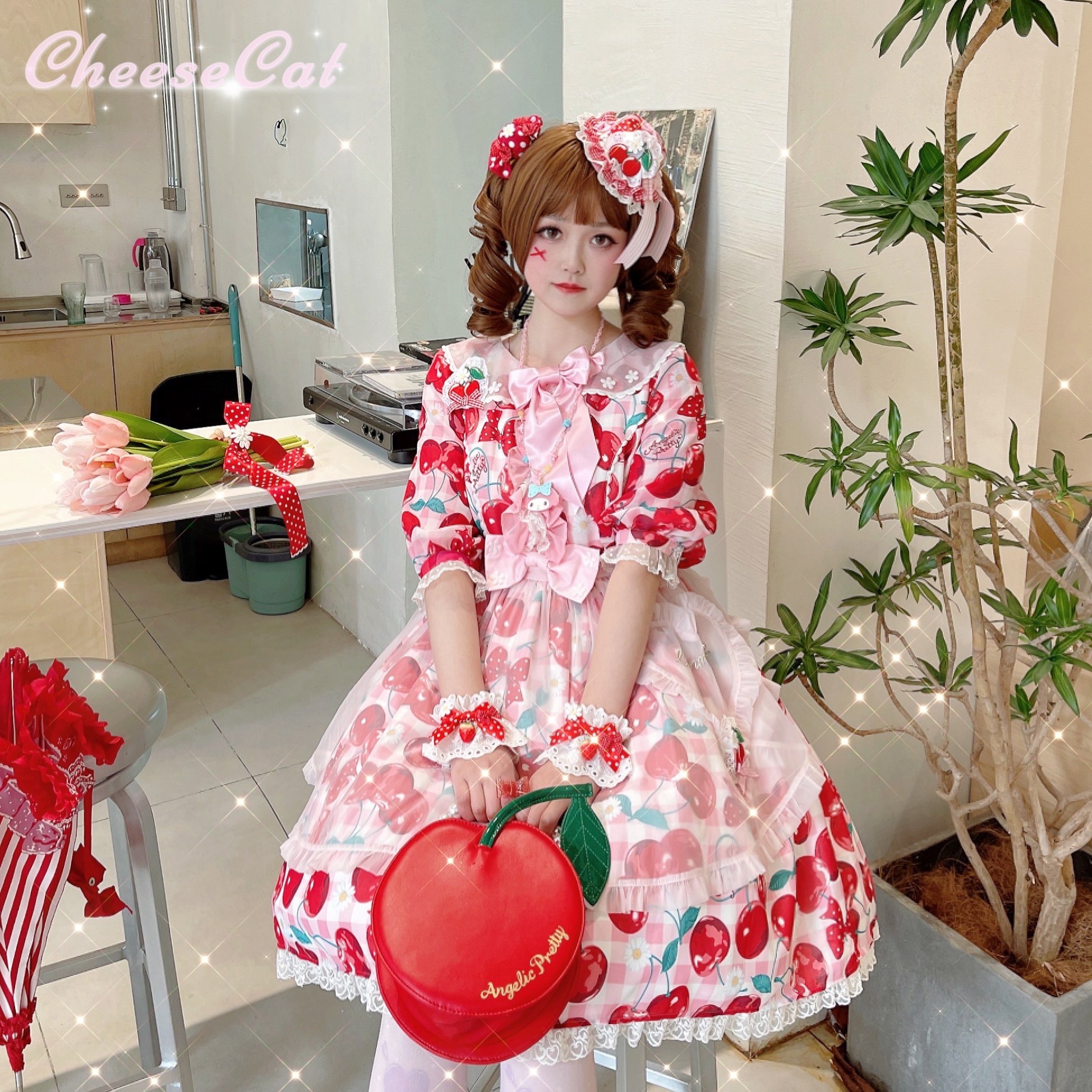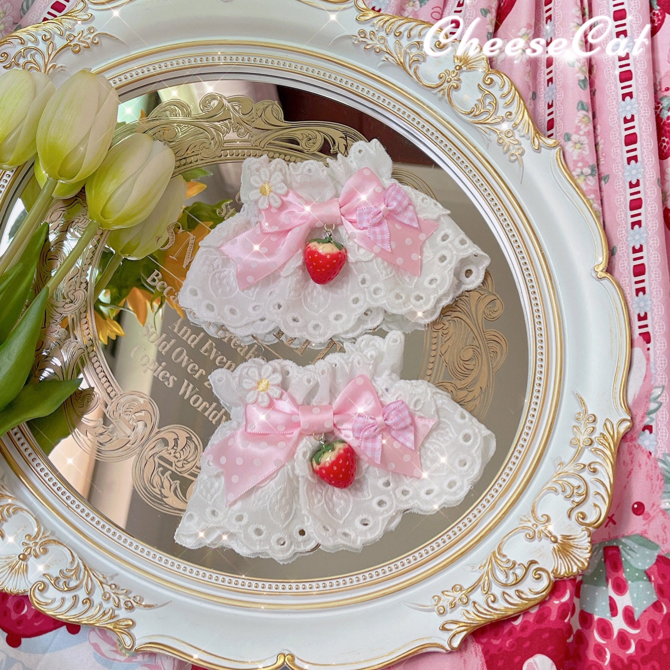 [Cheese Cat Handmade] Original ap15 strawberry Japanese ribbon polka dot sweet lolita small accessories sleeve