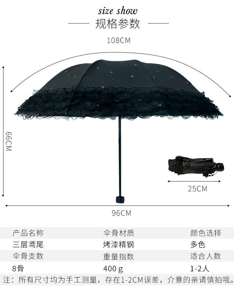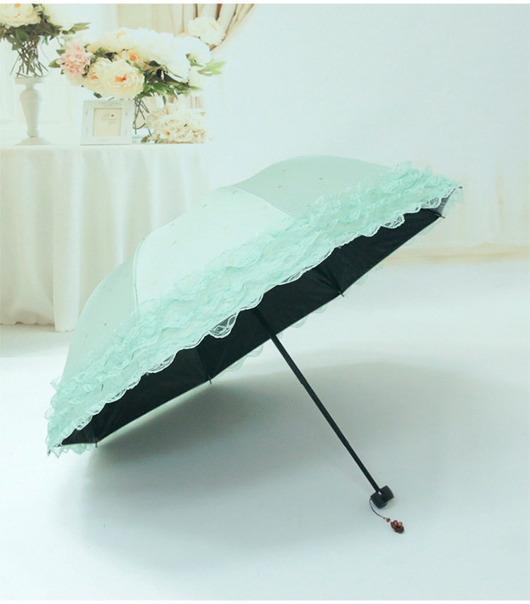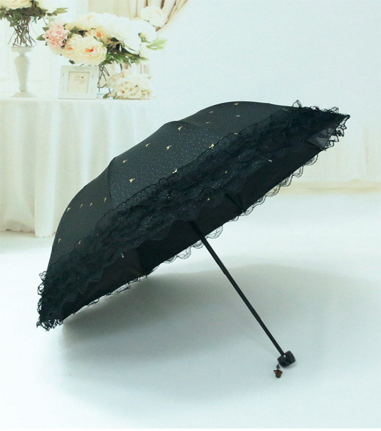 韩版遮阳伞防晒抗UV雨伞女晴雨两用折叠黑胶蕾丝公主遮阳洋伞 [Original Page Link]