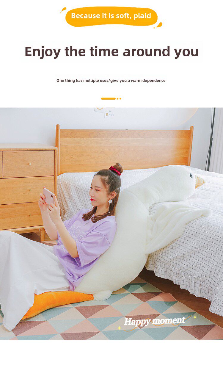 Large white goose plush pillow, goose doll, leg-clamping rag doll, bedtime gift for girls, birthday present.