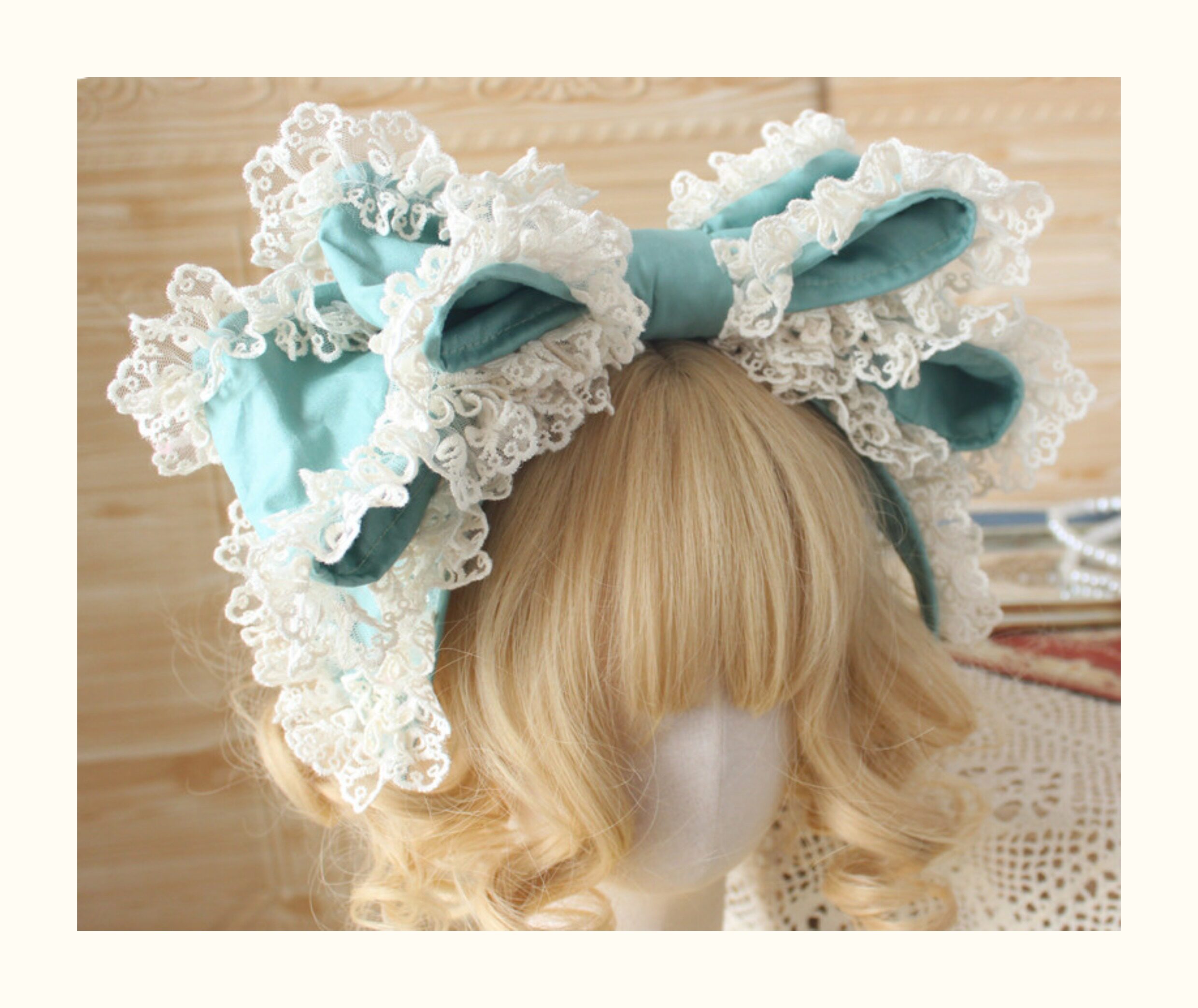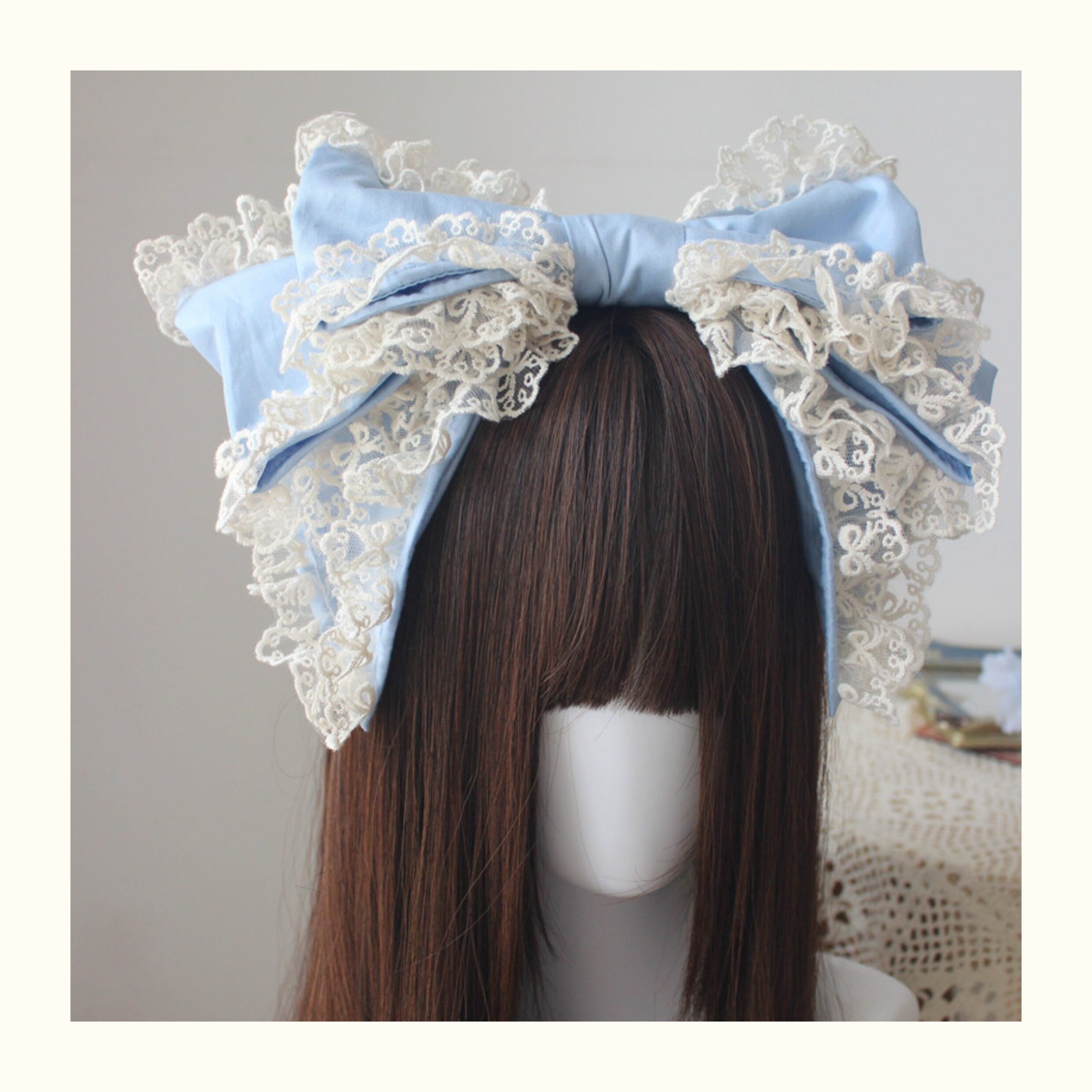 原创手作奶油蛋糕超大蝴蝶结发箍头饰lolita少女棉布甜美发饰kc [Original Page Link]