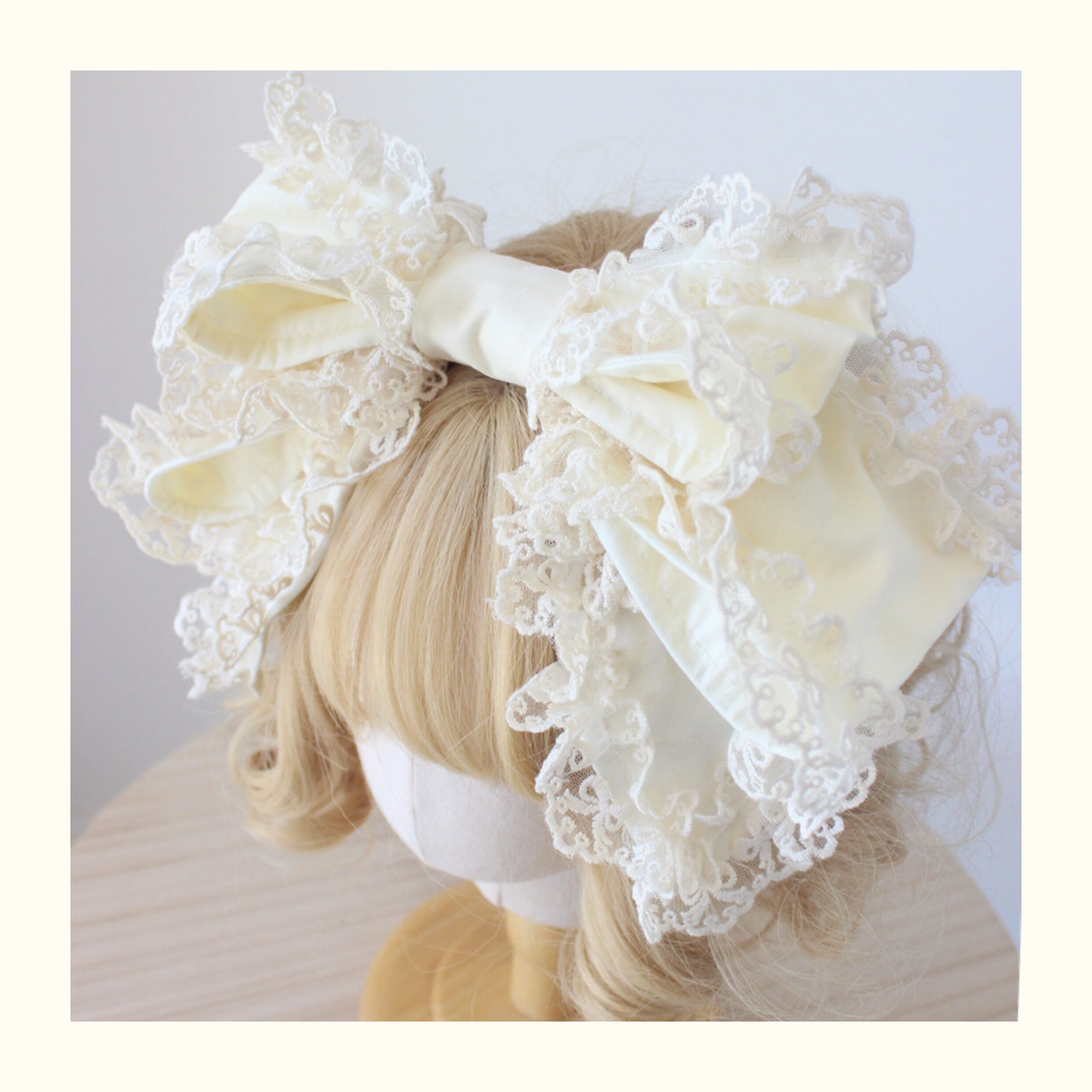 Original handmade cream cake oversized bow headband headdress lolita girl cotton sweet hair accessories kc