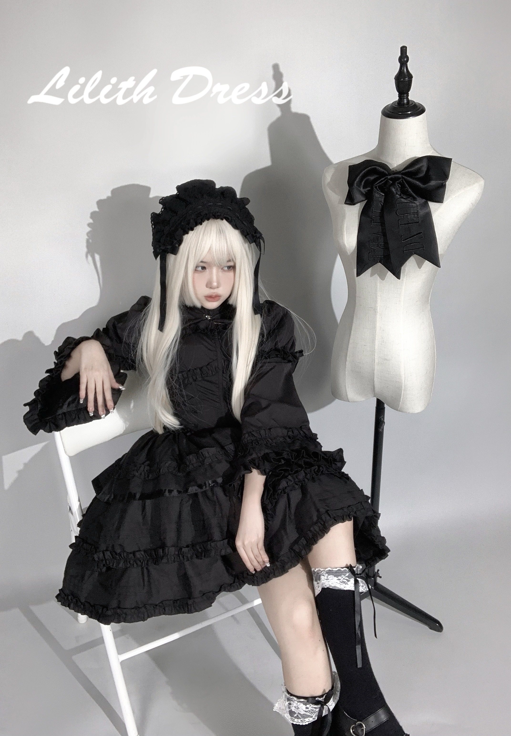 莉莉丝原创哥德复古洋装 鱼骨收腰显瘦Lolita连身裙 黑色吊带设计 [Original Page Link]