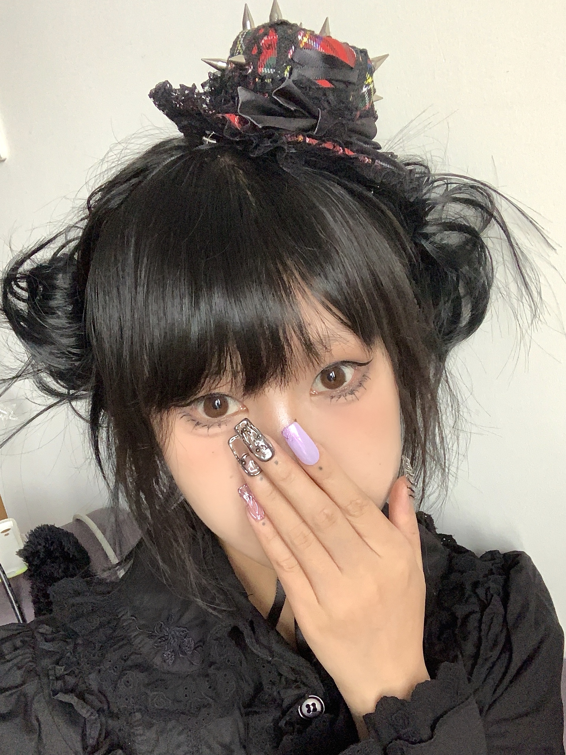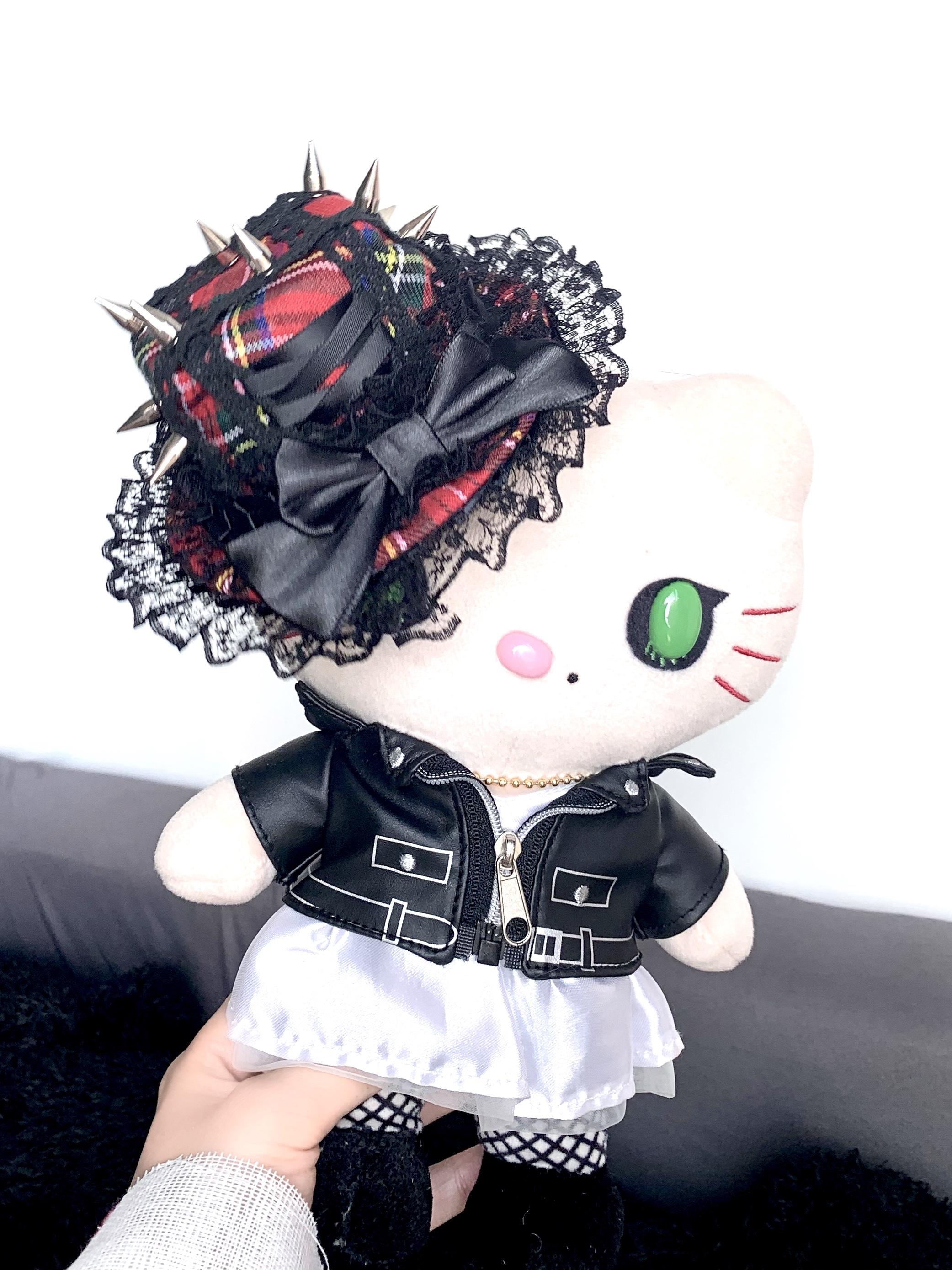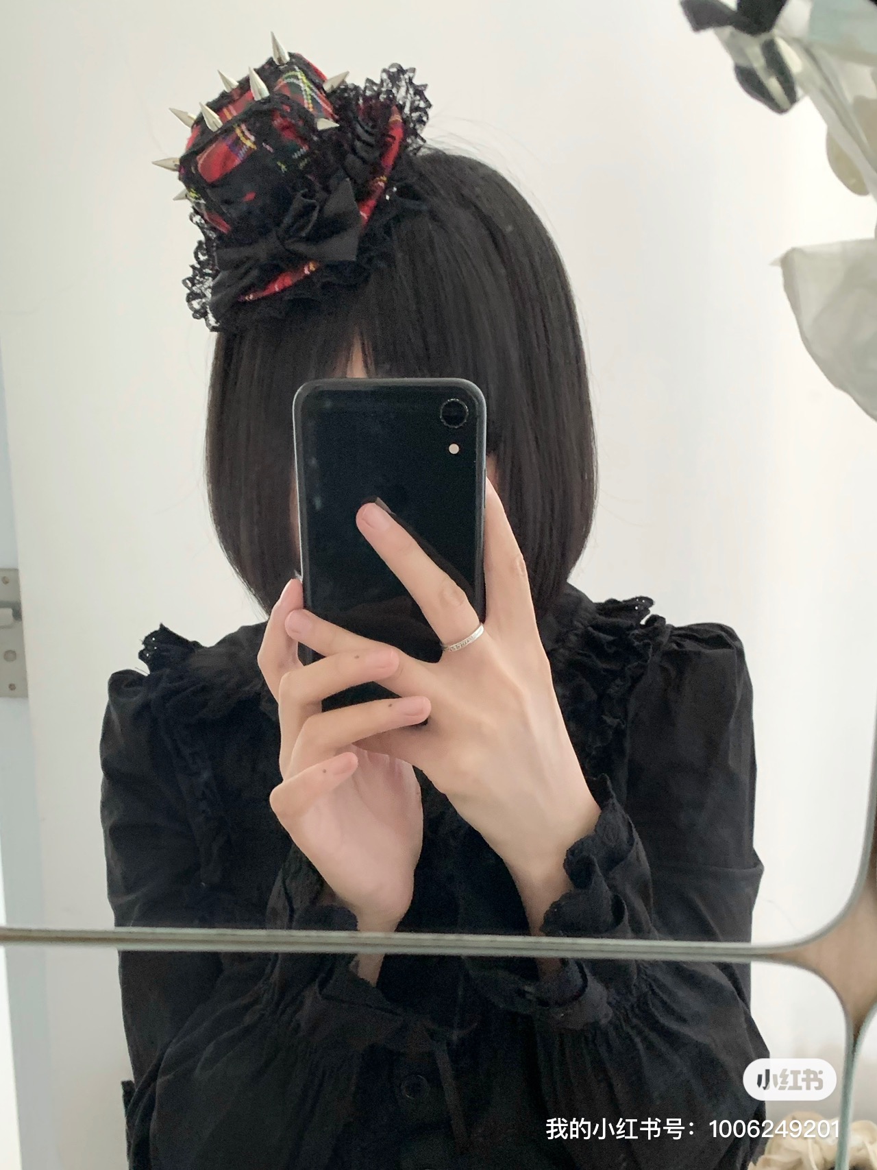 黑色泡泡&原创手工朋克黑红格Lolita小礼帽头饰亚文化铆钉蕾丝 [Original Page Link]