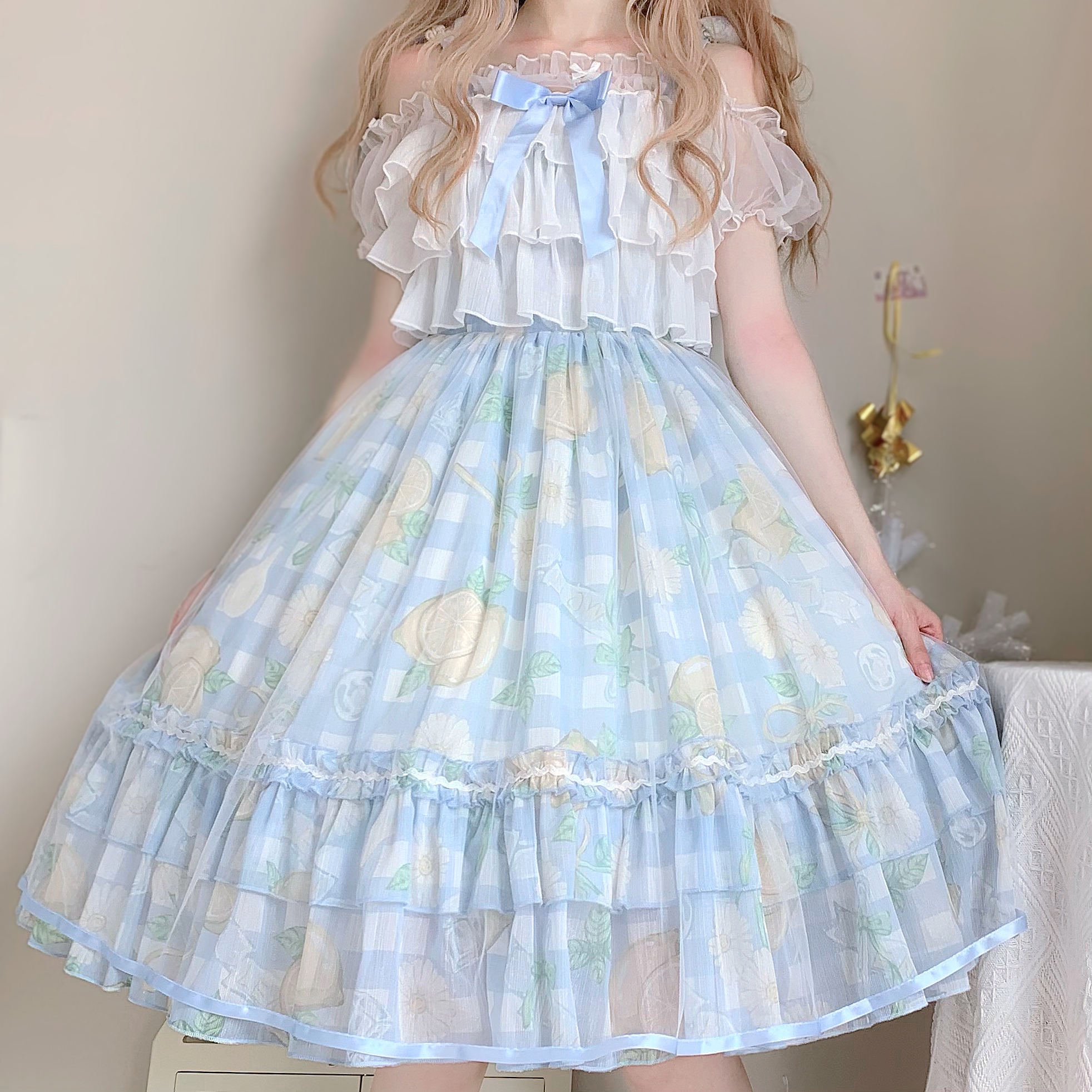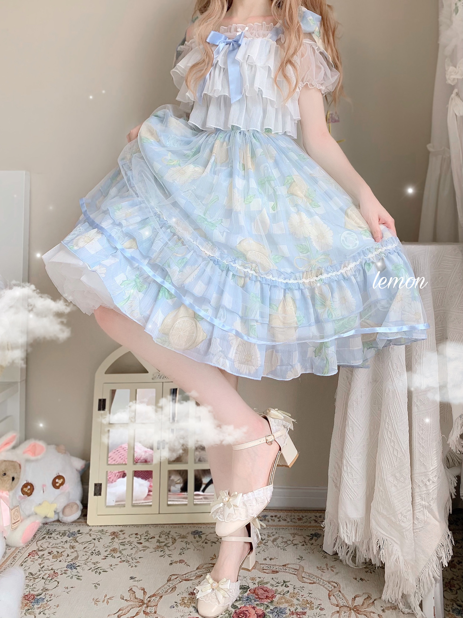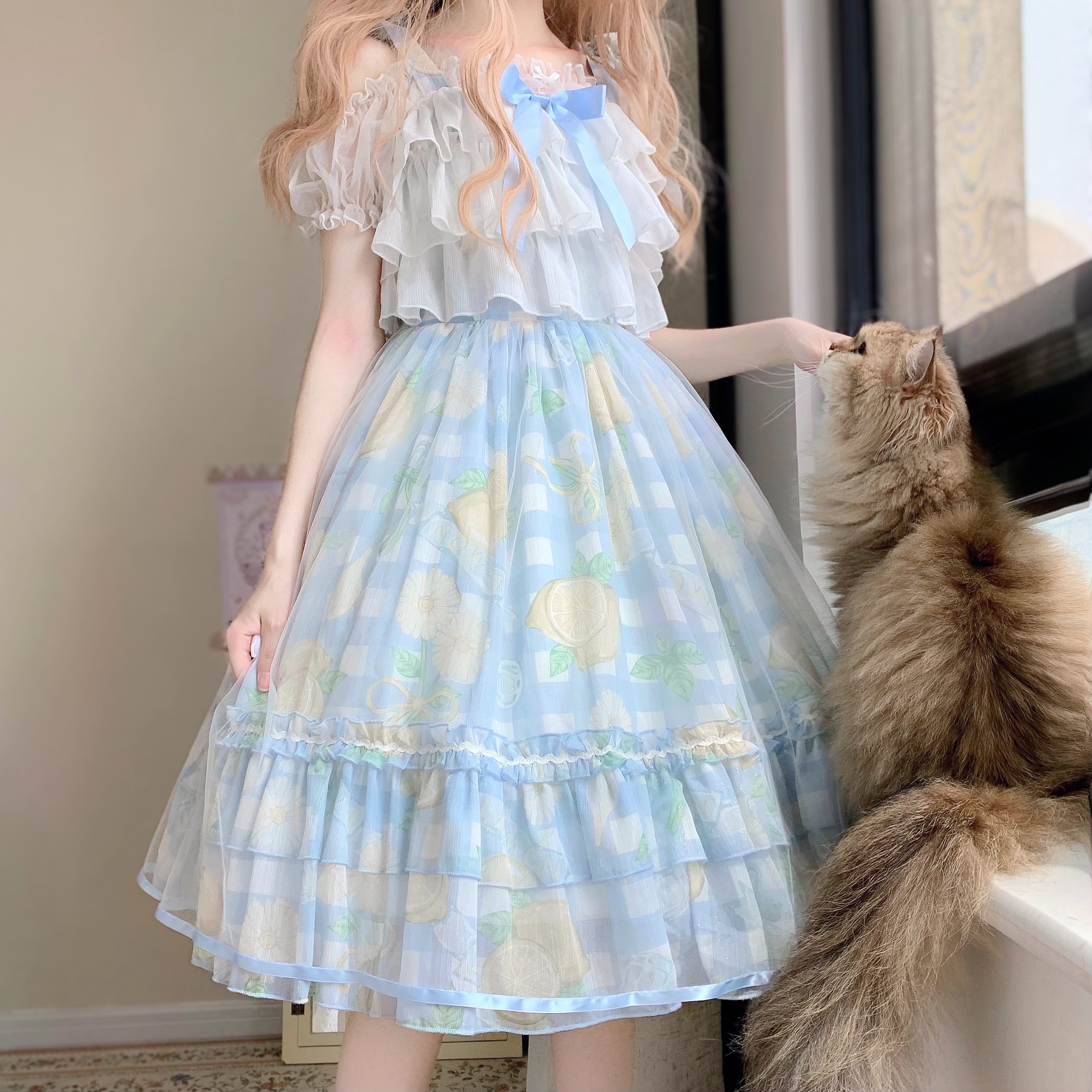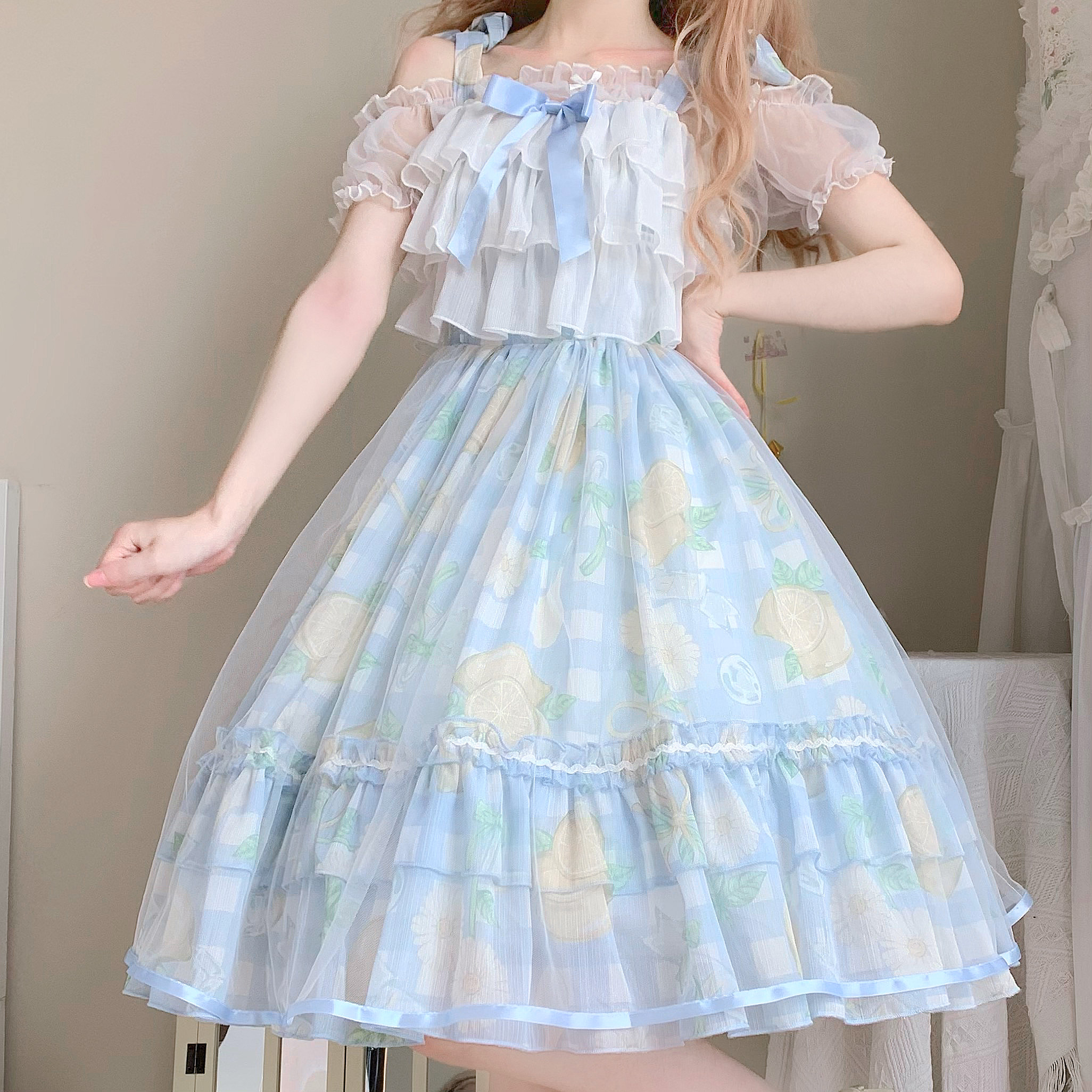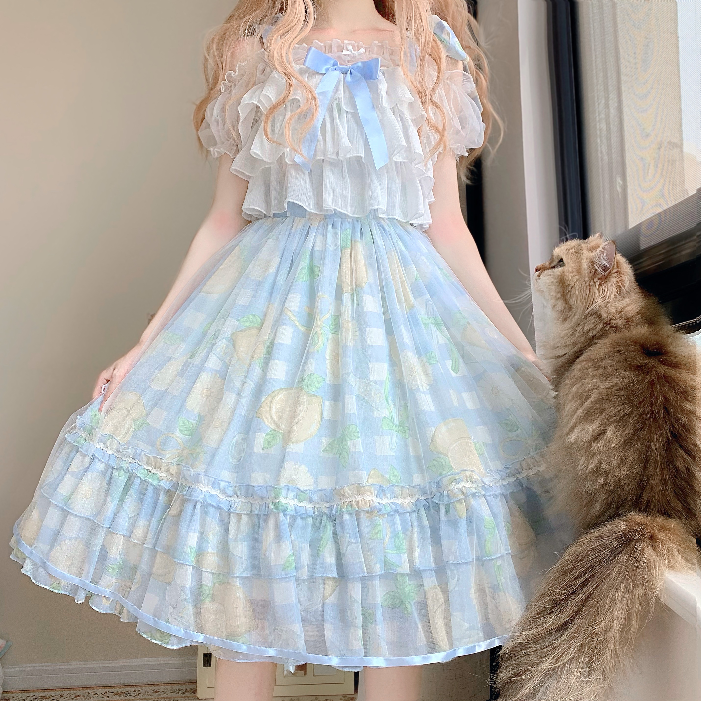 (Lemon Fragrance Story) Second Lolita Summer Chiffon Lolita Soft Girl Daily JSK Original Genuine Full Price